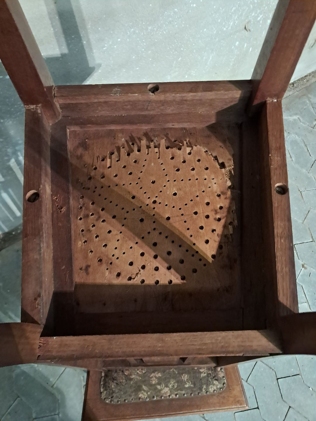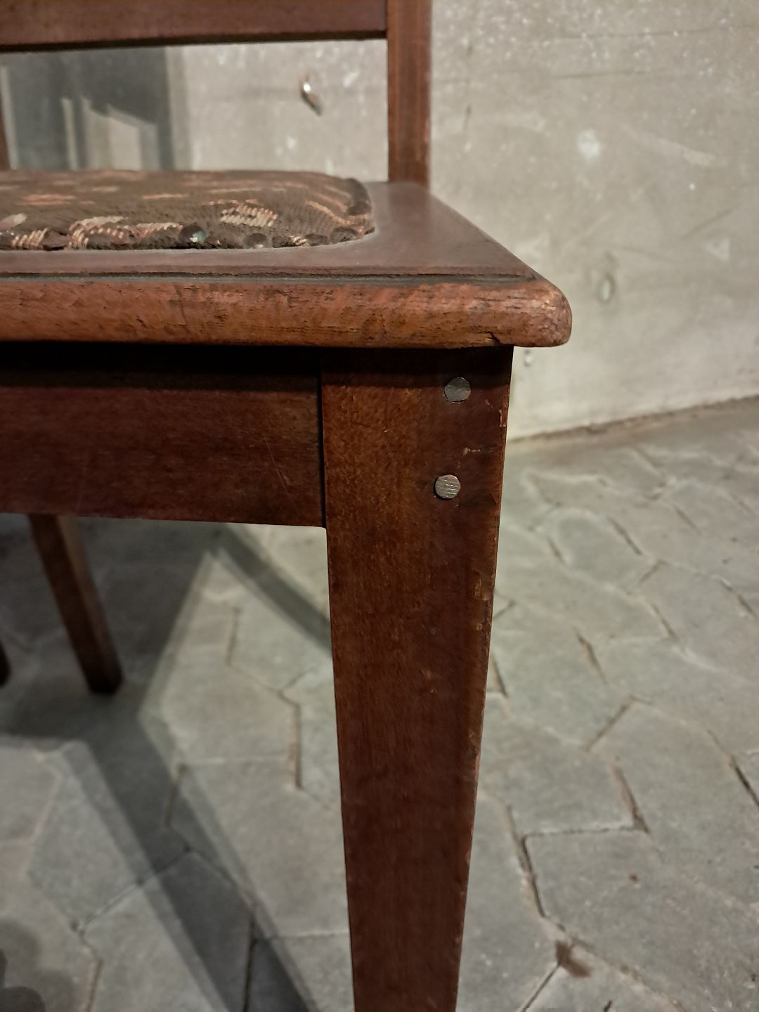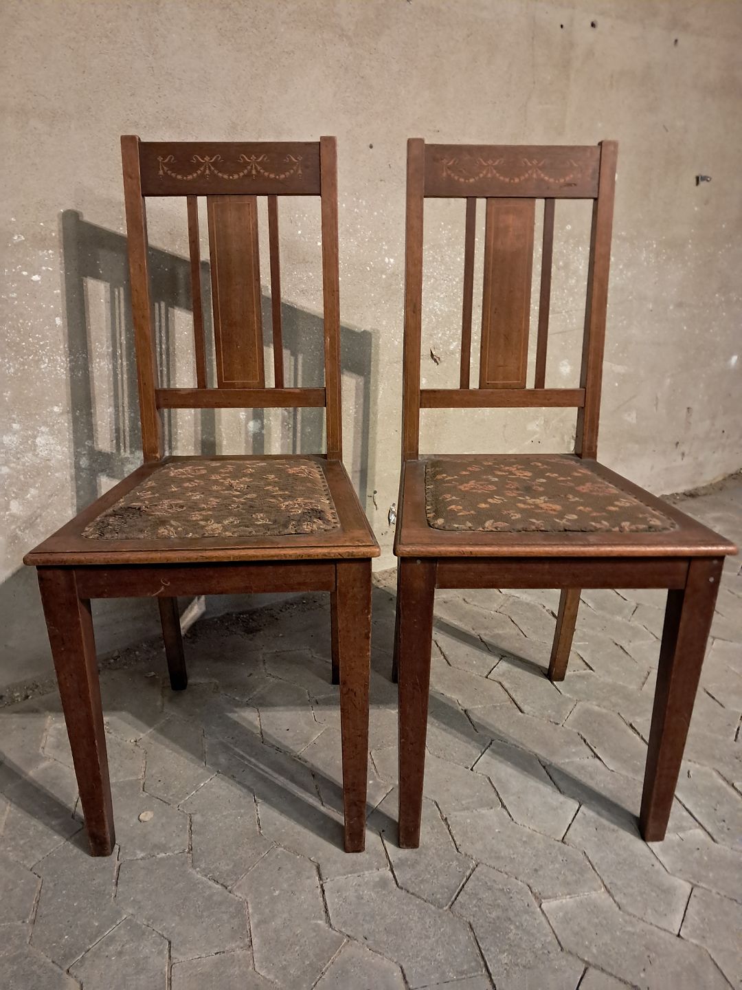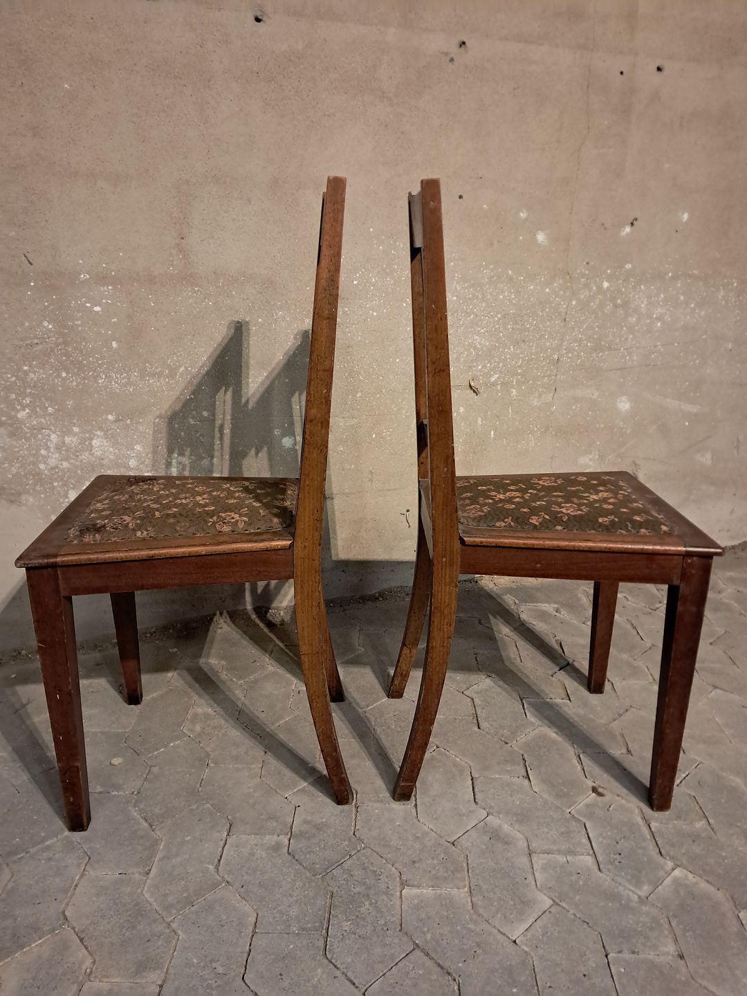 2 Salonstole i massivt mahogni, fra 1910erne.De har brugsspor og den ene har en reparation.