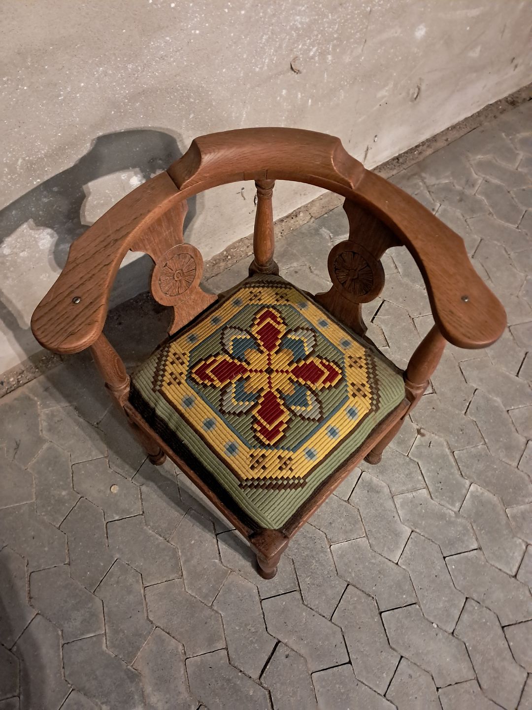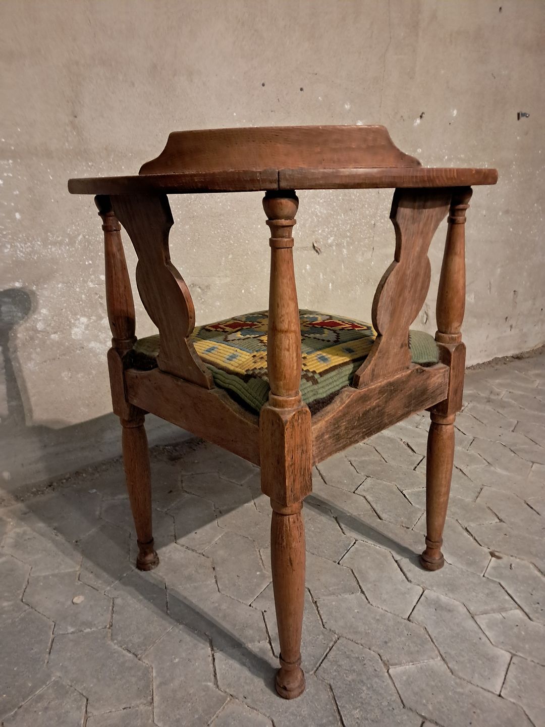 Armstol i massivt egetræ, fra 1910erne.Den har brugsspor.
