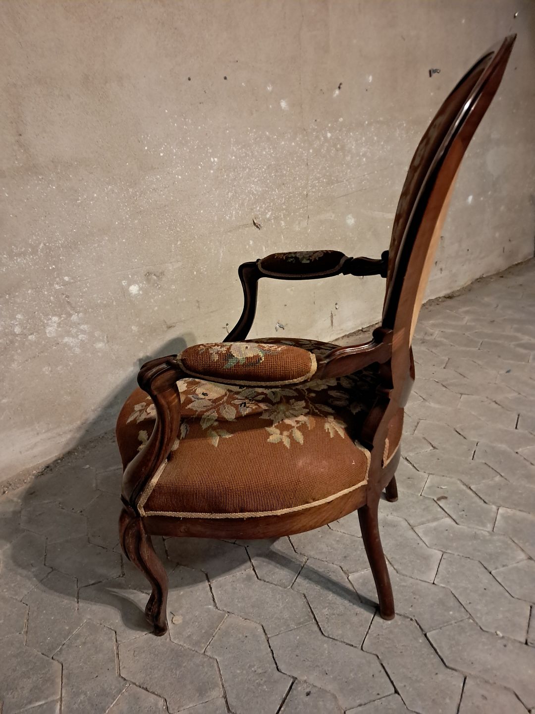 Armstol i massivt mahogni, fra 1900erne.Den har brugsspor.