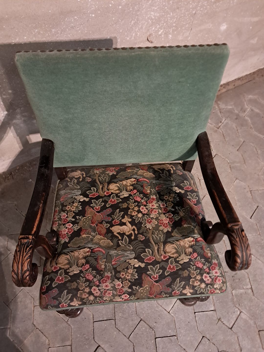 Armstol i massivt egetræ, fra 1930erne.Den har brugsspor.
