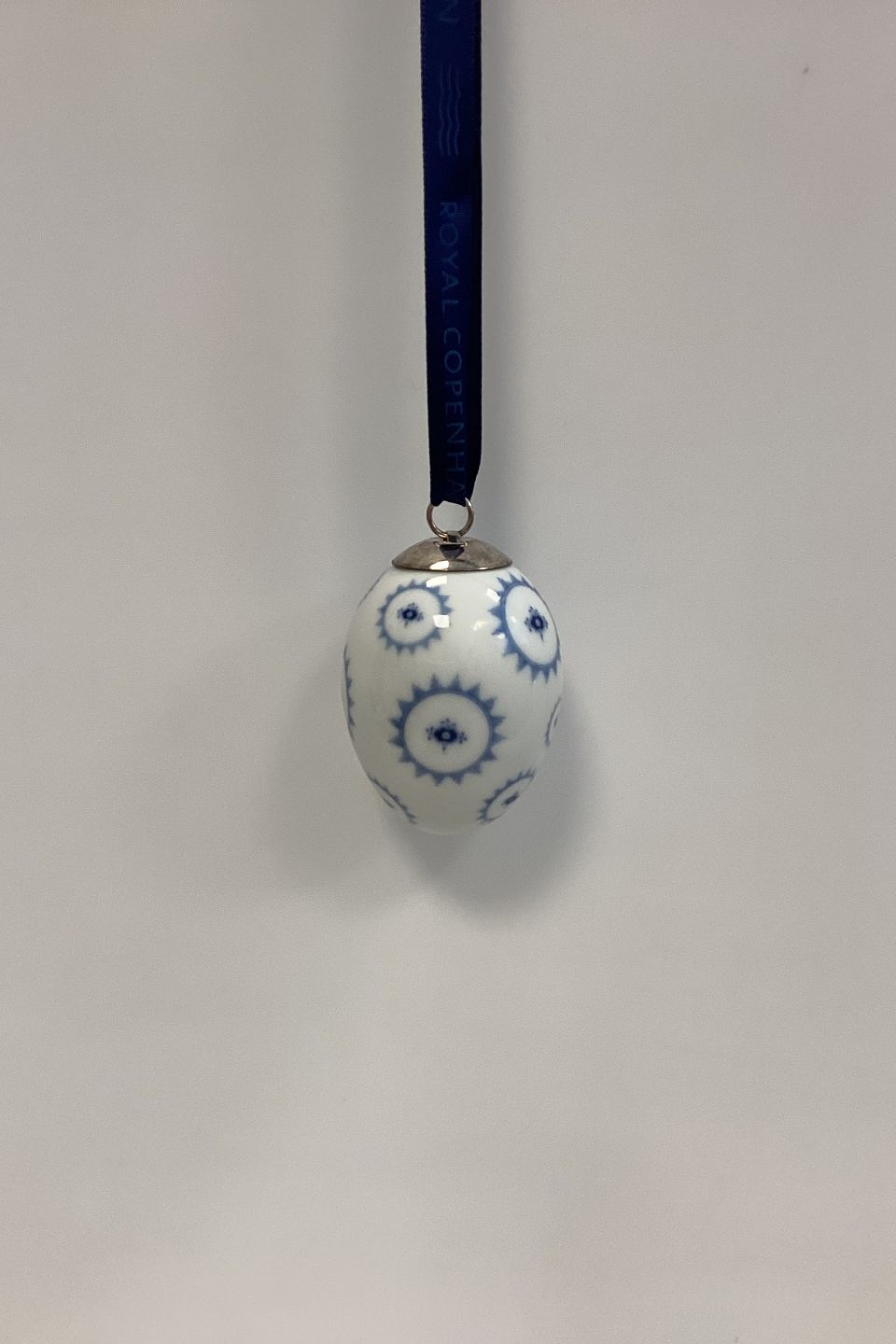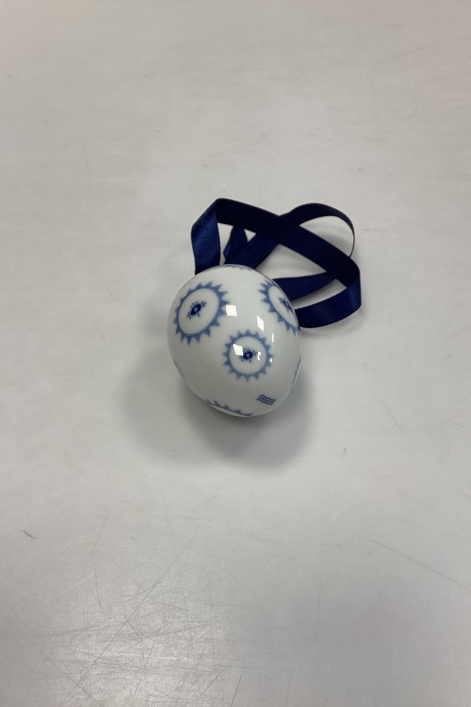 Royal Copenhagen Musselmalet Riflet Påskeæg - Cirkel 2005 med bånd og æske.Måler 6 cm / 2.36 in.