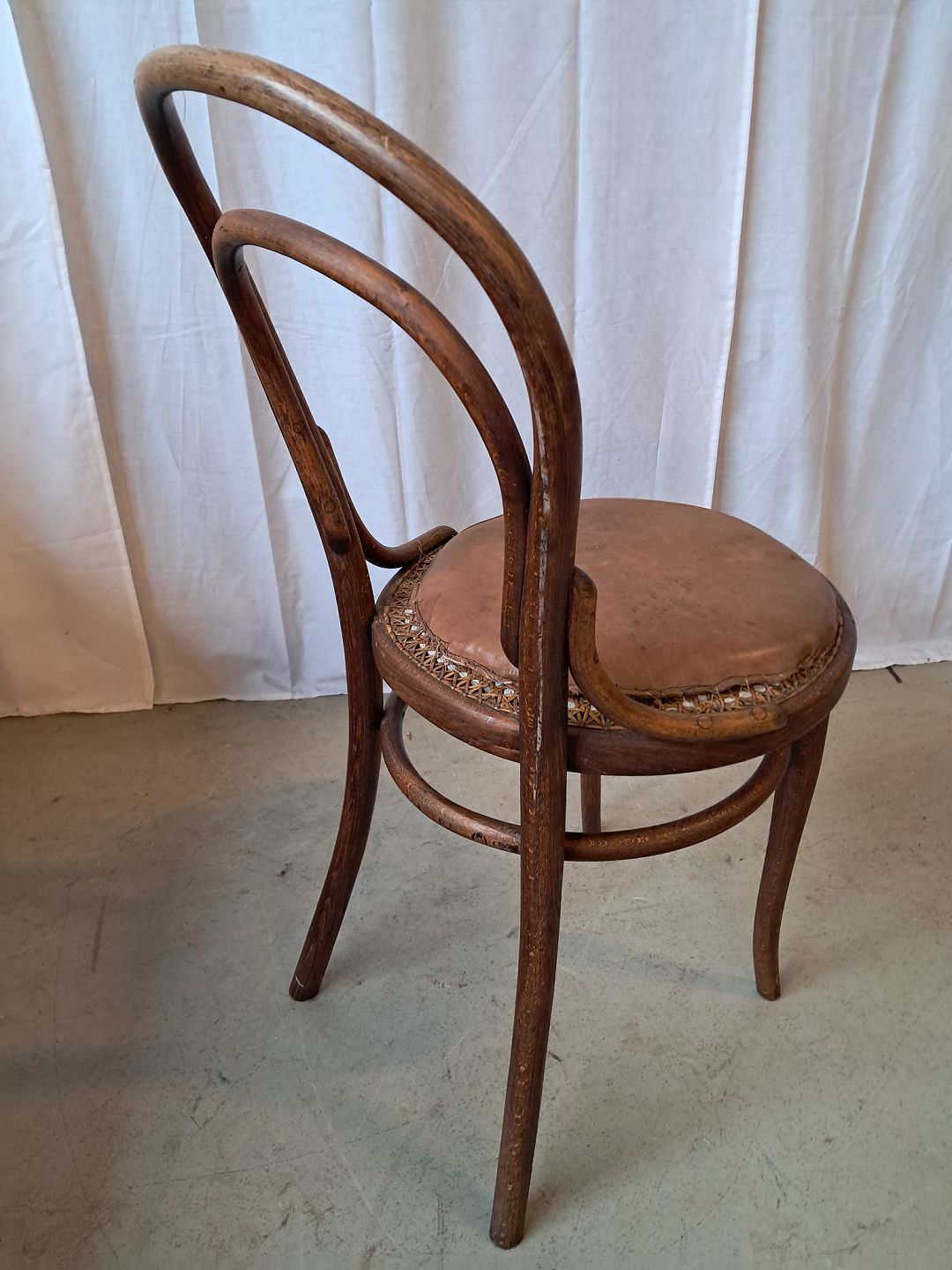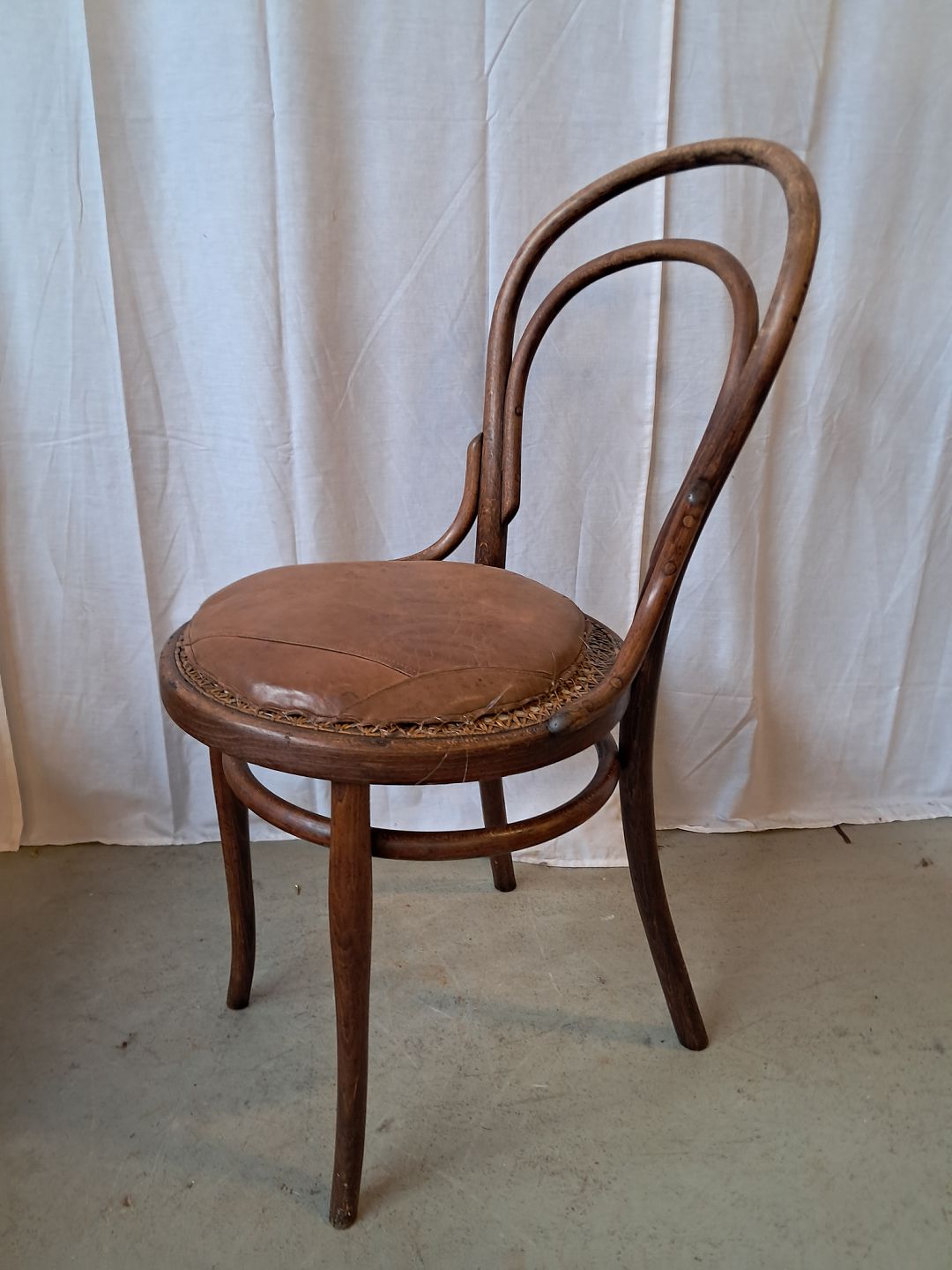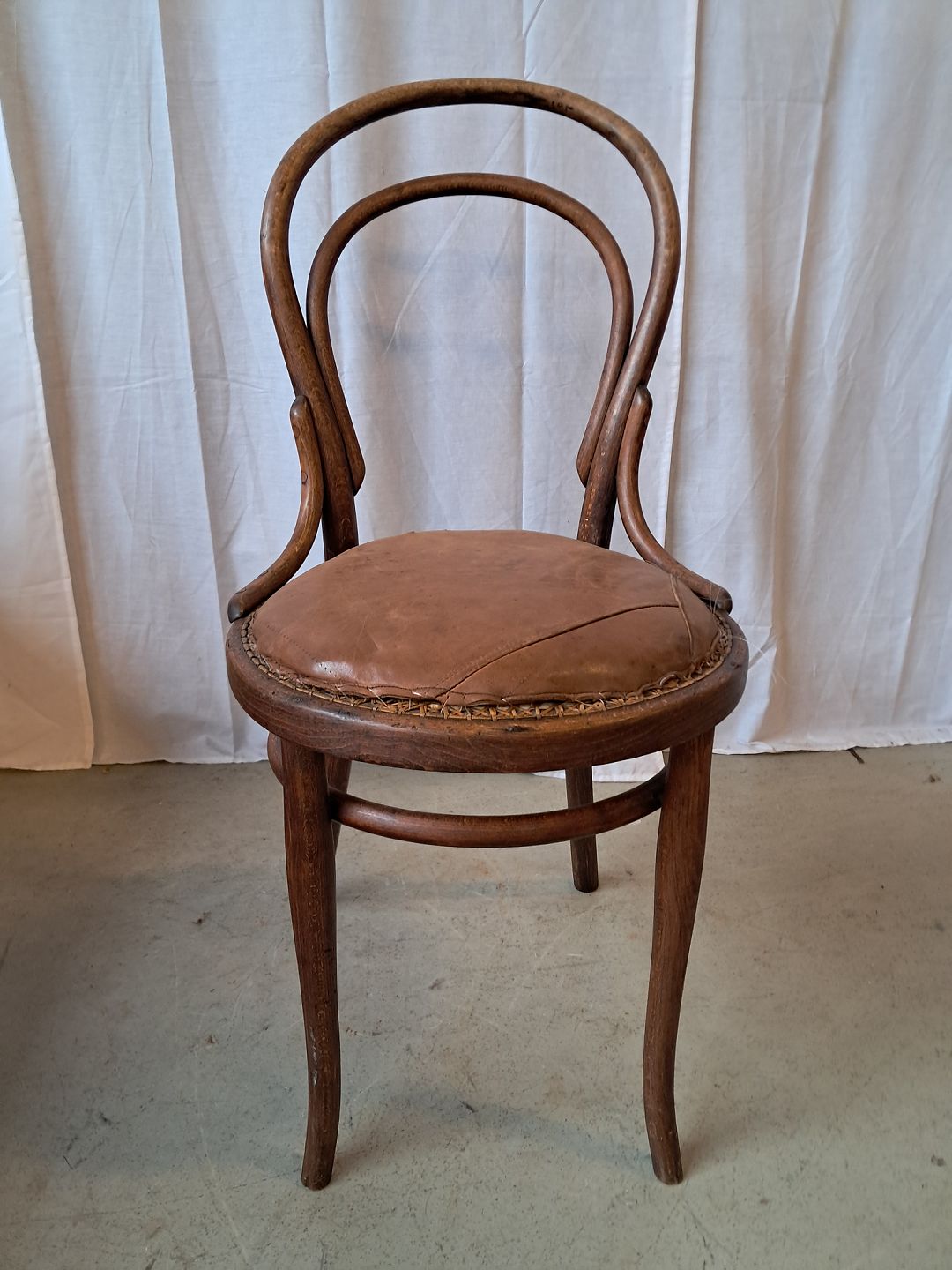 Stol i massivt bøgetræ, fra 1920erne.Den rokker lidt og har brugsspor.