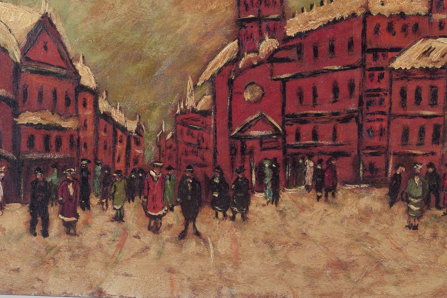 Snedækket bymotiv med personer i forgrunden.