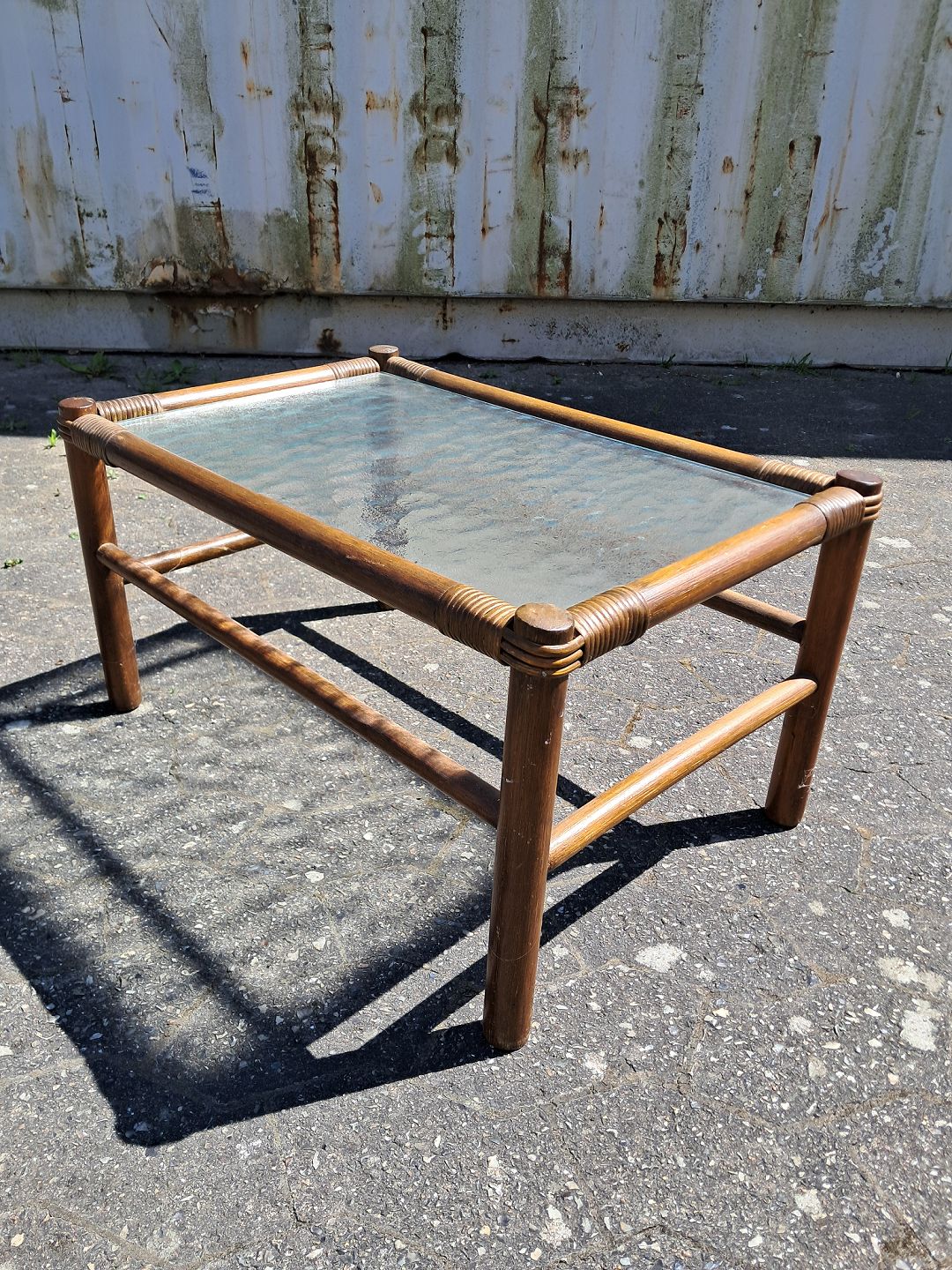 Lille bord i bambus med frostetglas, fra 1990erne.Det har små brugsspor.