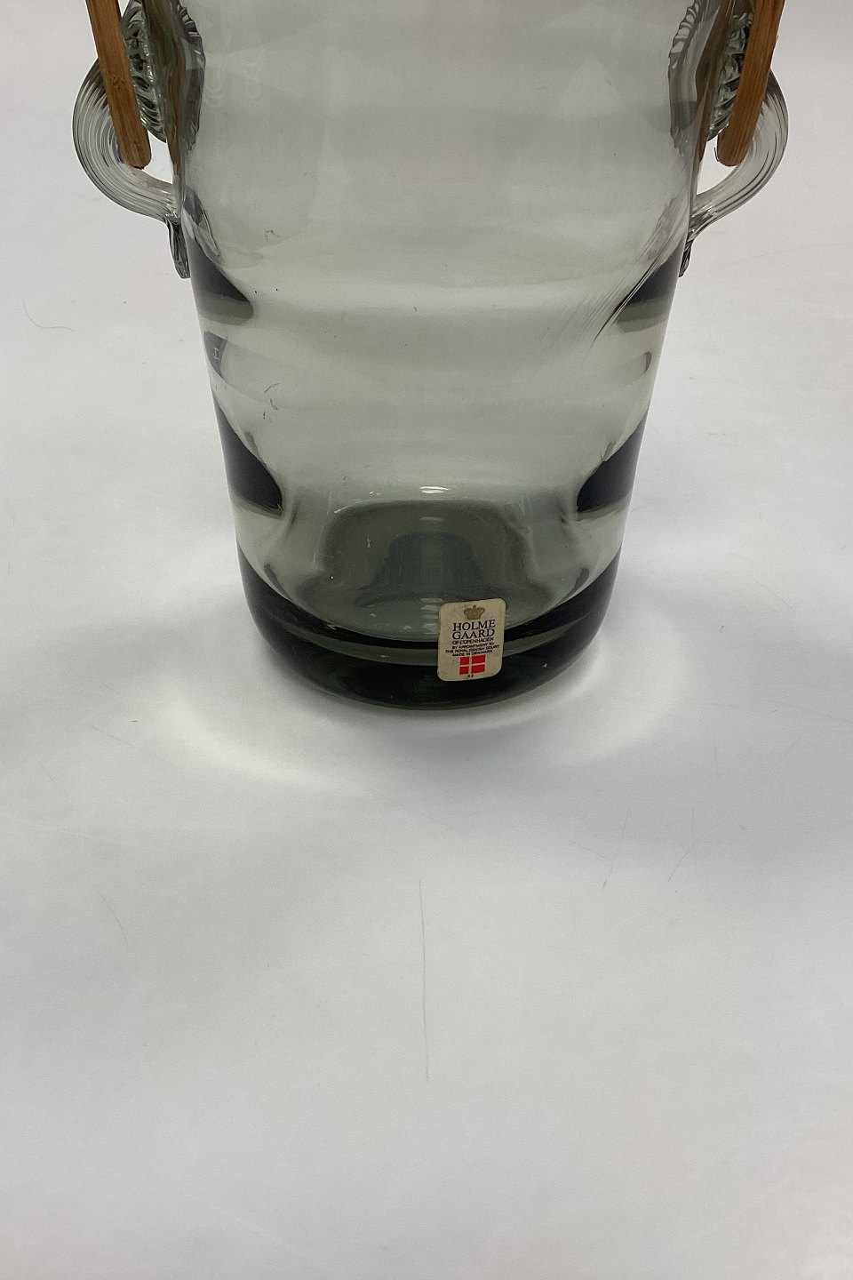 Holmegaard Akva Isspand med basthank. Farve: Grå/Smoke. Designet af Per Lütken. Lille ridse i glasset, og basten i den ene side har været løsnet.Måler 15,5 cm / 6.10 in.