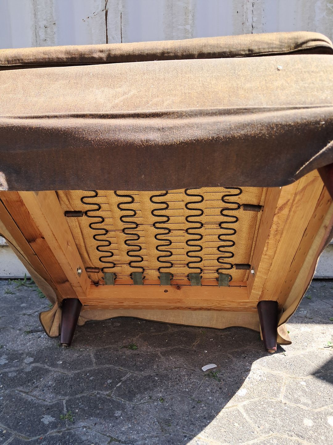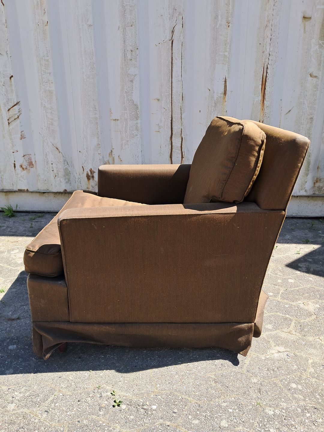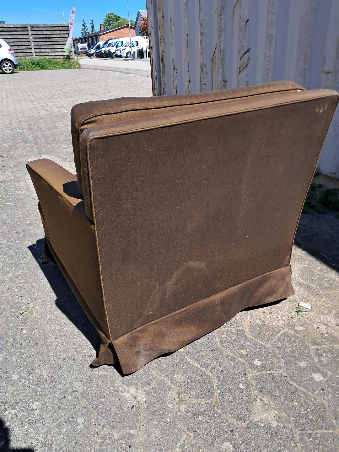 Lænestol med stofbetræk, fra 1980erne.Den har brugsspor.