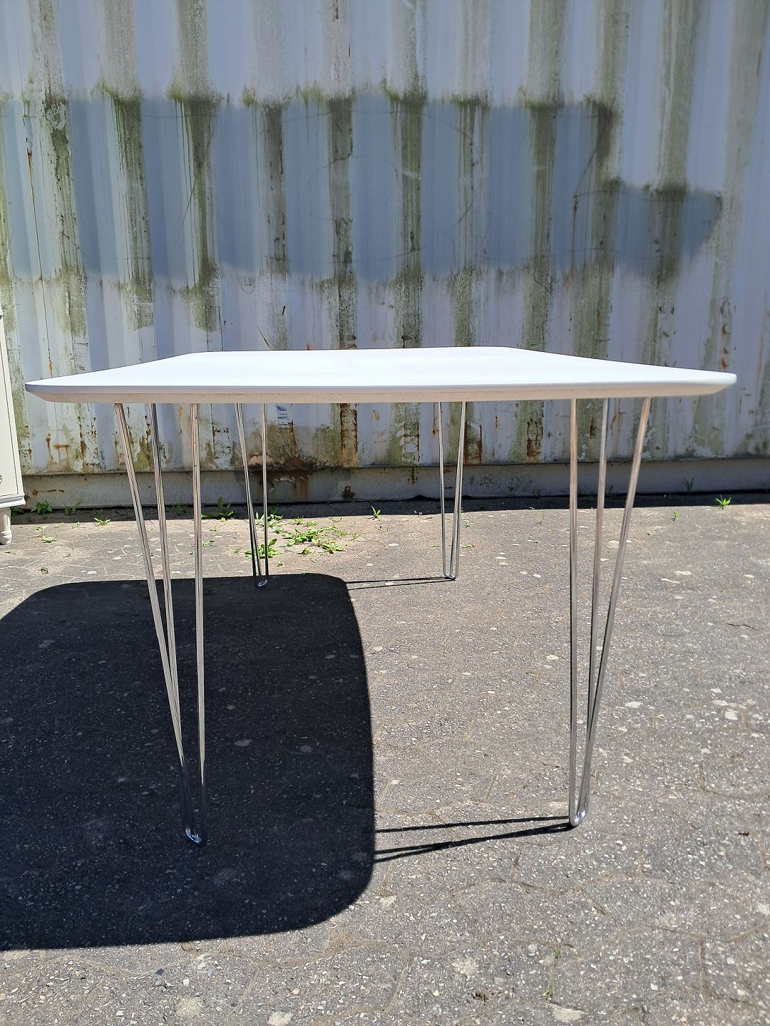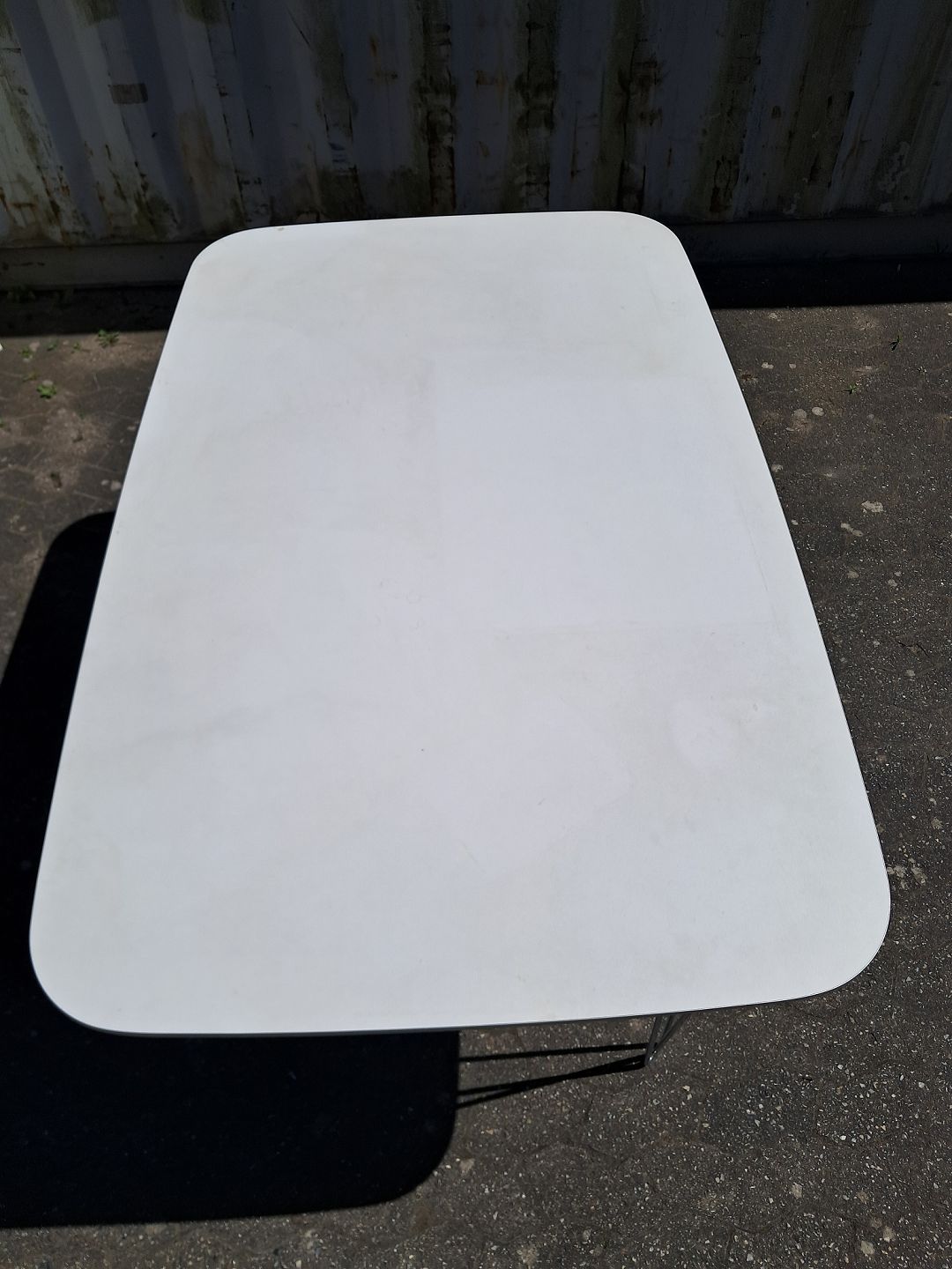 Bord i melamin med metalben, fra 2000erne.Det har brugsspor.