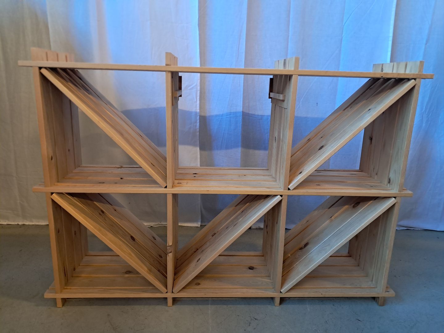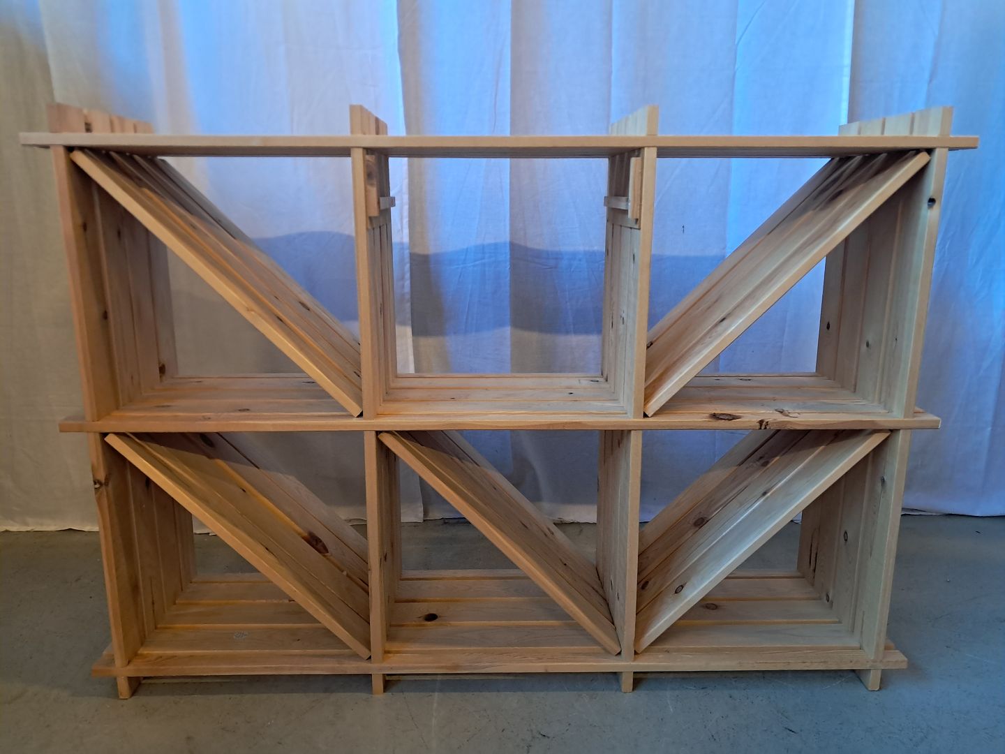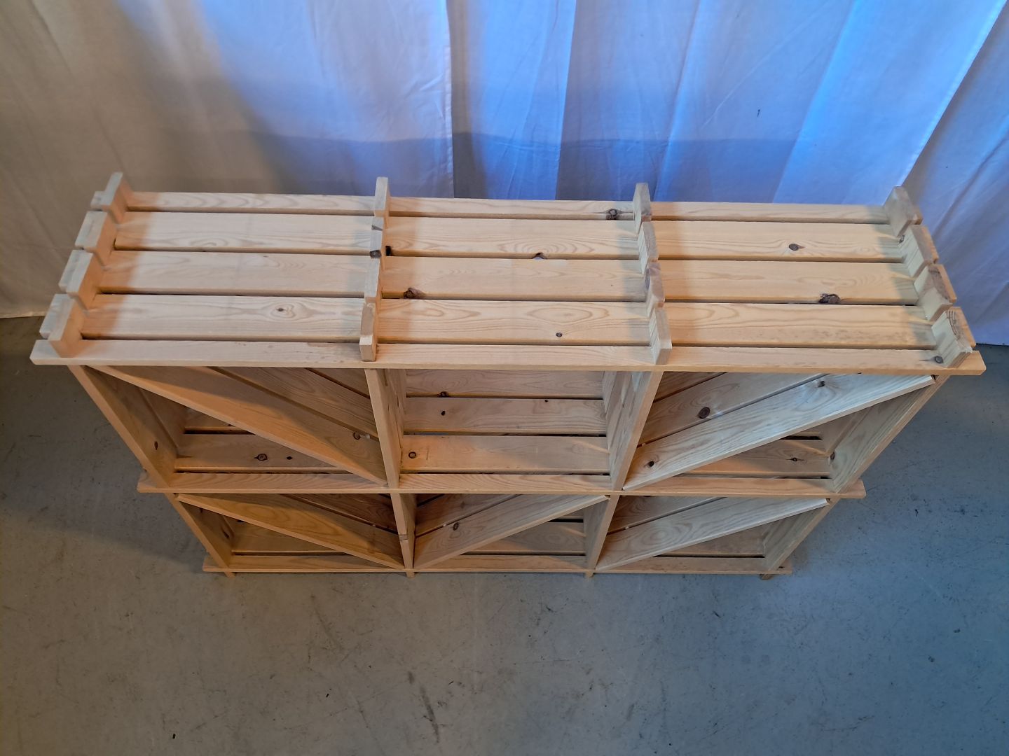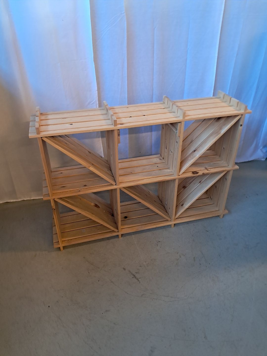 Reol i massivt fyrretræ, fra 2000erne.Den har brugsspor, mangler en skuffe oo denene skråhylde er defekt.