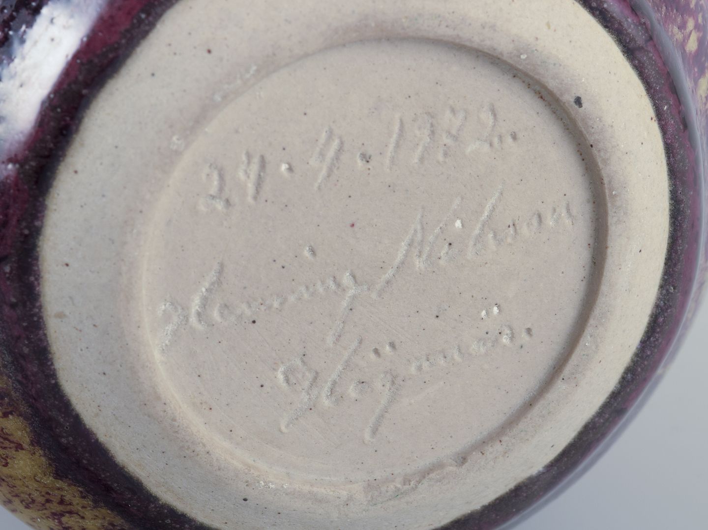 Glasur i violette og sandfarvede nuancer.
