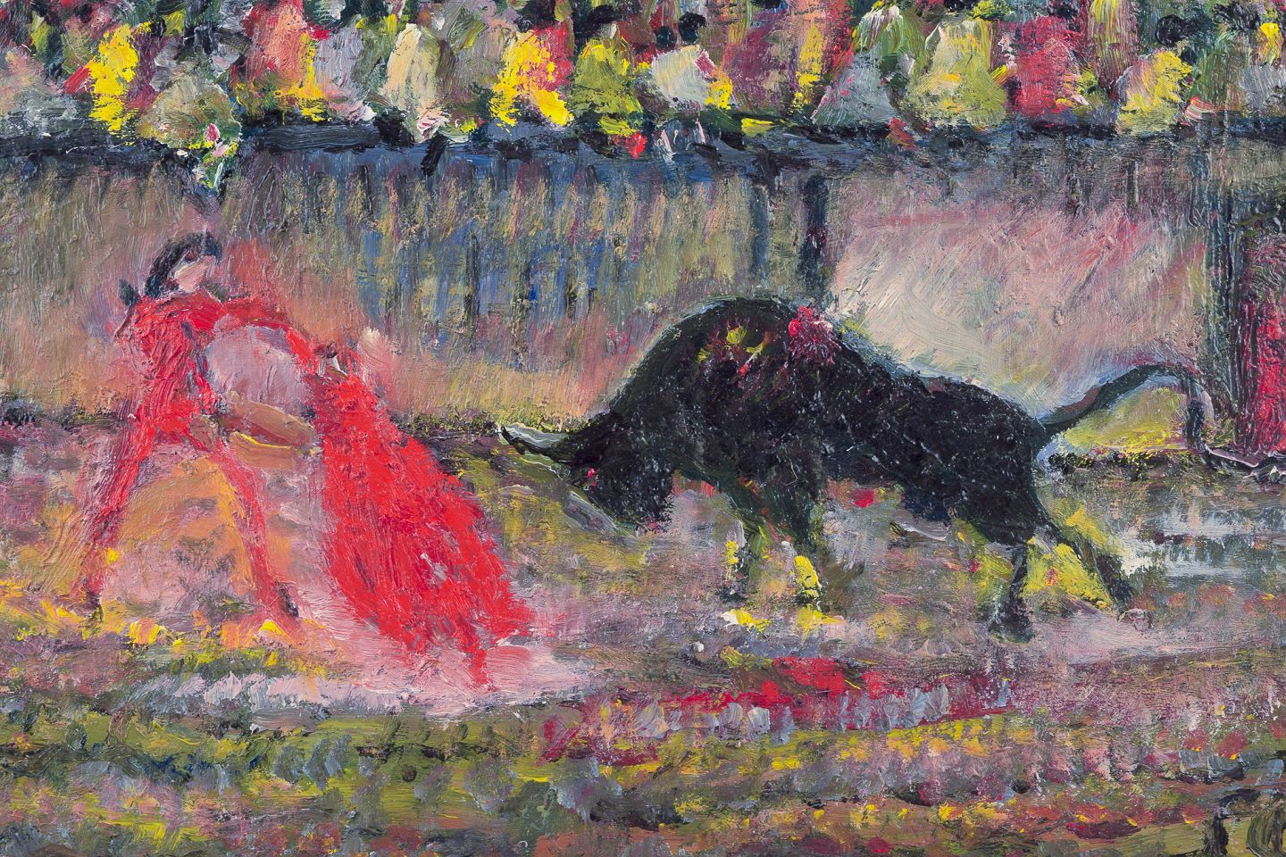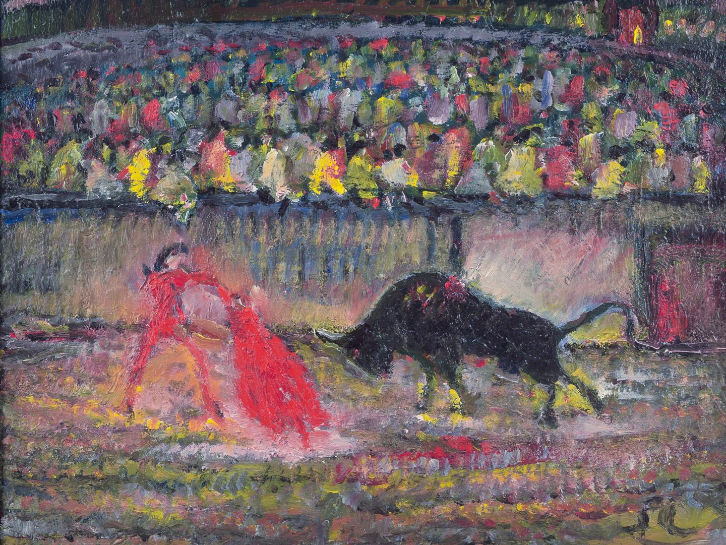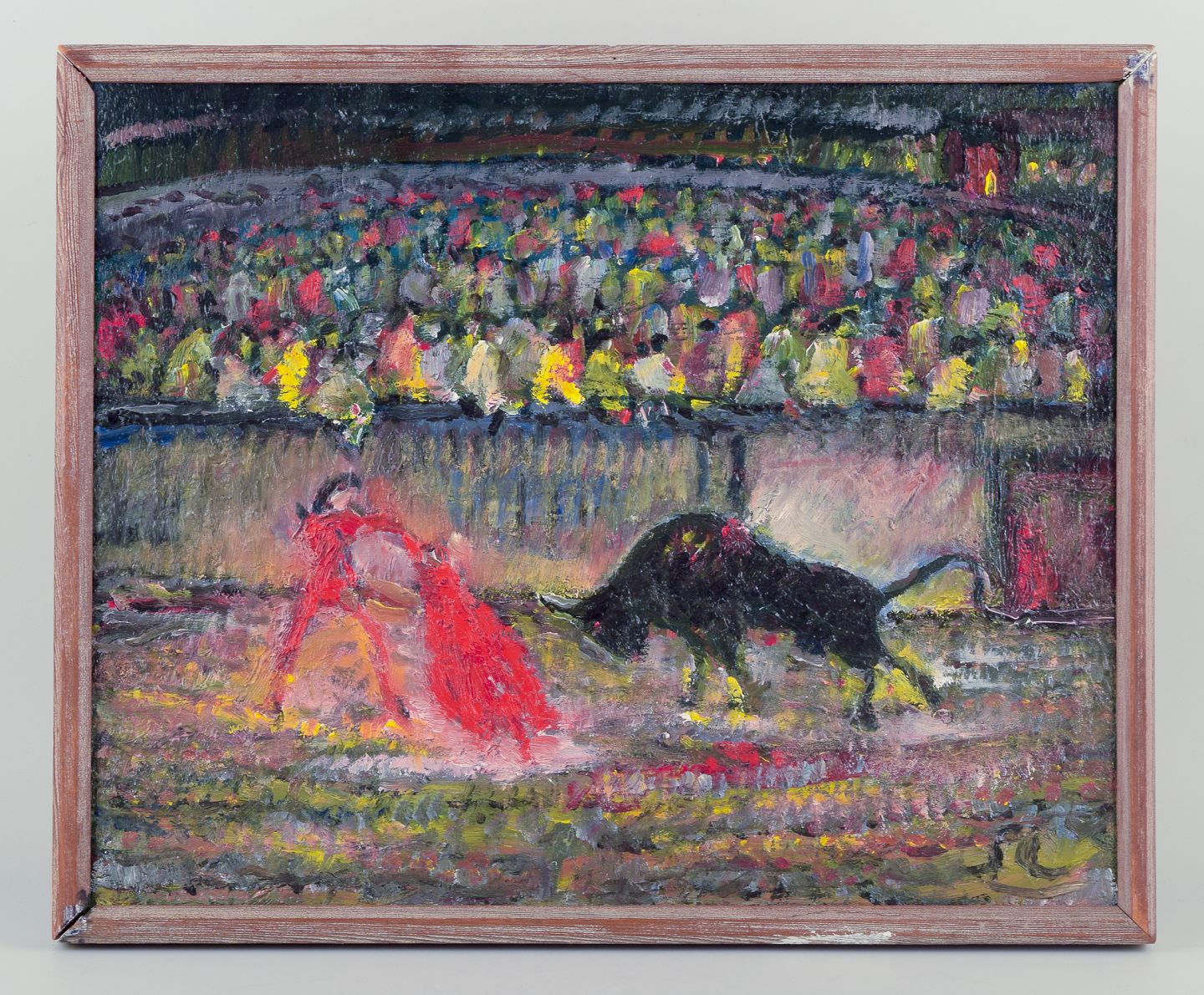 Ubekendt europæisk kunstner, olie på lærred.Motiv af matador i tyrefægterarena.