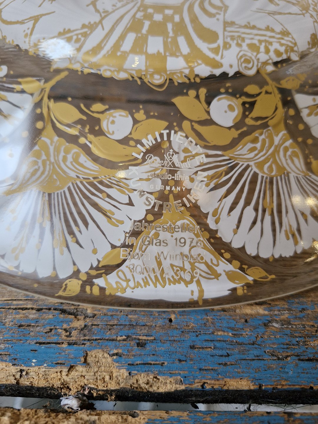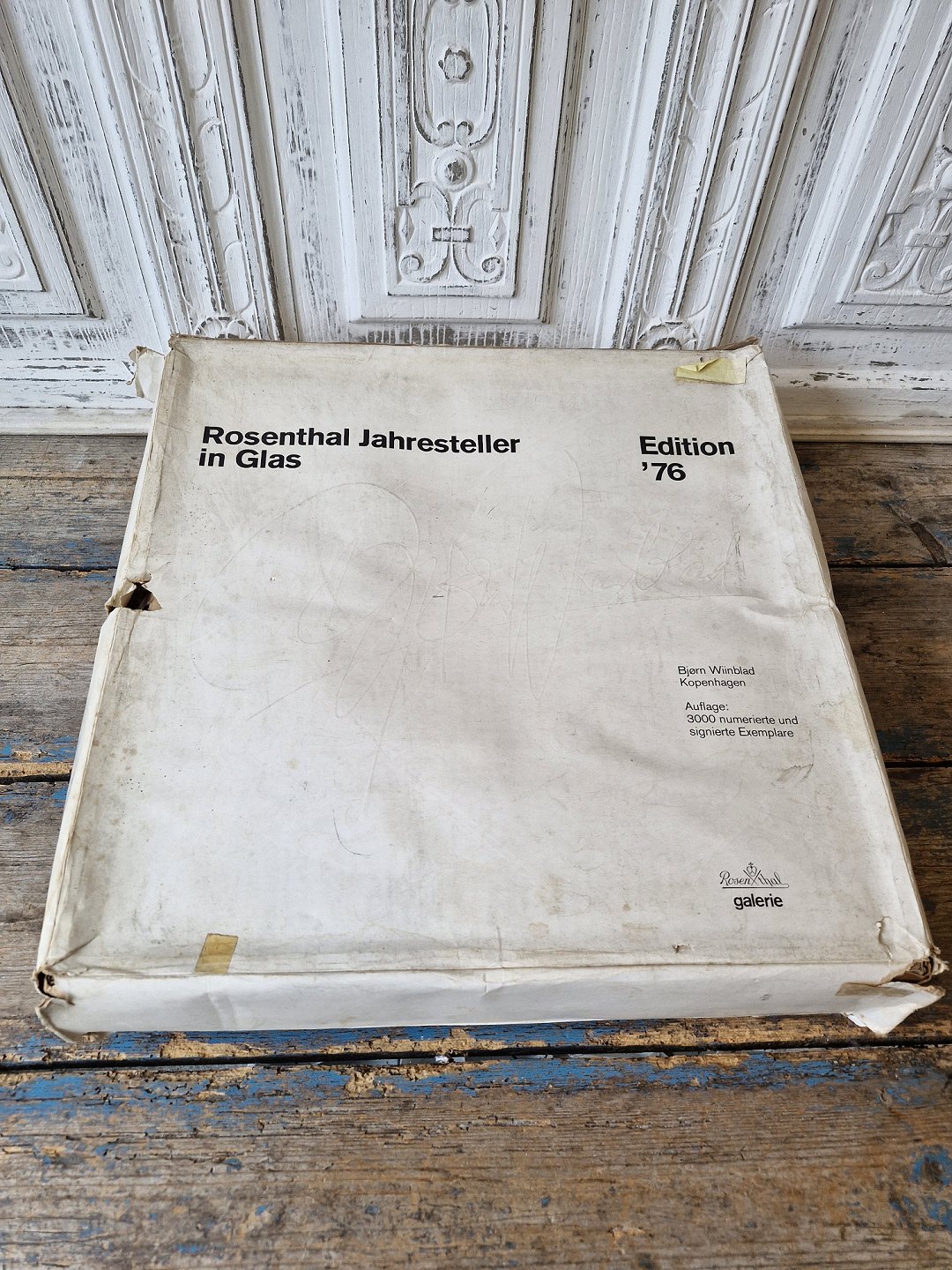 Rosenthal årsplatte i glas fra 1976 designet af Bjørn WiinbladDer er produceret 3000 stk. denne er nummereret 2369 af 3000.