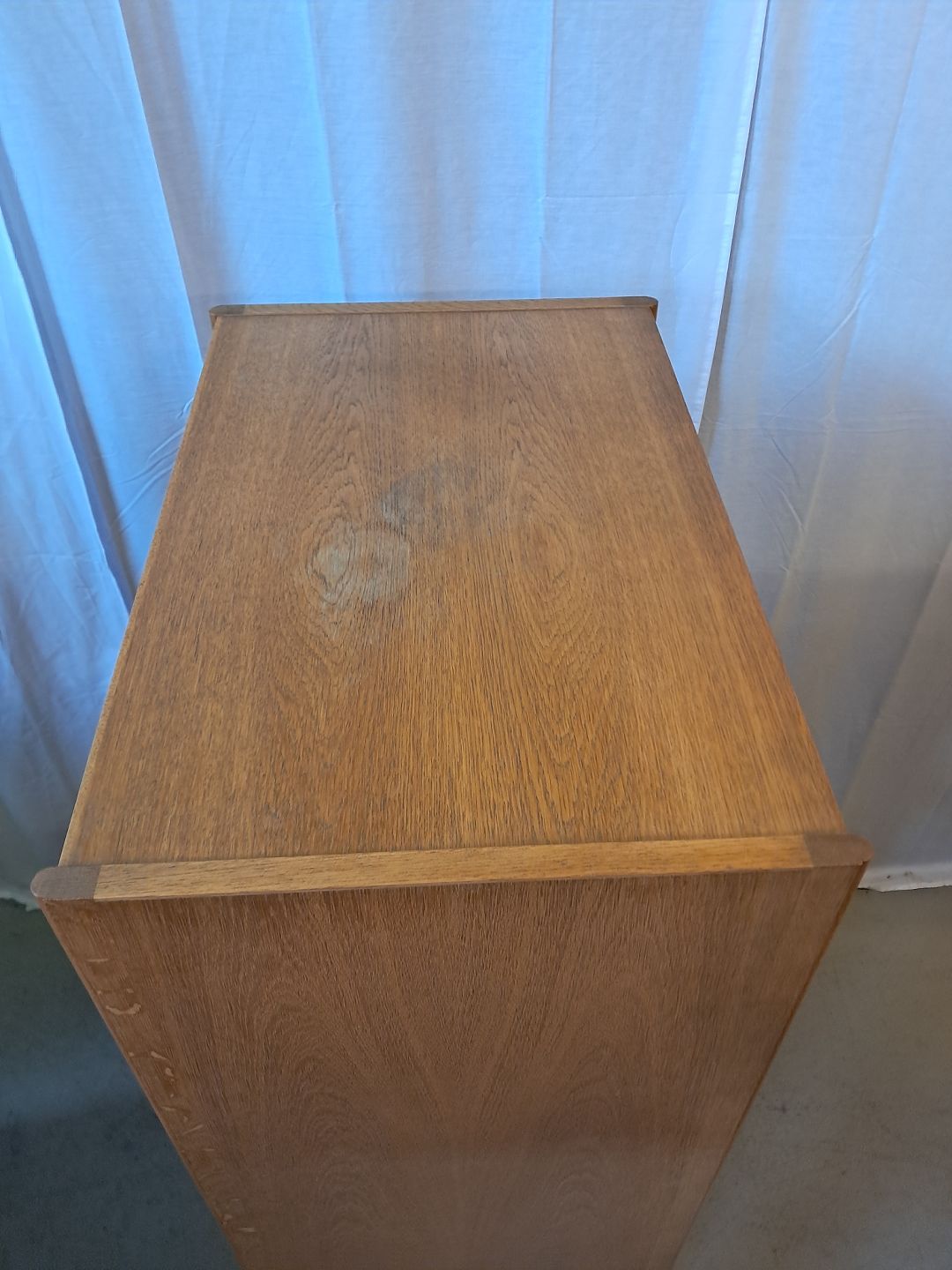 Reol i fineret egetræ, fra 1980erne.Den har brugsspor.