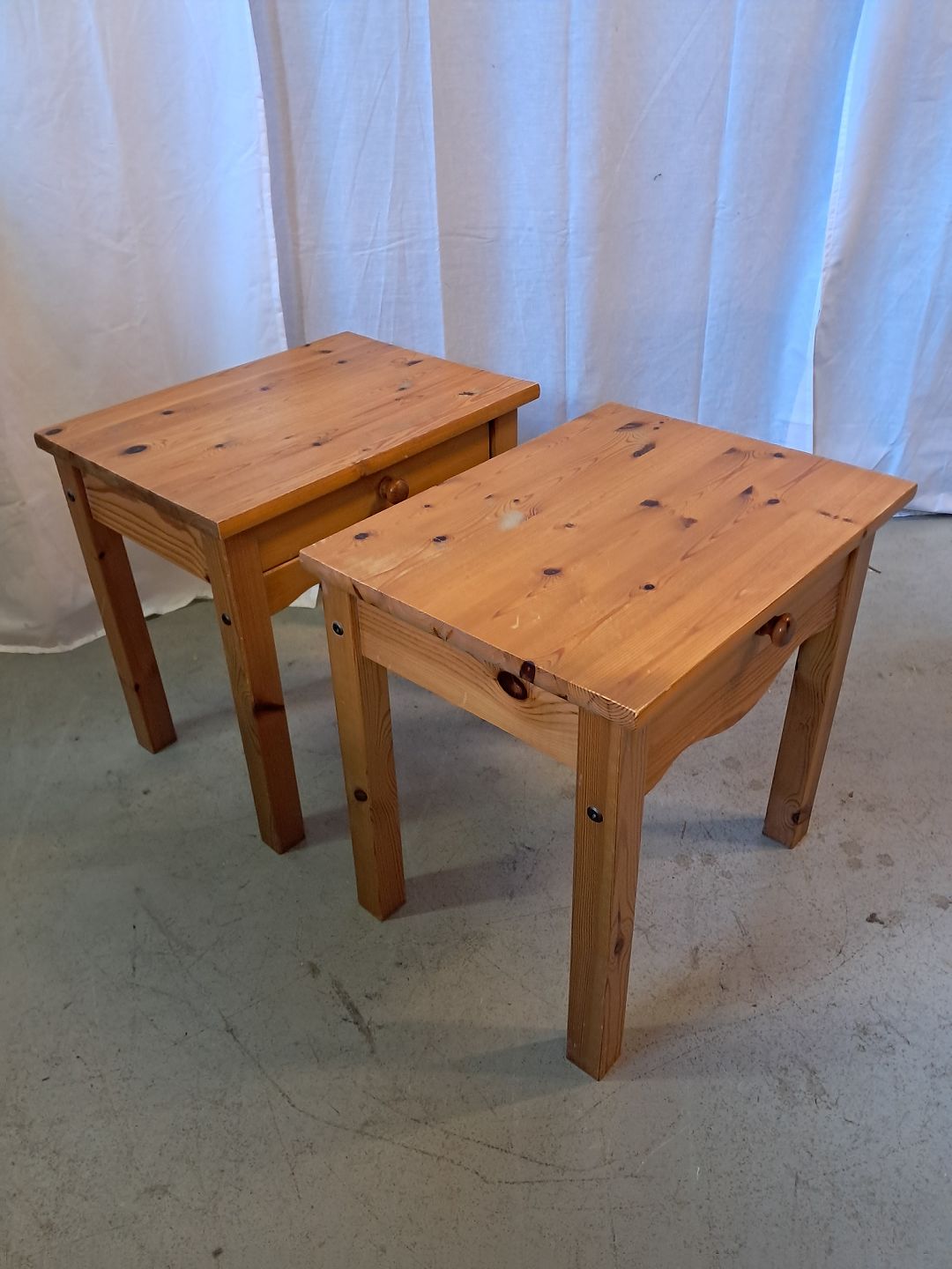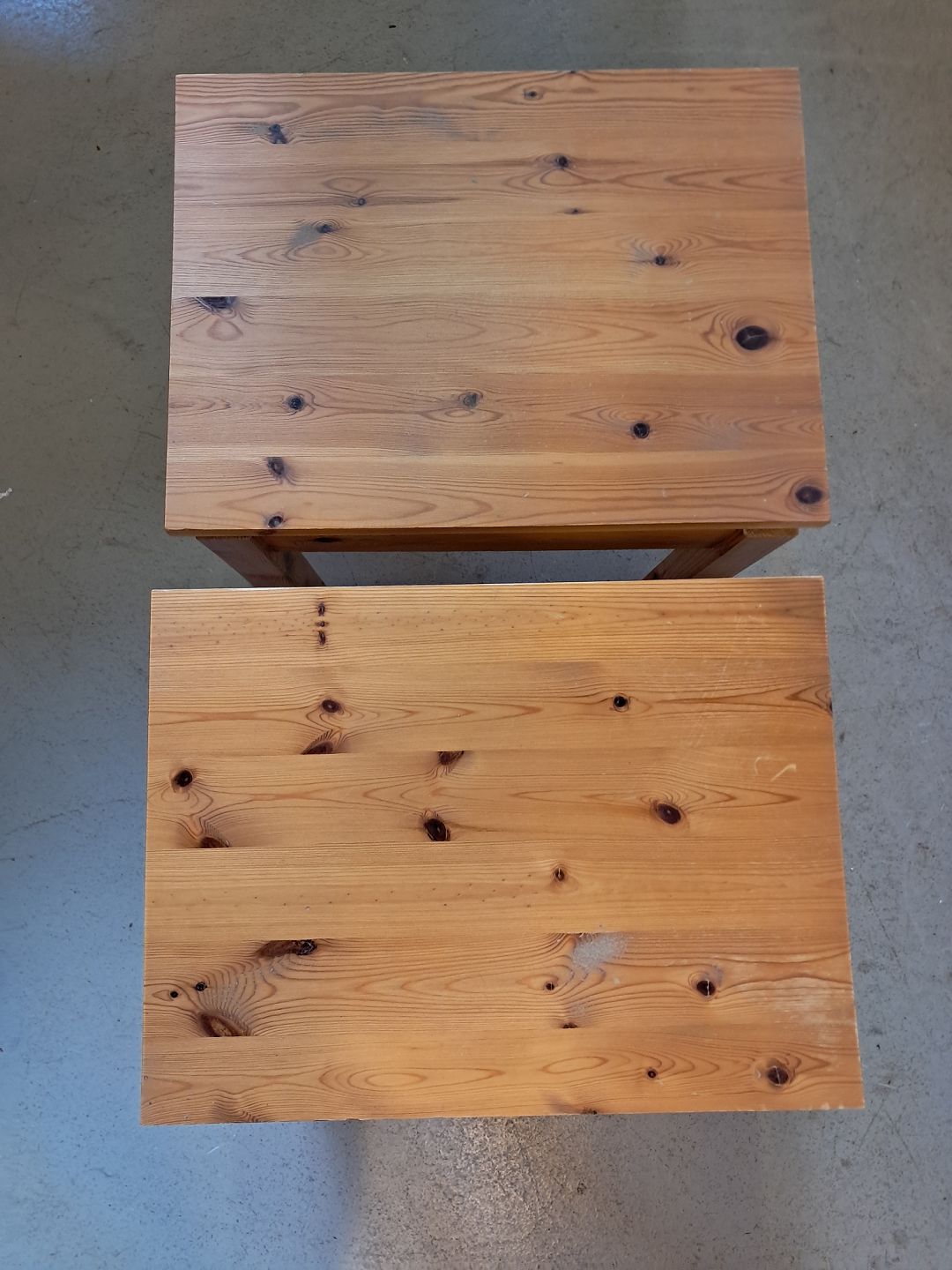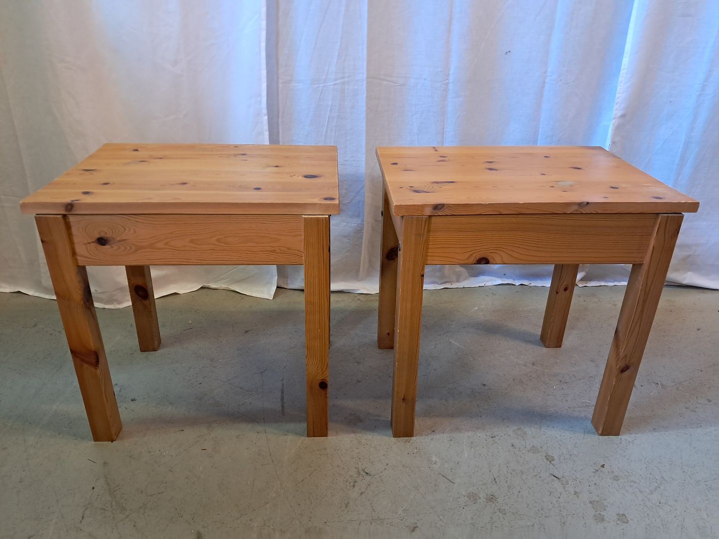 2 Sideborde i massivt fyrretræ, fra 1980-1990erne.De har brugsspor.