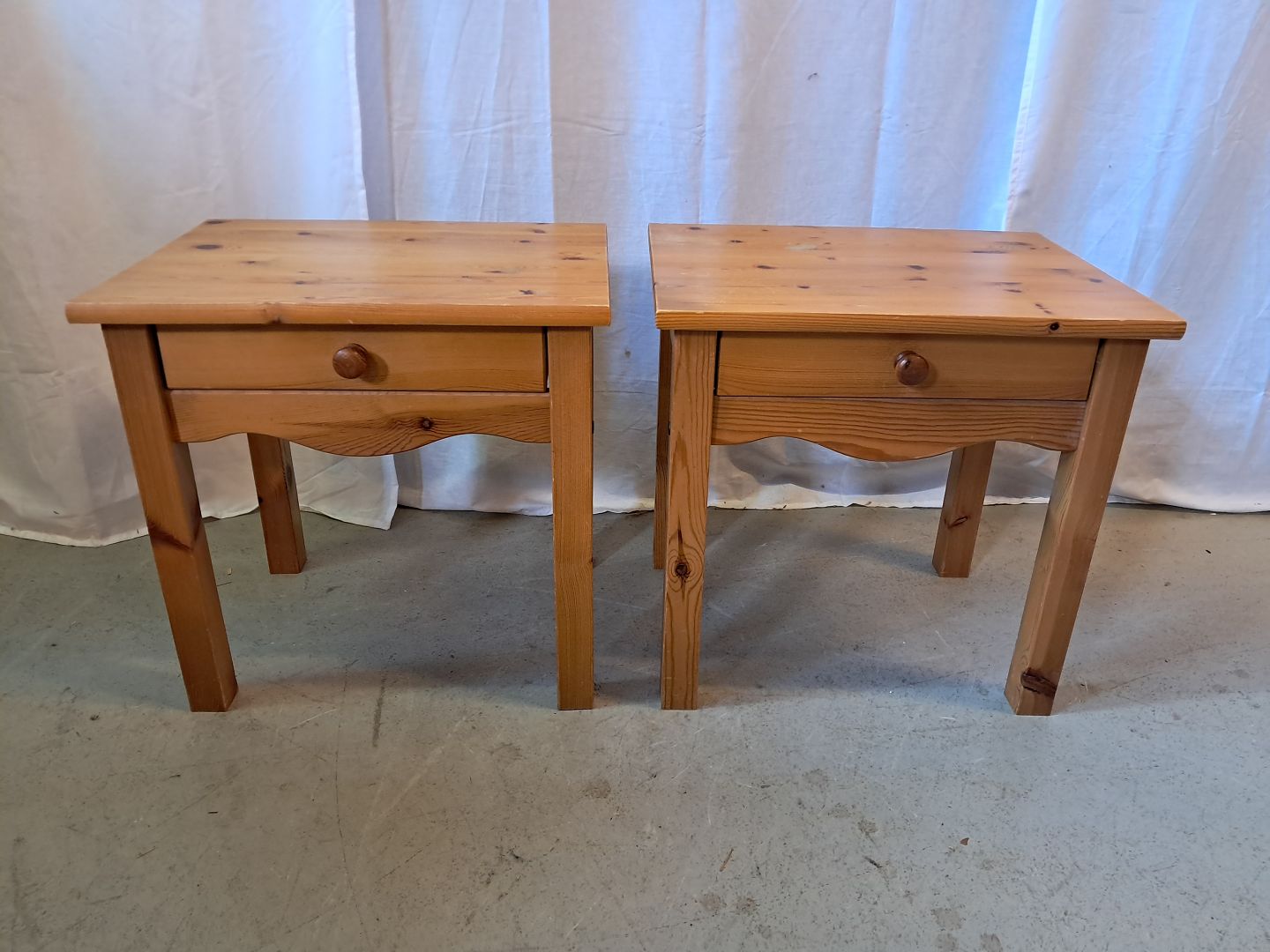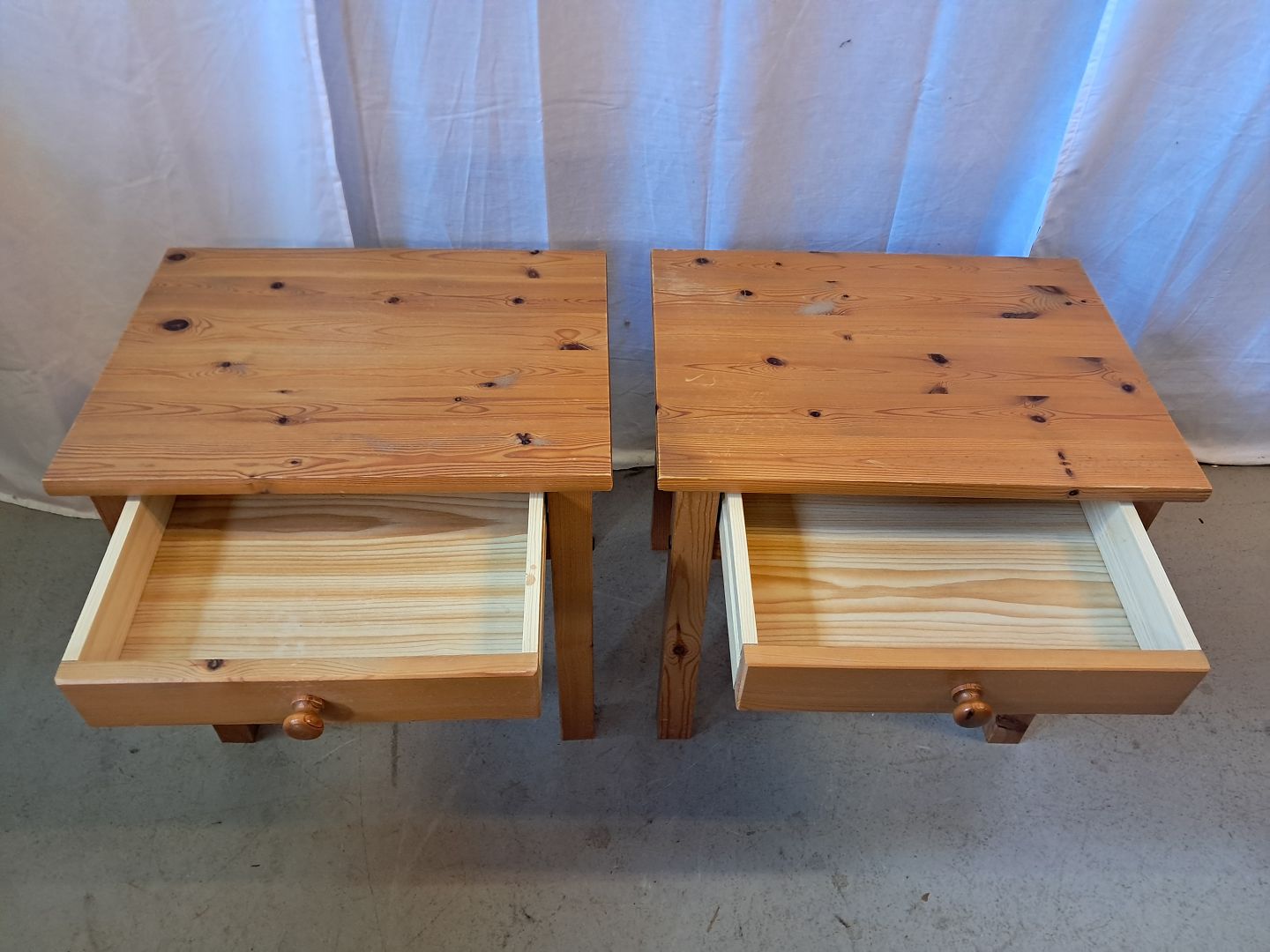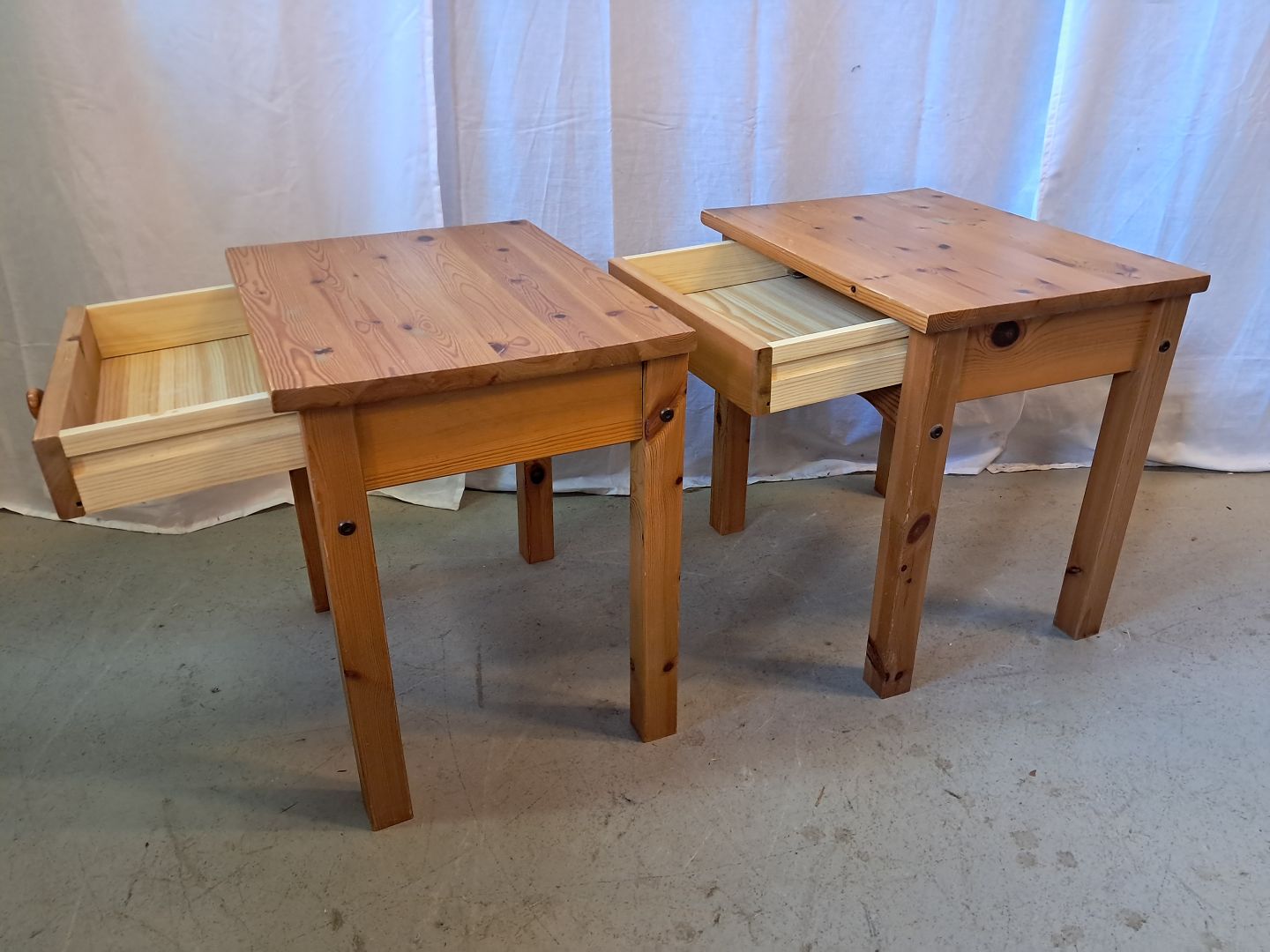 2 Sideborde i massivt fyrretræ, fra 1980-1990erne.De har brugsspor.
