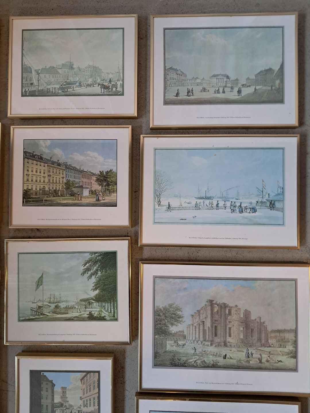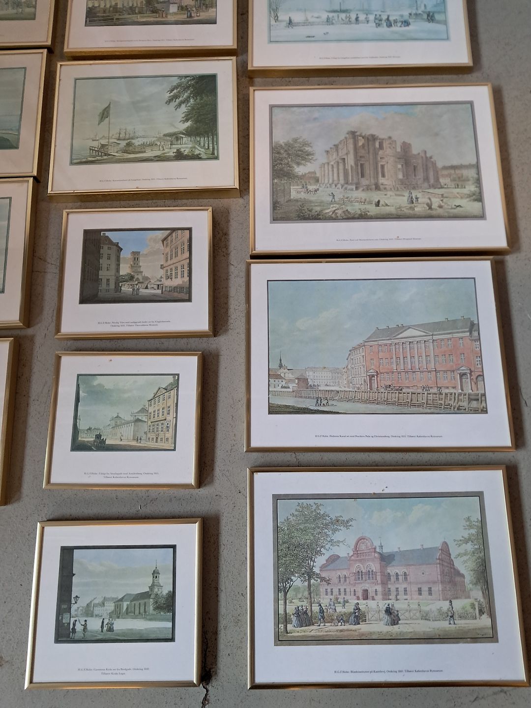 20 Stk. Billeder af H.G.F. Holm København, i aluminiumsrammer med glas, fra 1980erne.