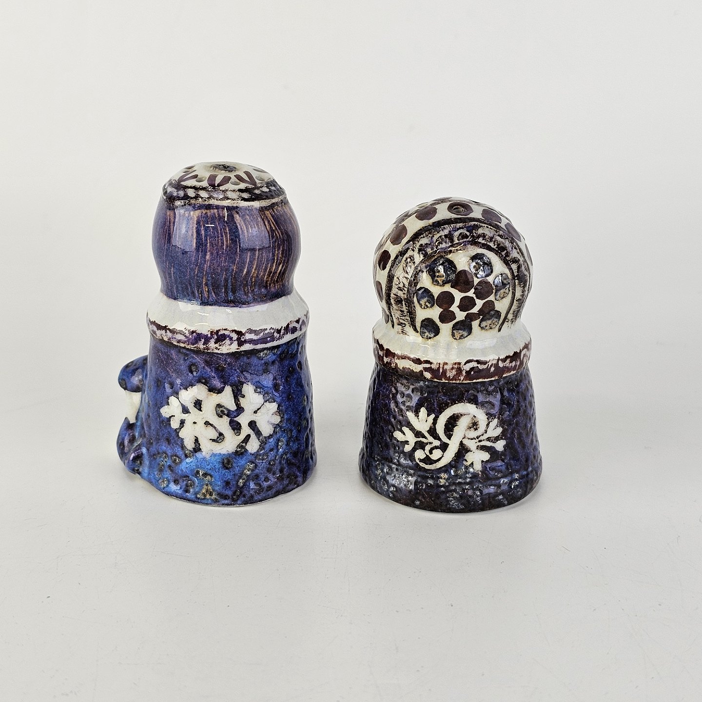 Salt og pebersæt af fajance, med motiv af små piger.Nr 311/3574 og 310/3573.