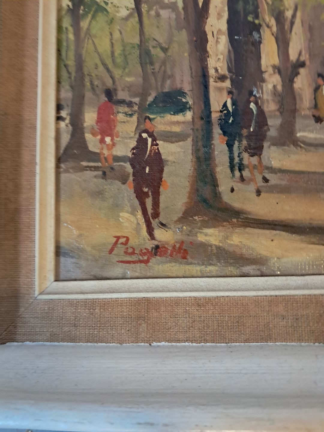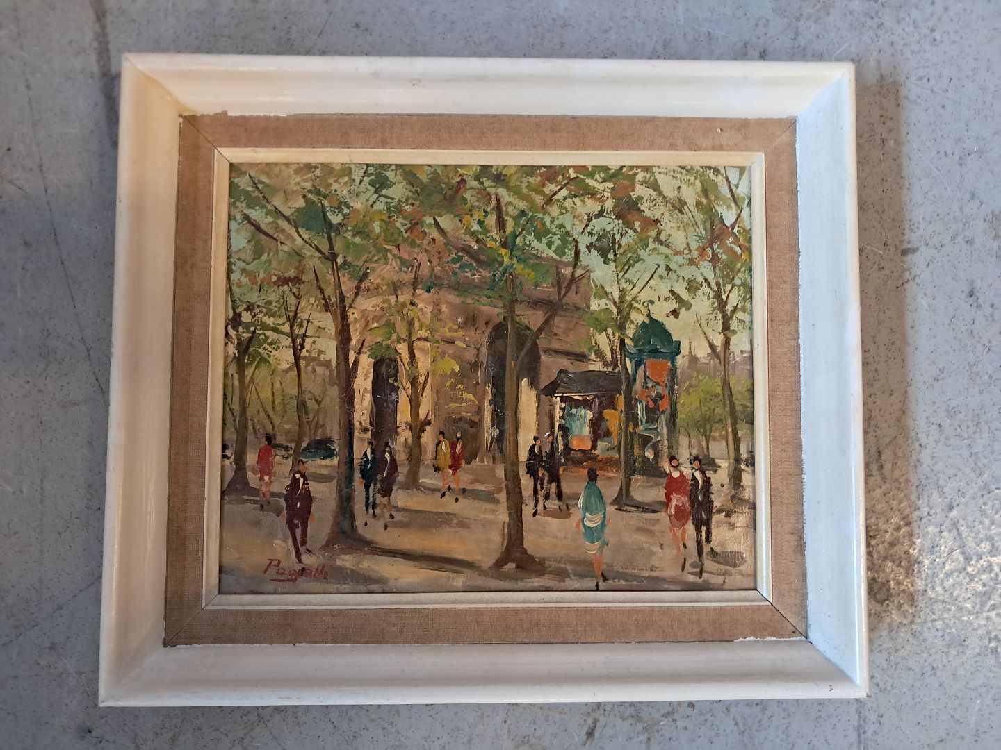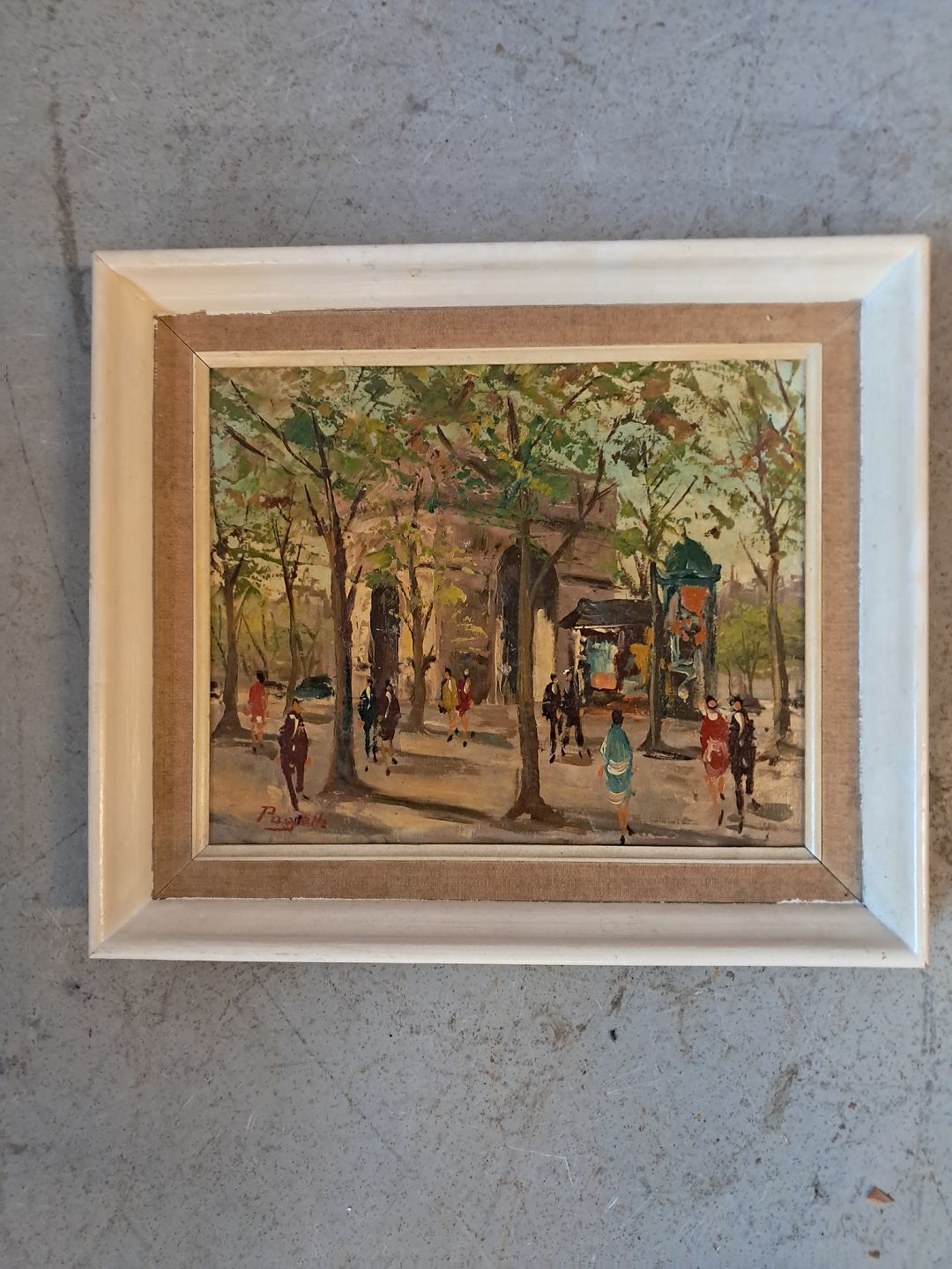 Pariser motiv i malet ramme, fra 1960erne.Det har brugsspor.