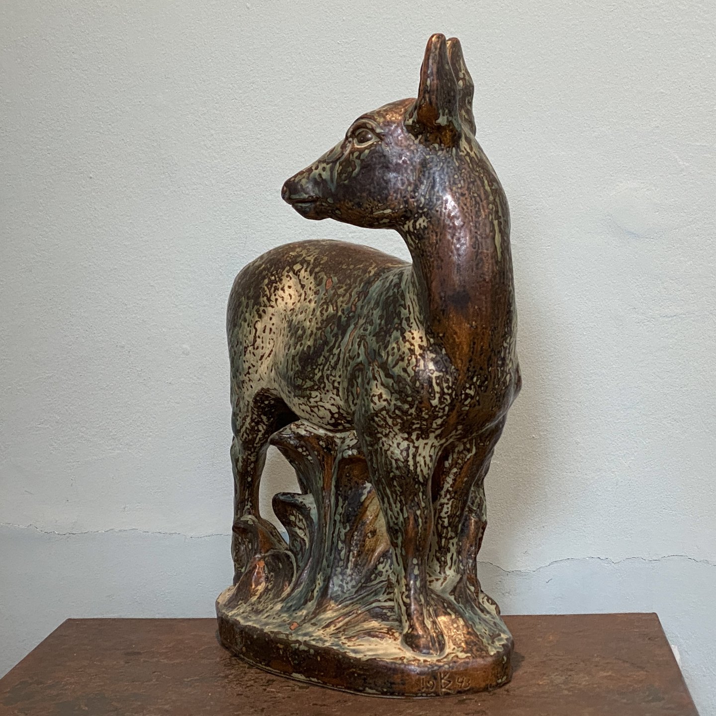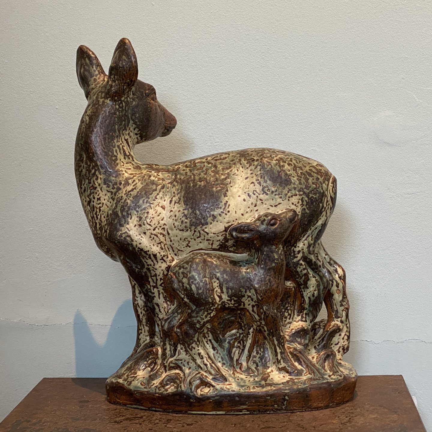 Knud Kuhn for Royal CopenhagenStentøjsfigur af dådyr med rålam.