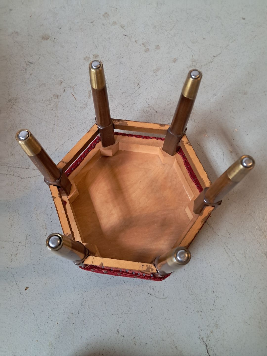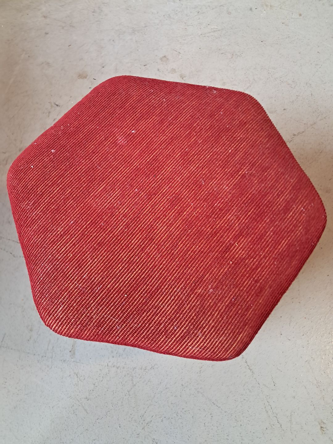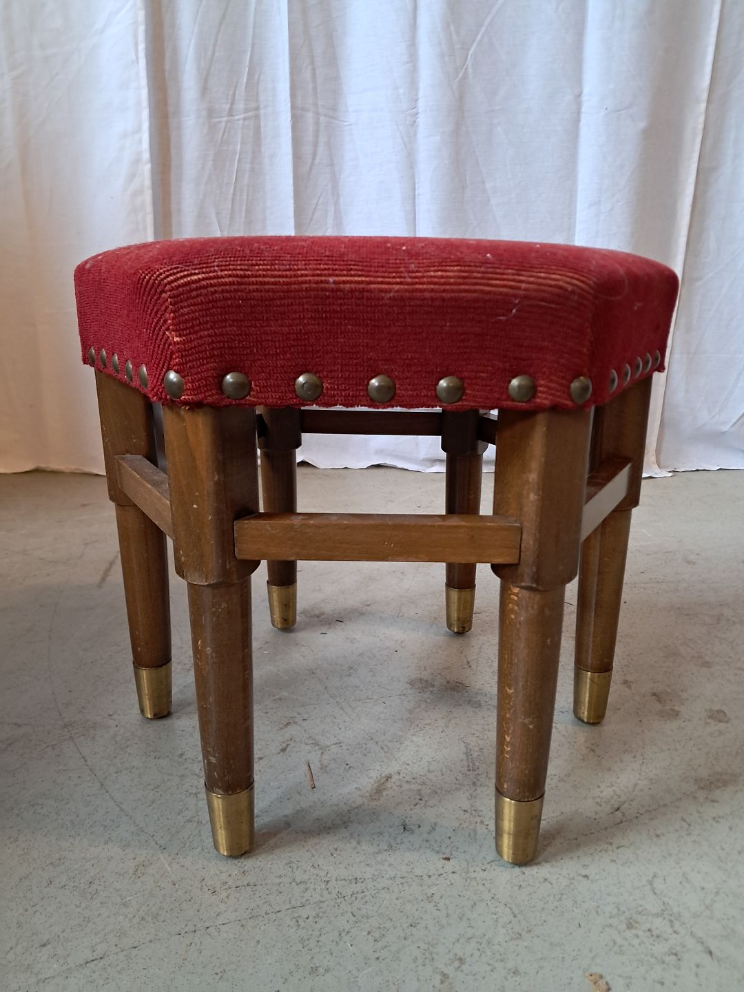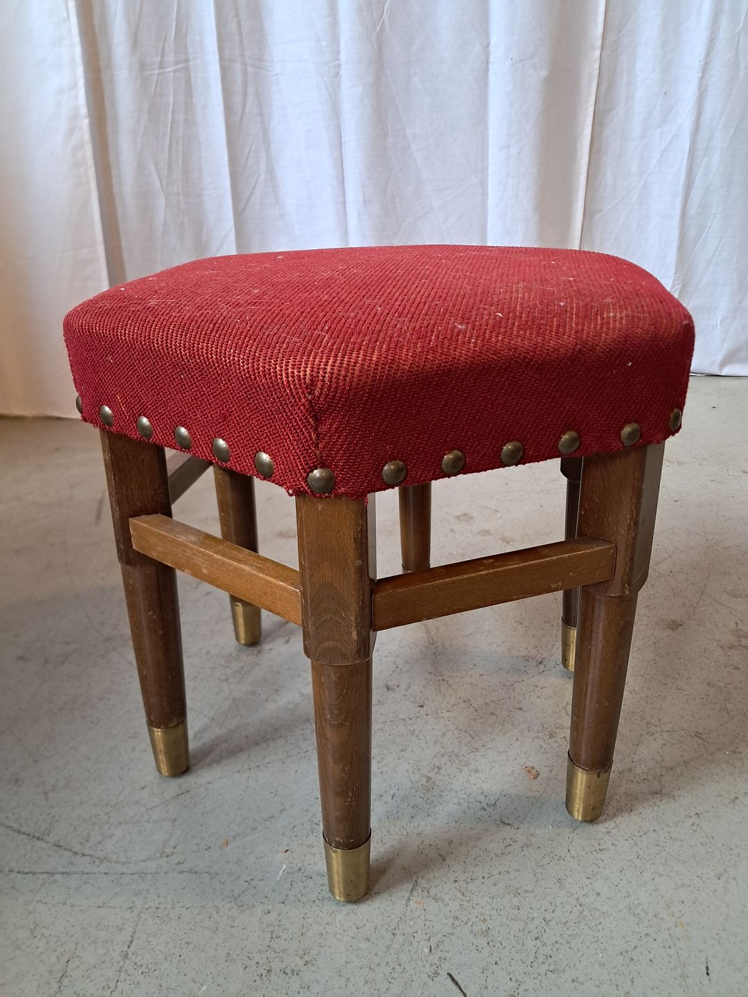 Skammel i massivt nødetræ, fra 1950erne.Betrækket er sldt.