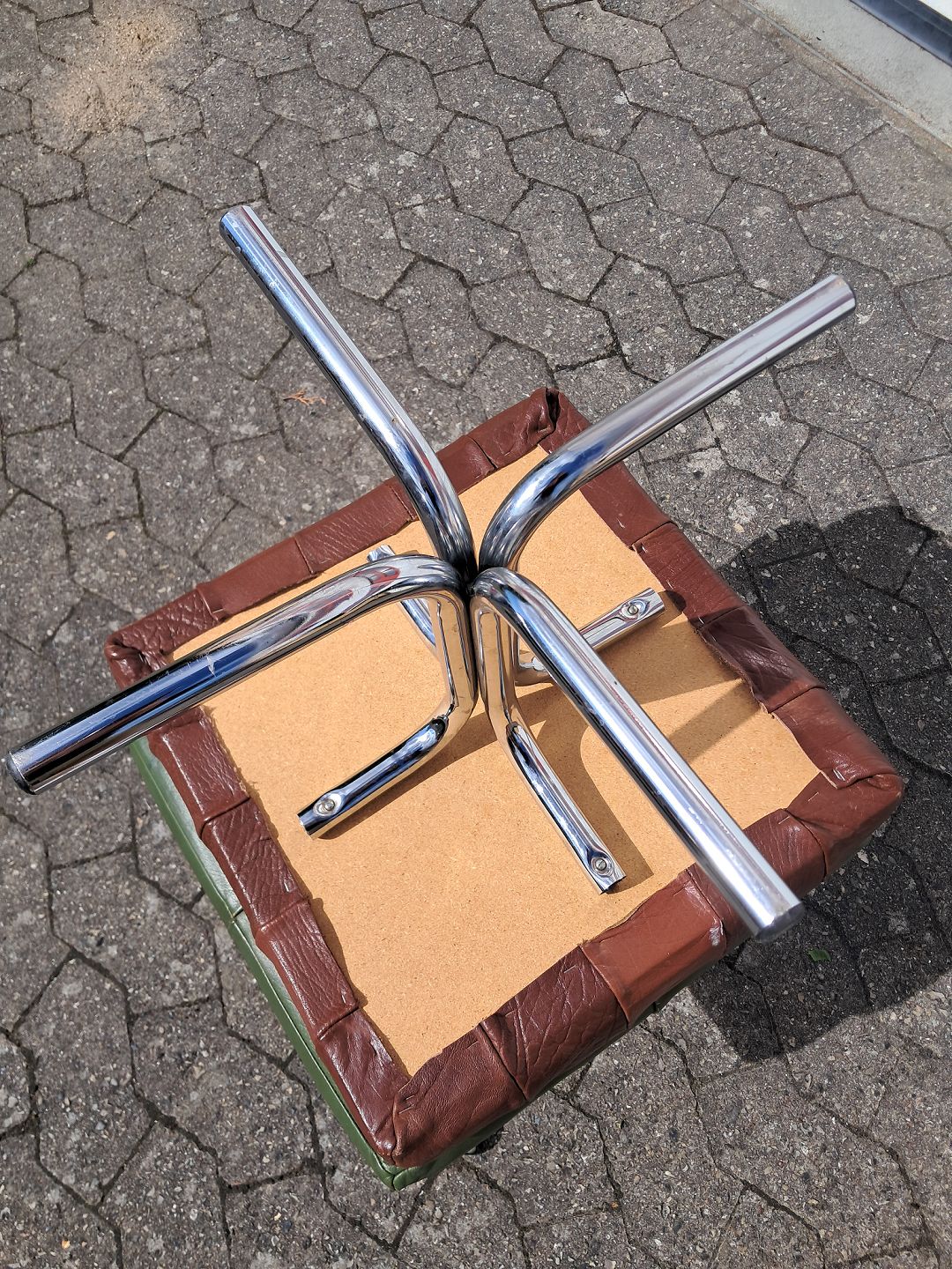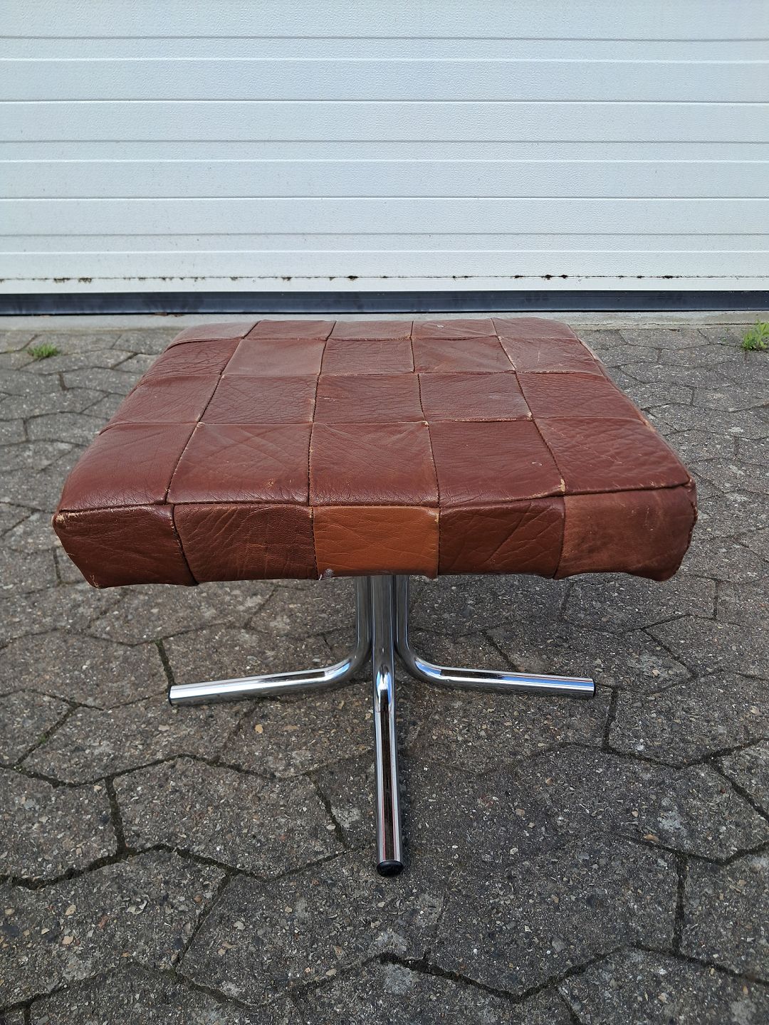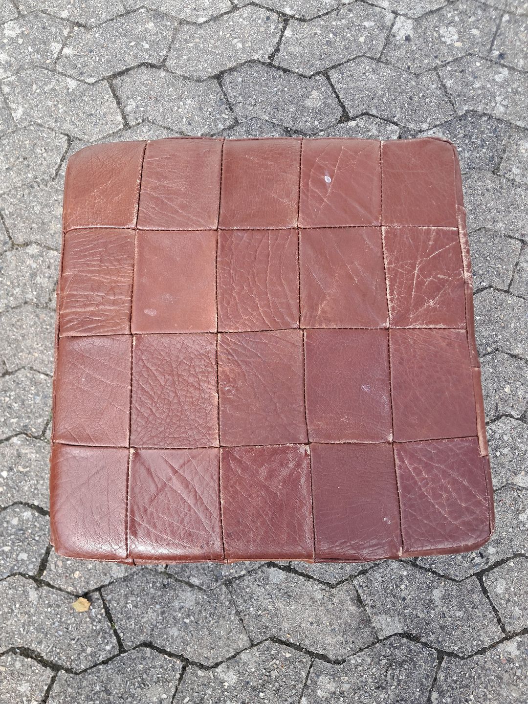 Skammel i læder og metal, fra 1980erne.Den har brugsspor.