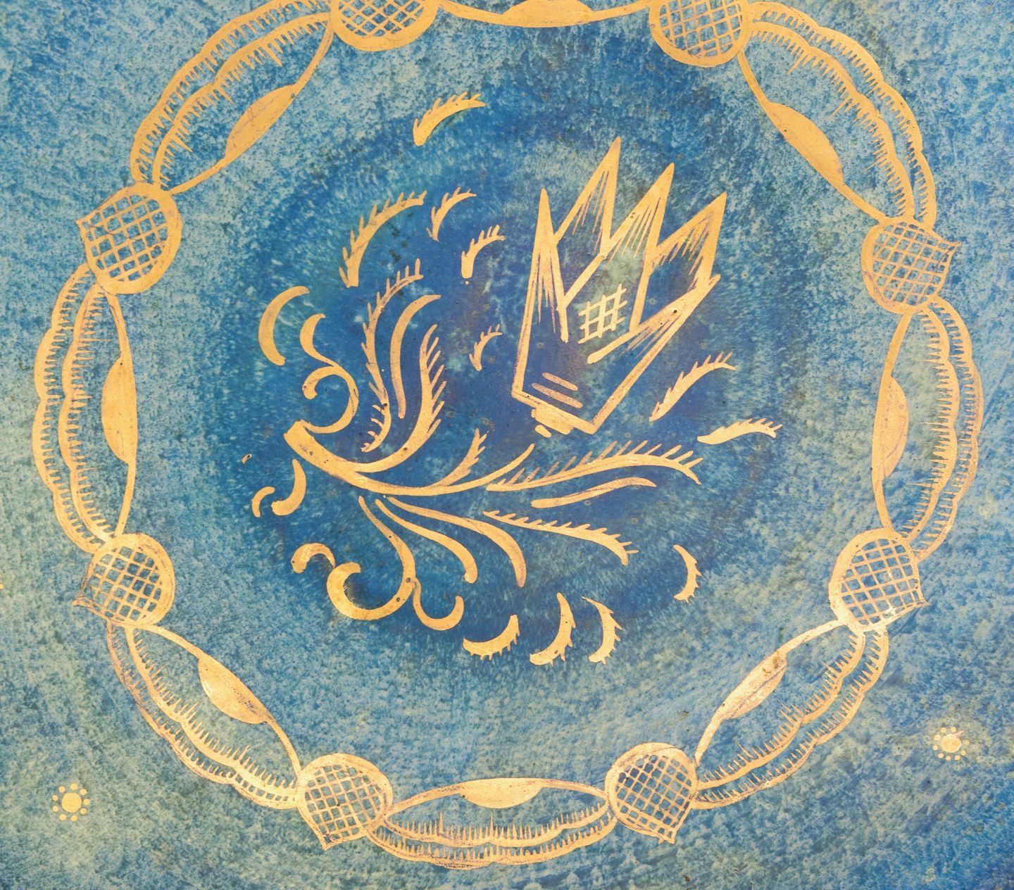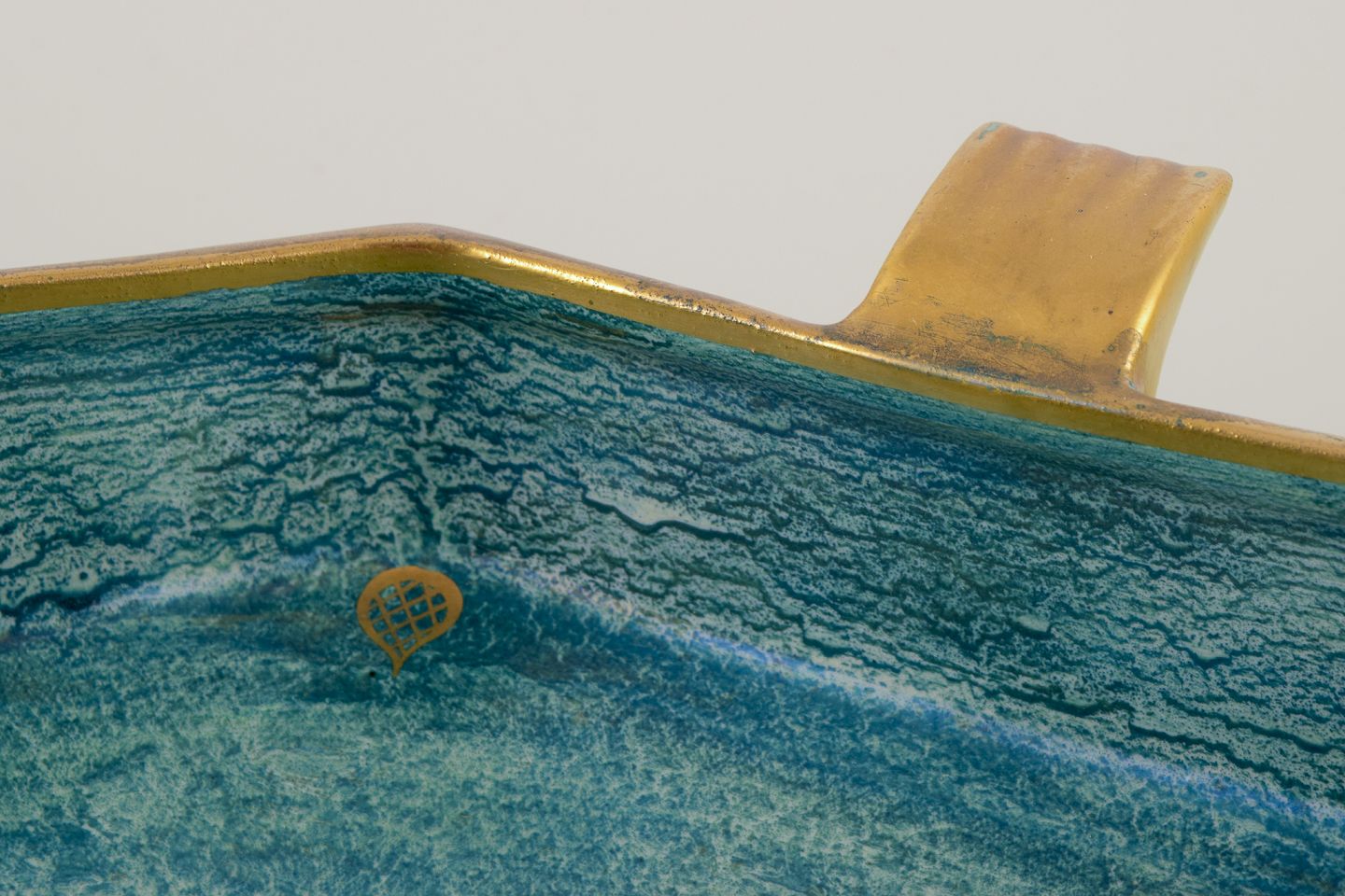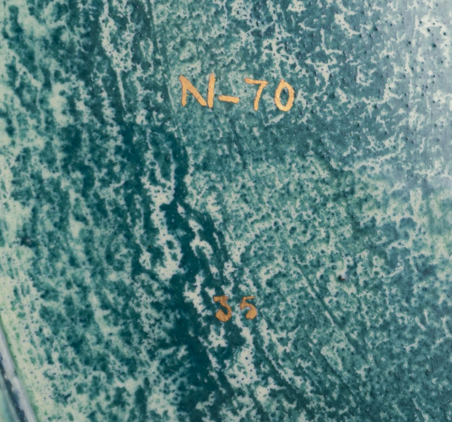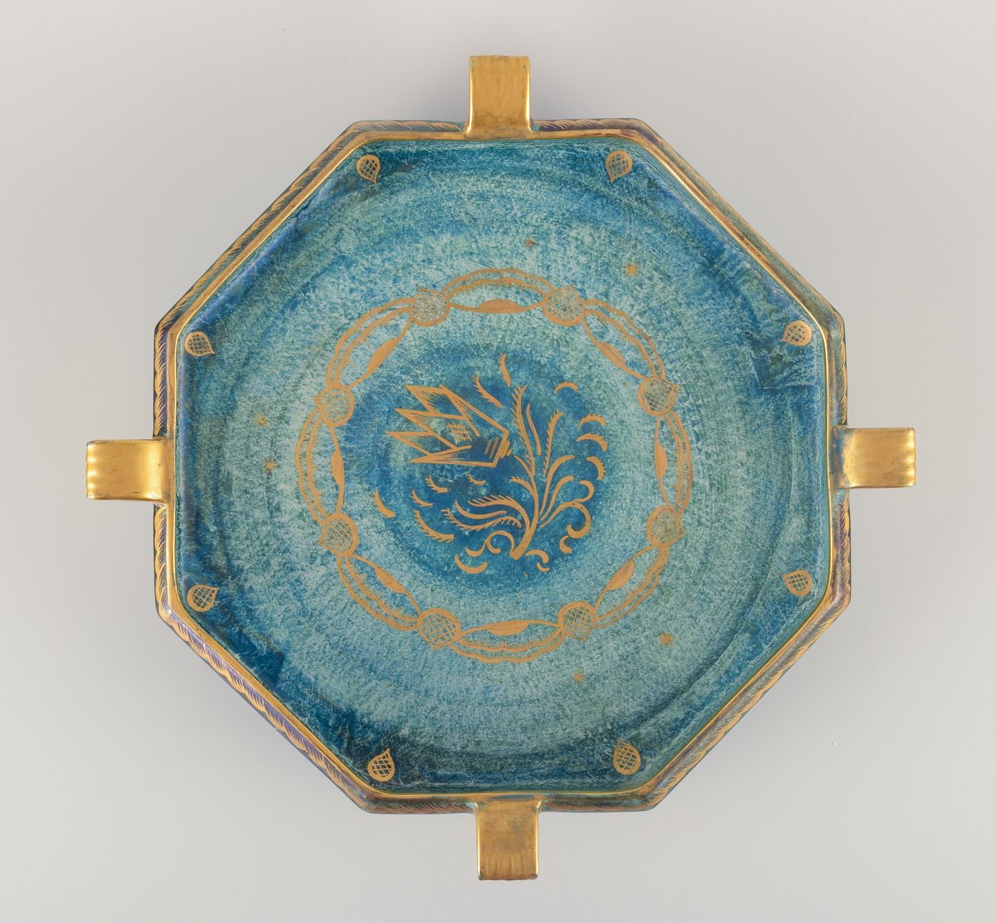 Josef Ekberg (1877-1945) for Gustavsberg, Sverige.Stor ottekantet skål af keramik. Håndmalet i grønne toner med gulddekoration.