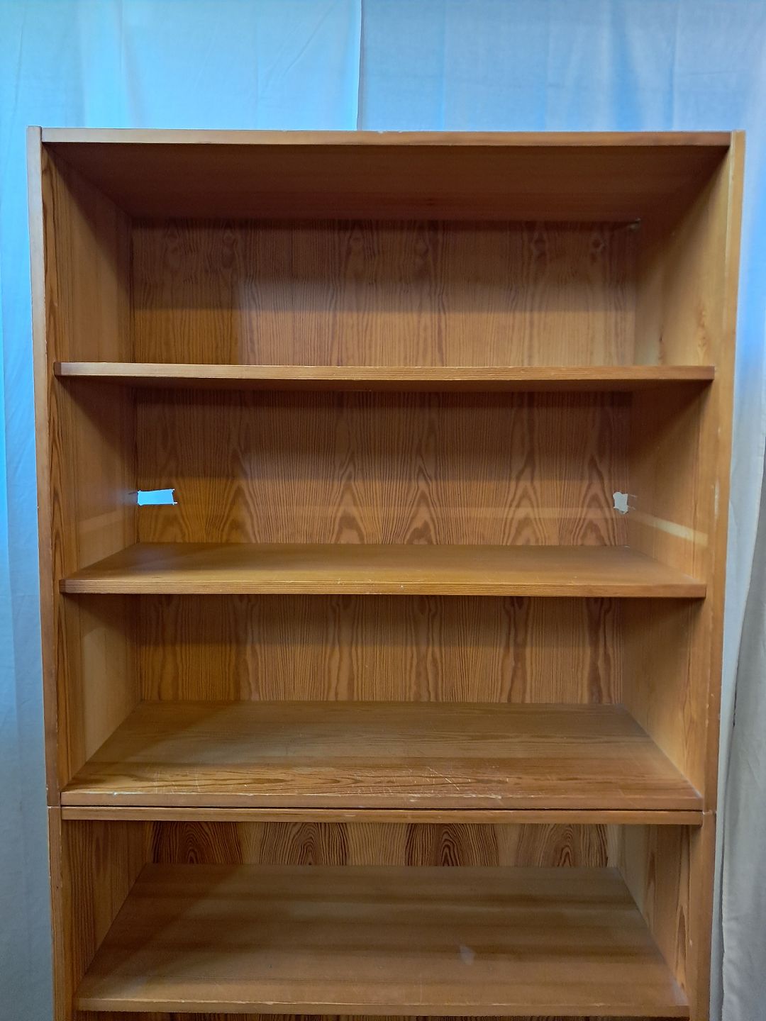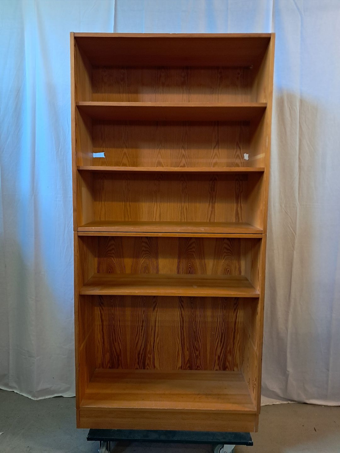Reol i fineret fyrretræ, fra 1980erne.Den har brugsspor.