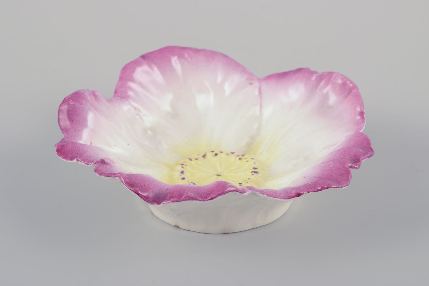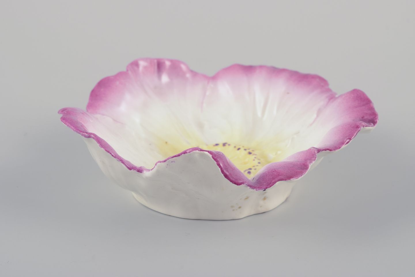 Tre små franske Art Nouveau skåle i fajance.Blomstermotiv. Håndmalet i gult og lyserødt.