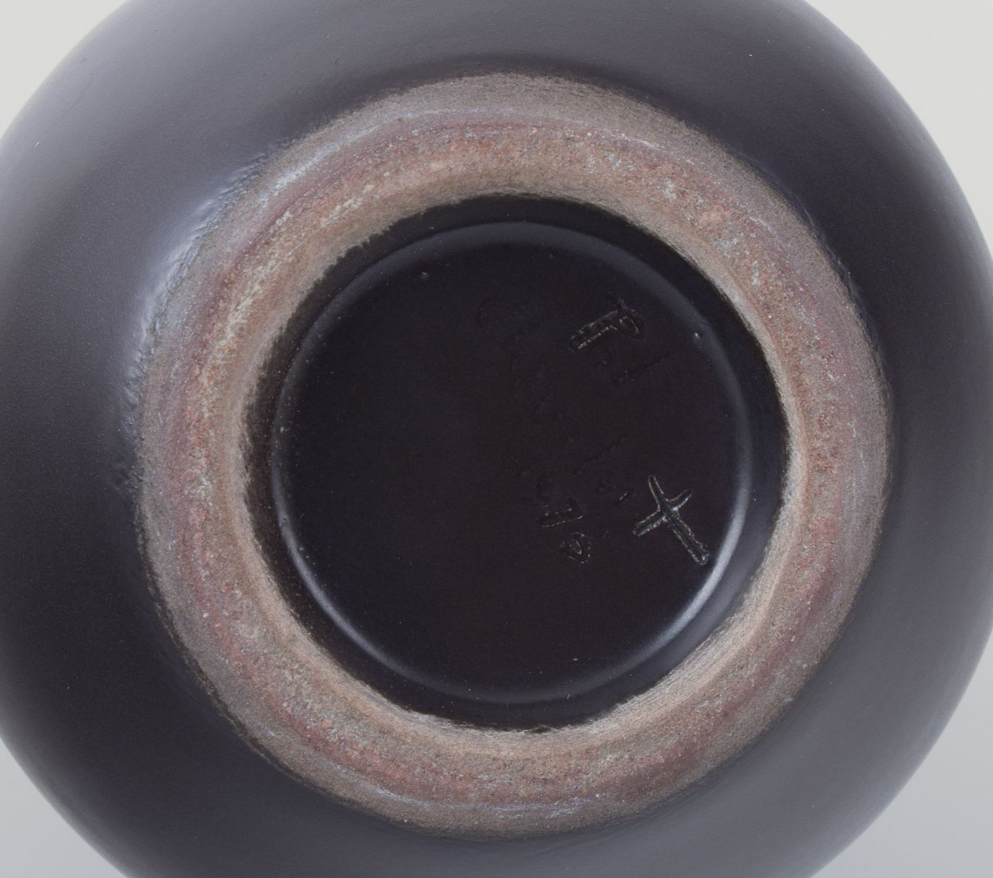 Pol Chambost (1906-1983), fransk keramiker. Unikavase af keramik.Smalhalset. Sort glasur.