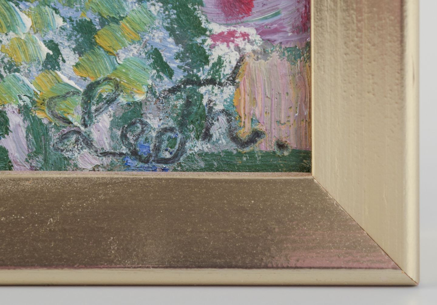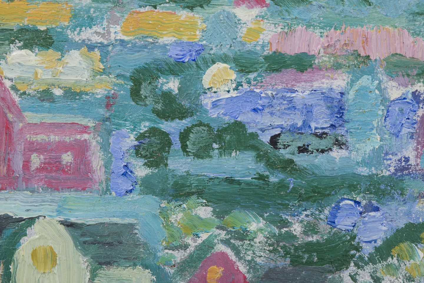 Leo Thellefsen (1909 - 1997), olie på plade.Modernistisk landskab.