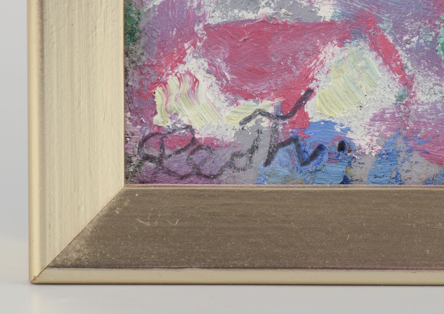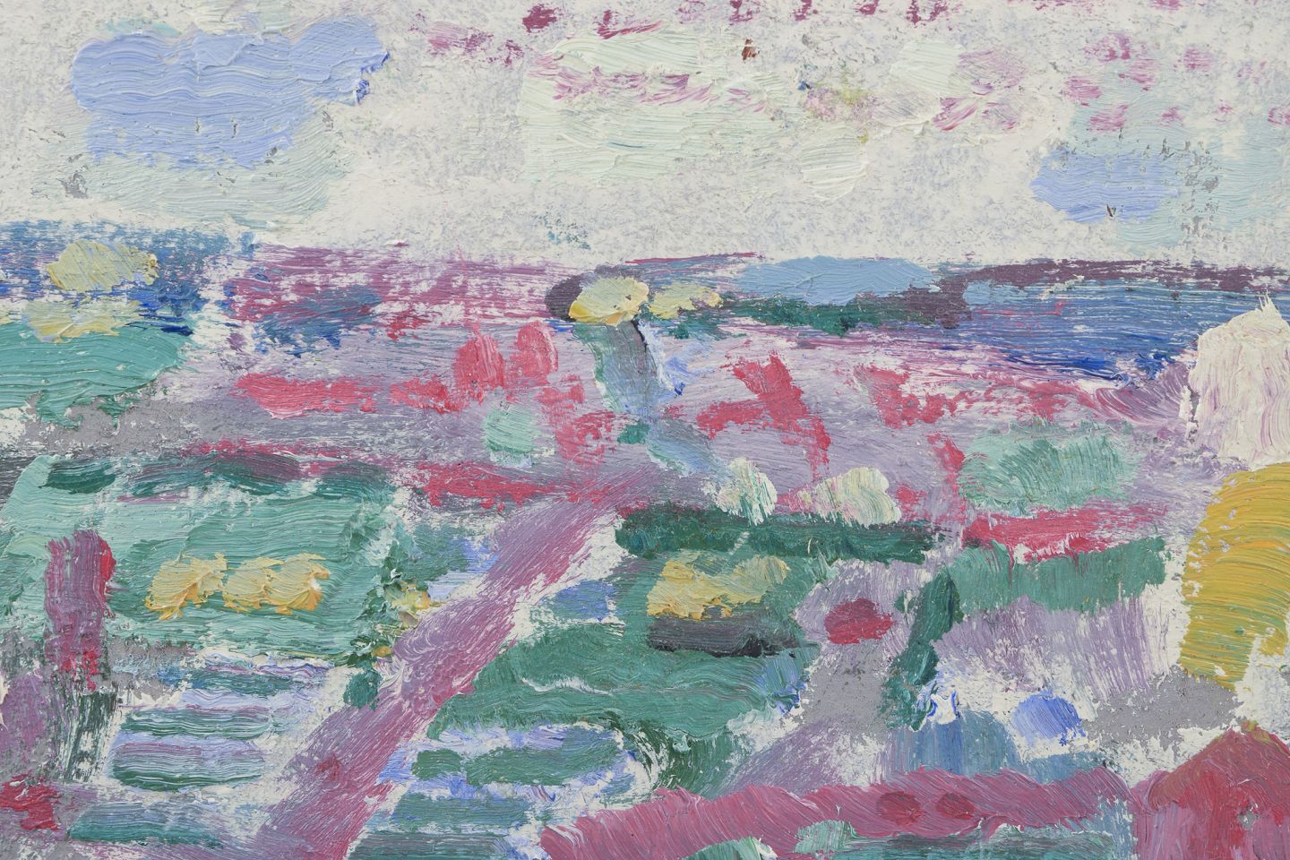 Leo Thellefsen (1909 - 1997), olie på plade.Modernistisk landskab.