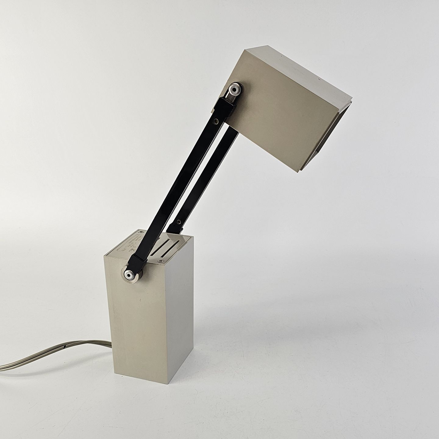 Lampetit bordlampe. Kan også bruges som væglampe.Lampen kan indstilles på mange forskellige måder, den har teleskop stang.