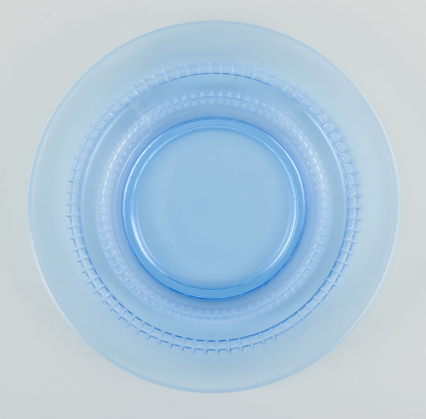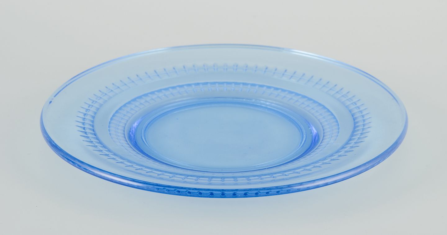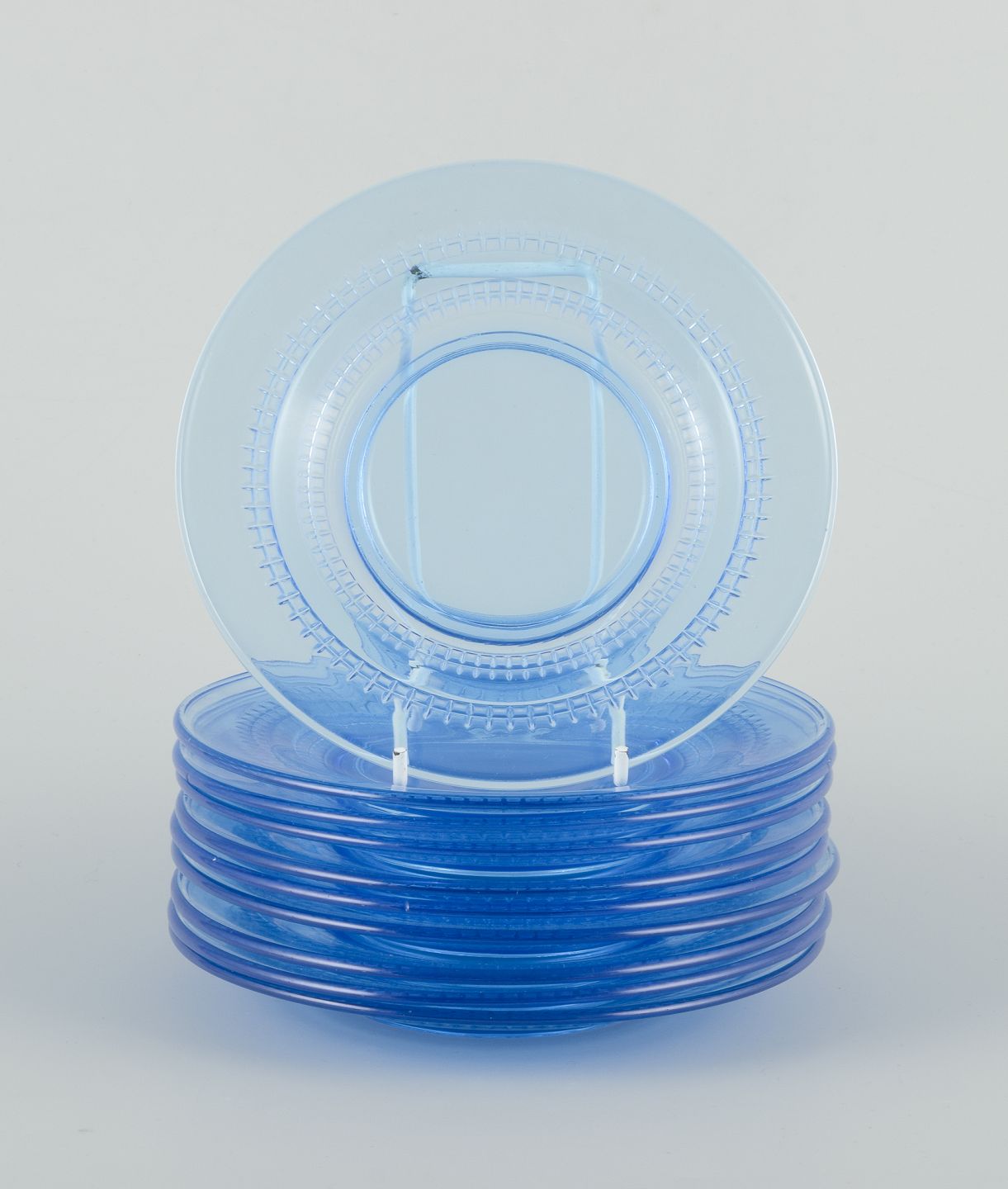 Et sæt på ti blå glastallerkener.Stilrent skandinavisk design.