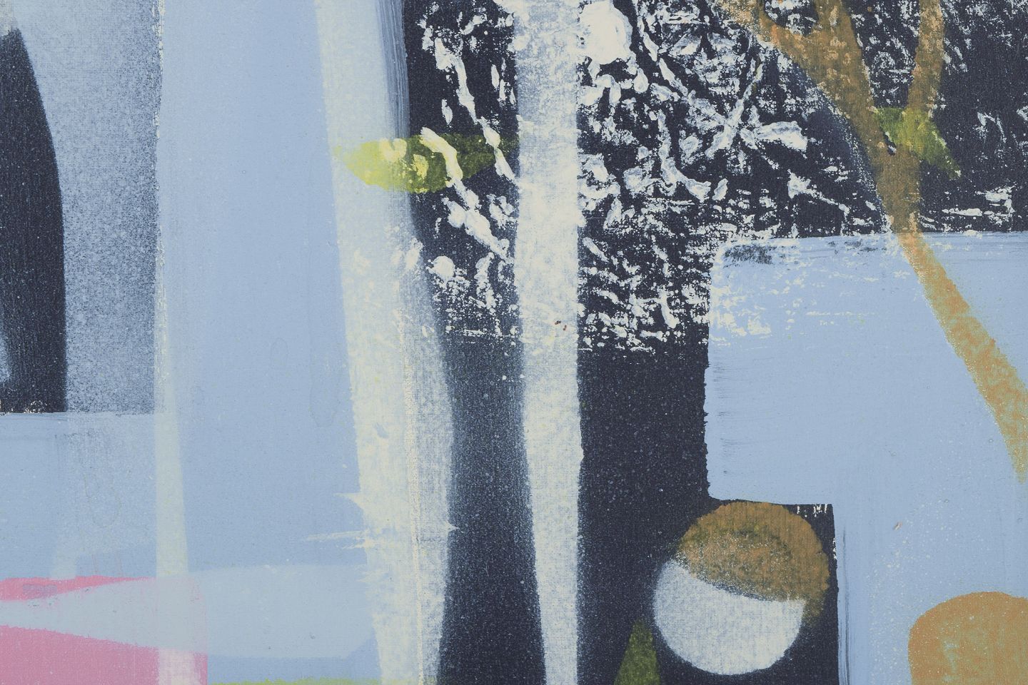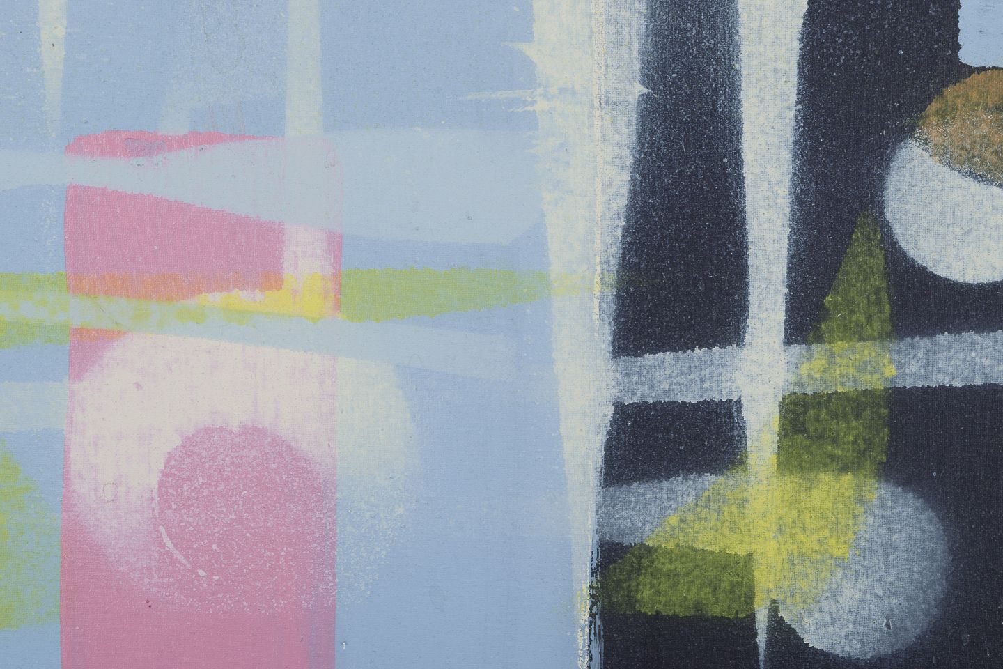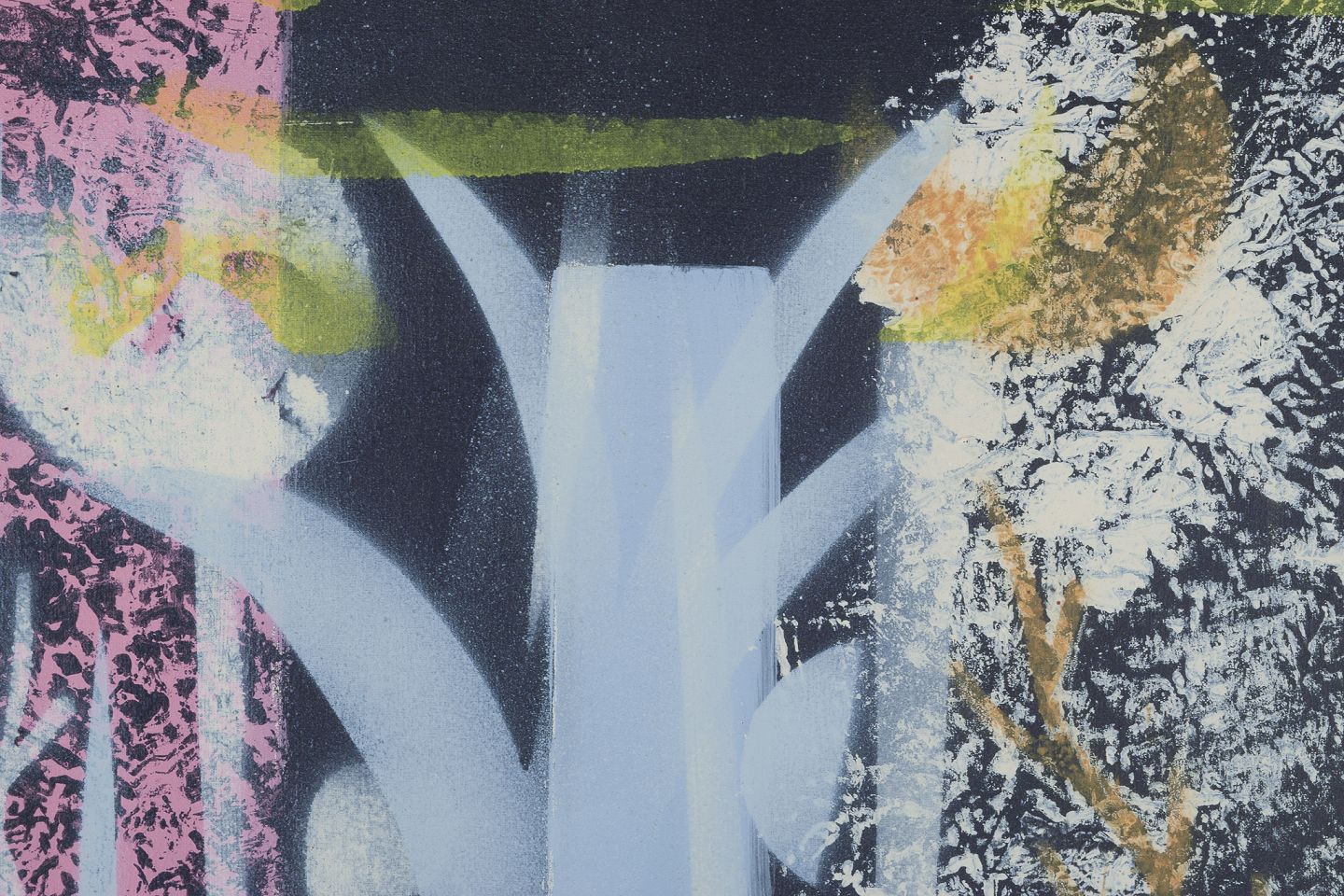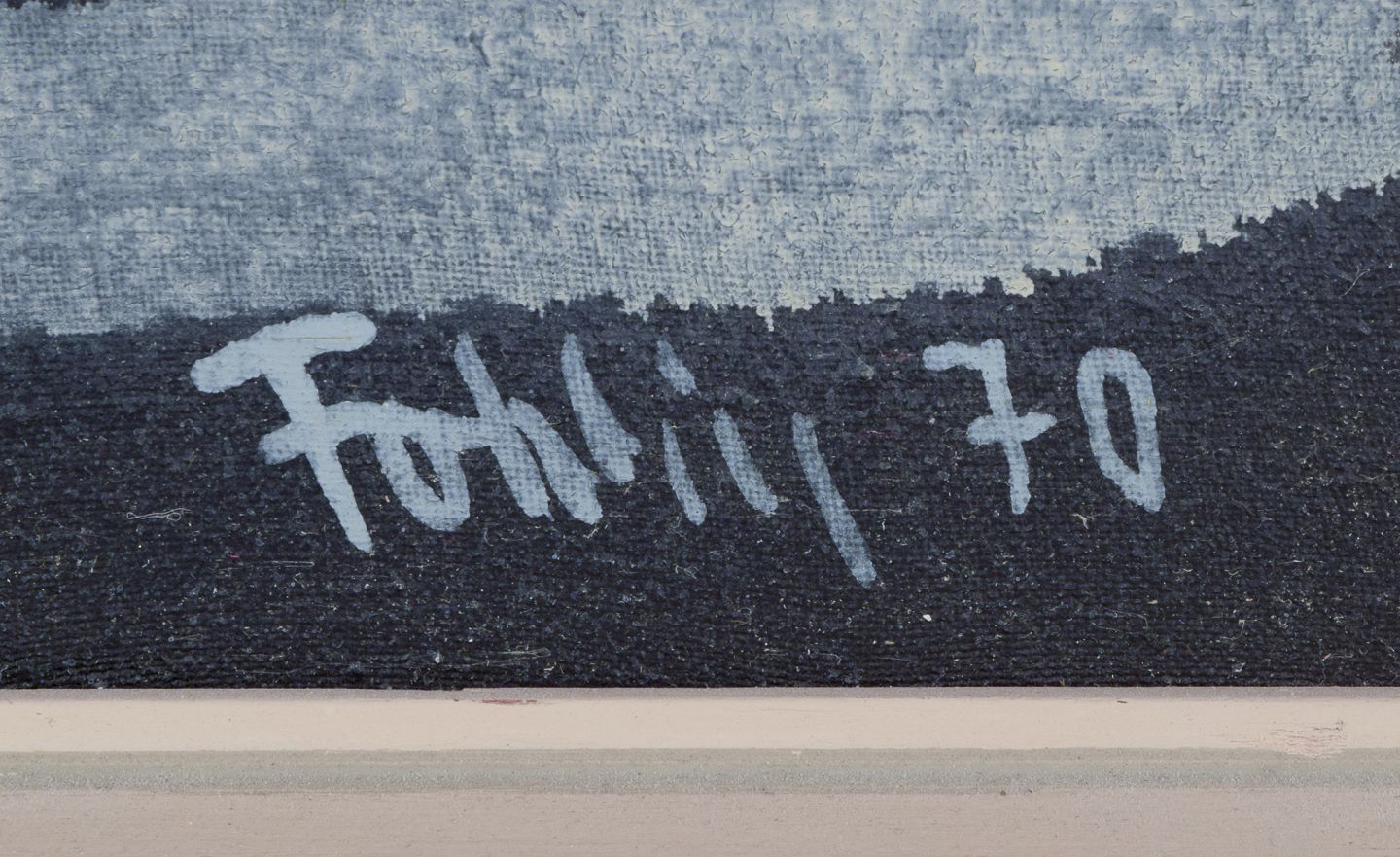Gunnar Fohlin (f. 1924), svensk kunstner.Olie på lærred. Abstrakt komposition.