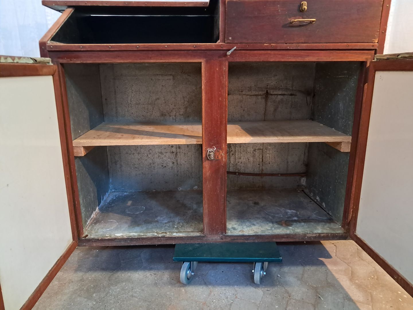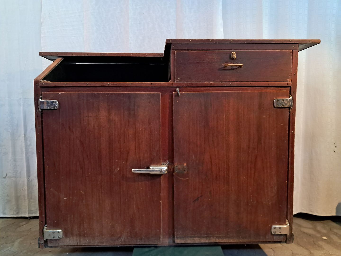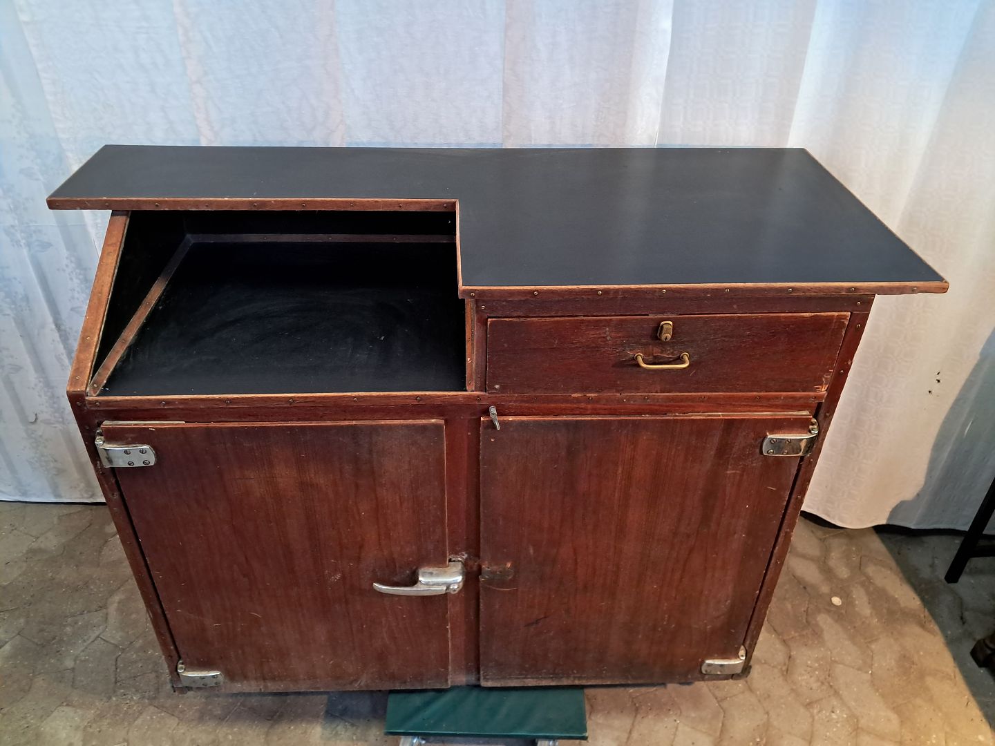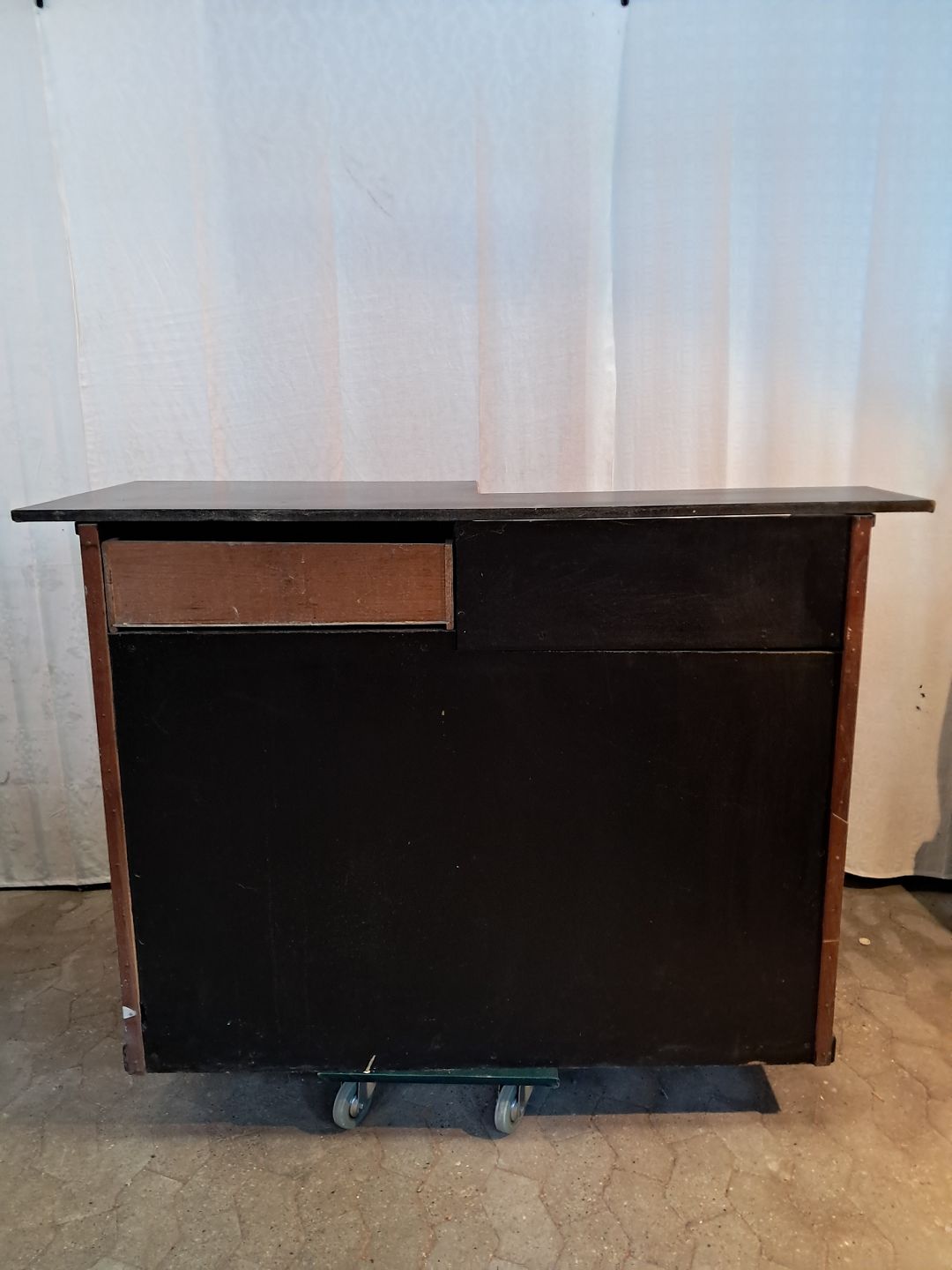 Bar i bejdset fineret egetræ, fra 1940erne.Den har brugsspor og defekter.
