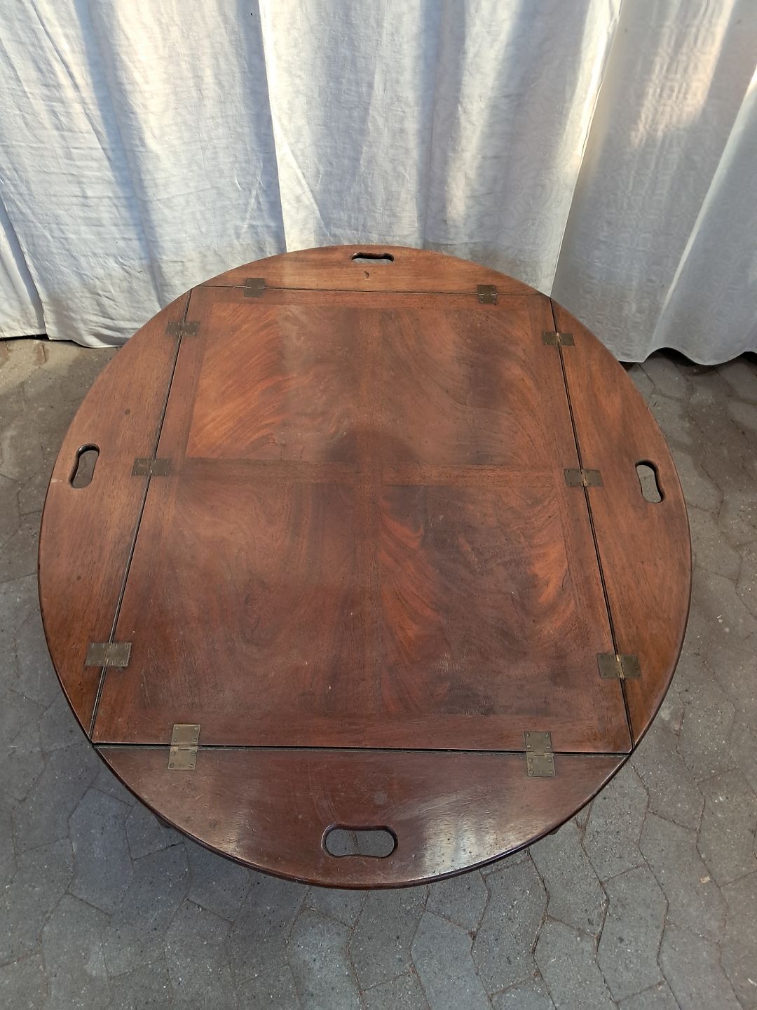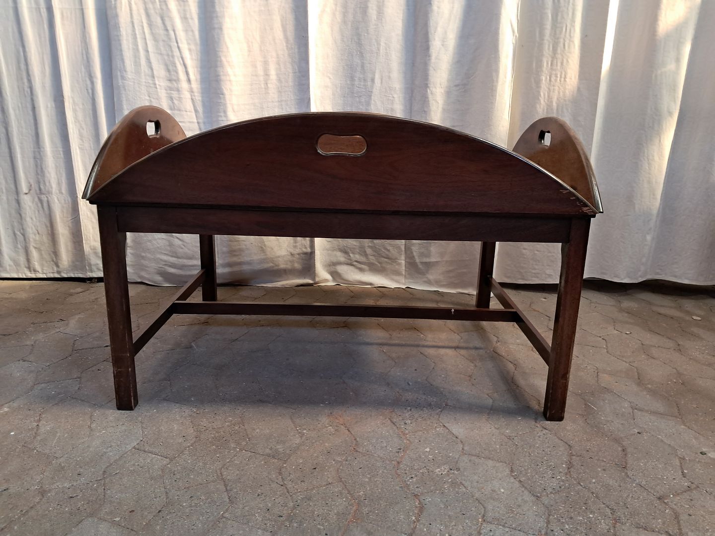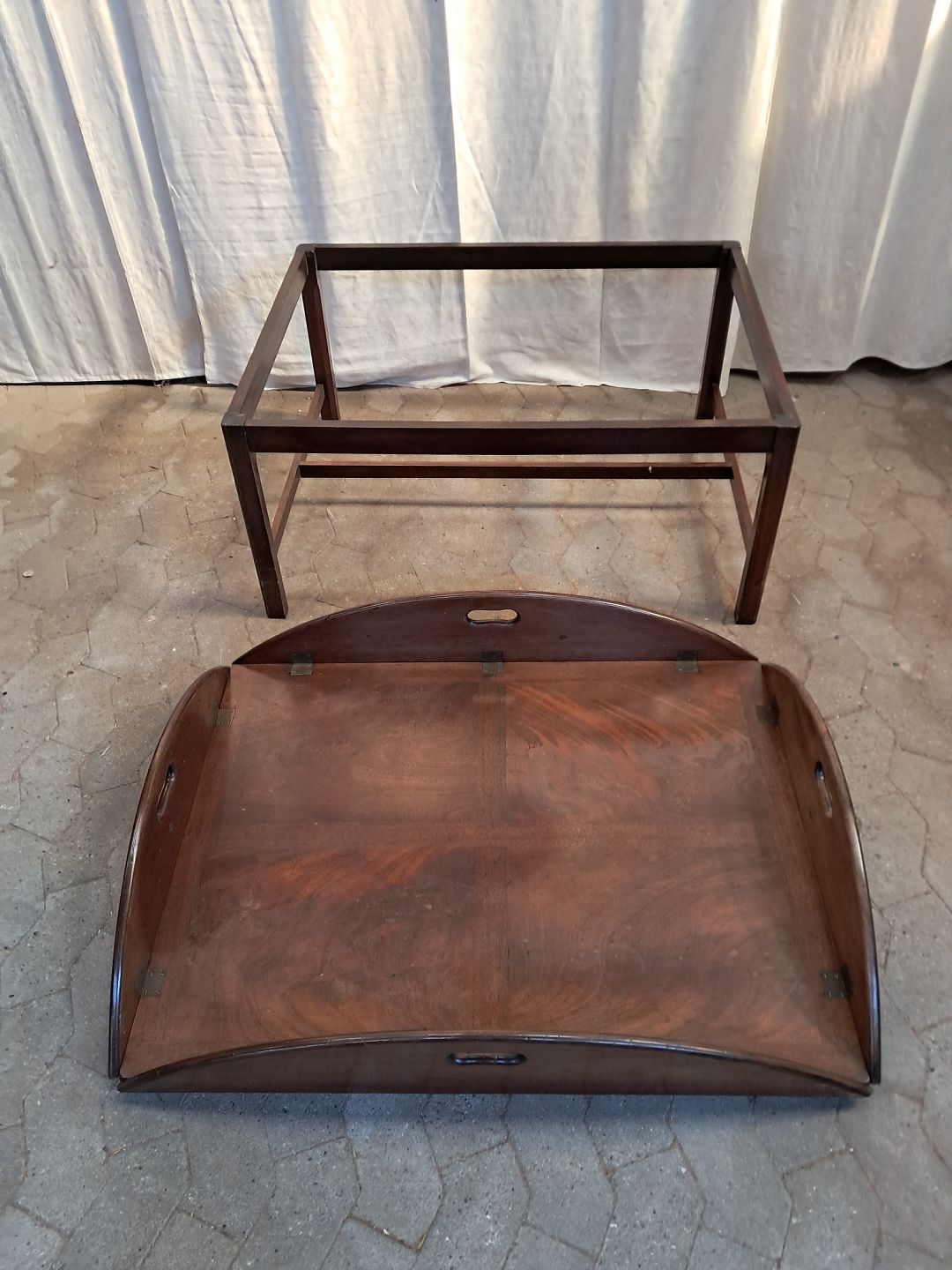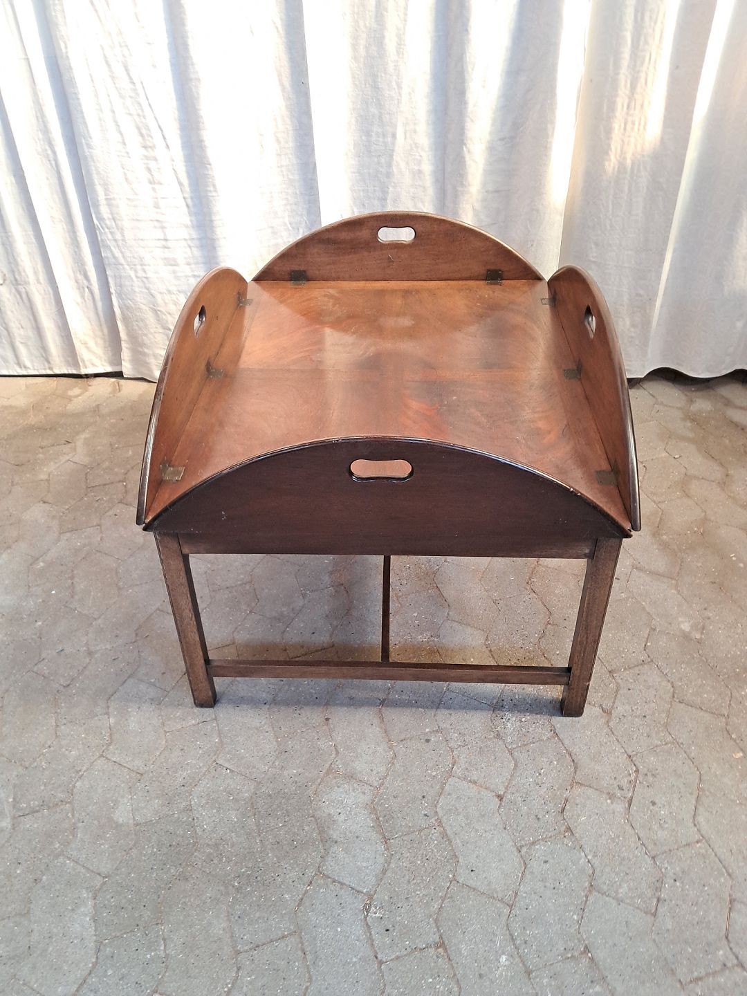 Stort butlers tray i fineret mahogni, fra 1980erne.Det har brugsspor.