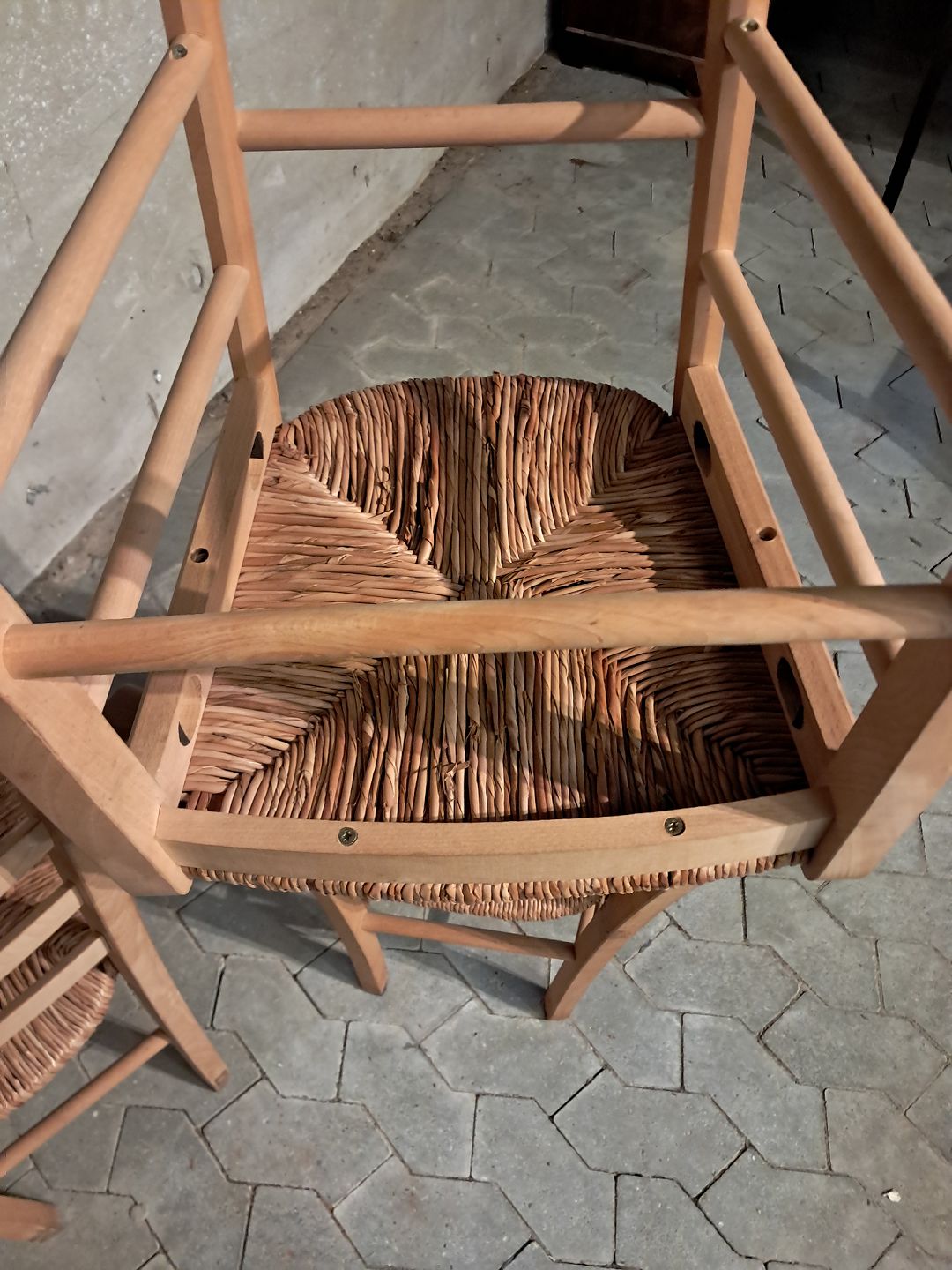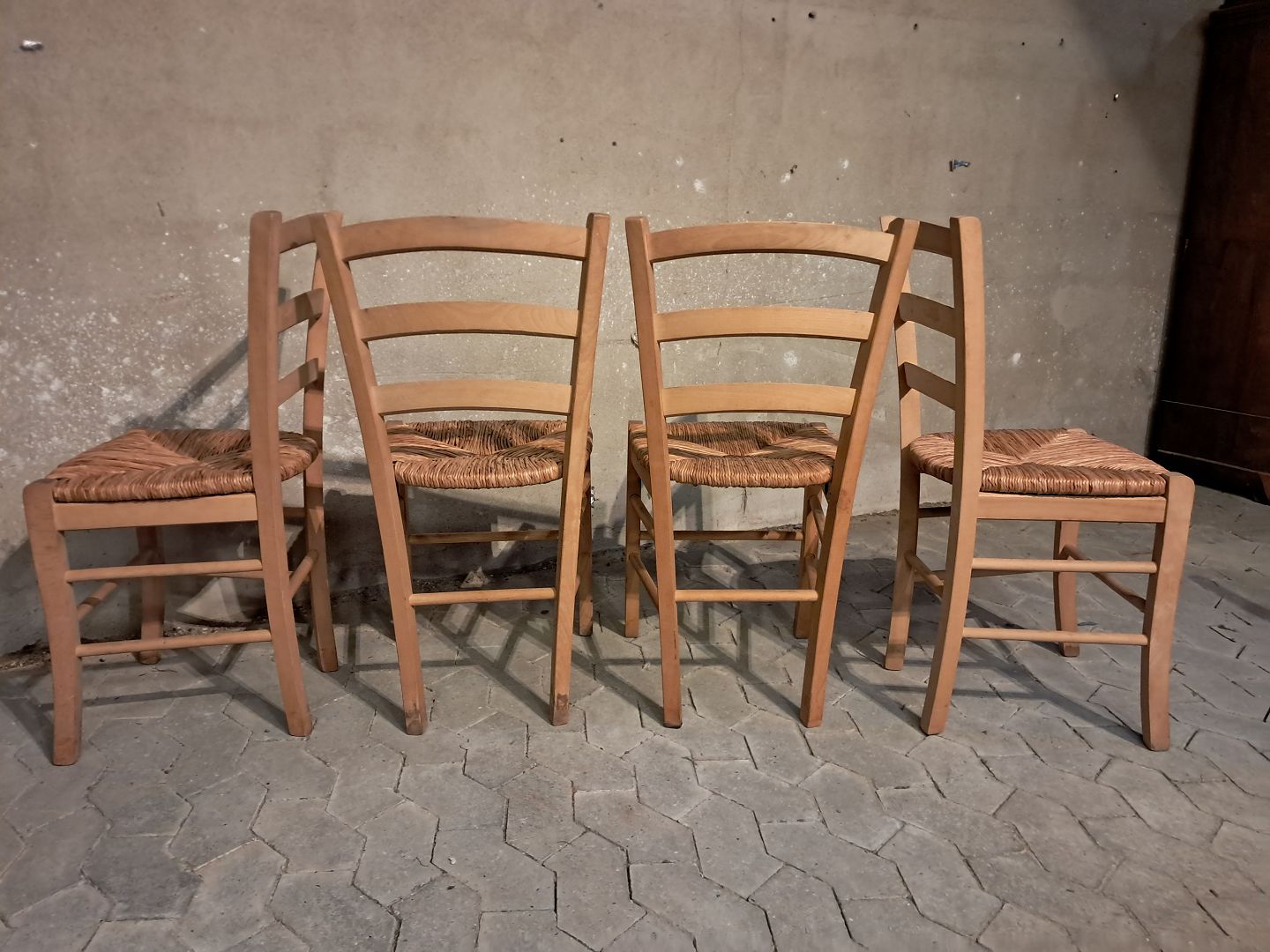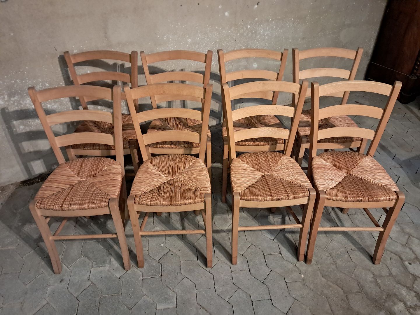 8 Stole i massivt bøgetræ med naturflet, af nyere dato.De har brugsspor.