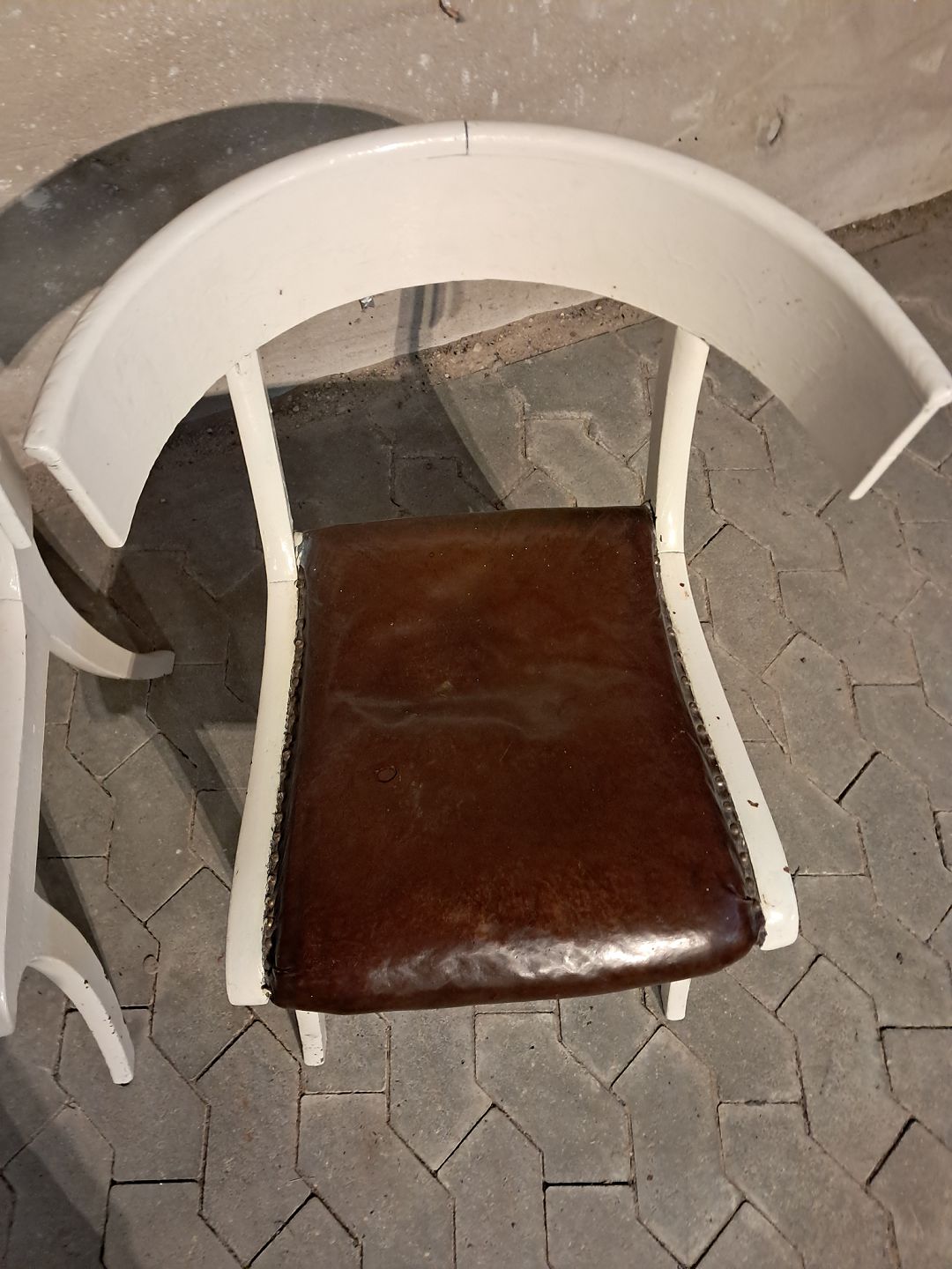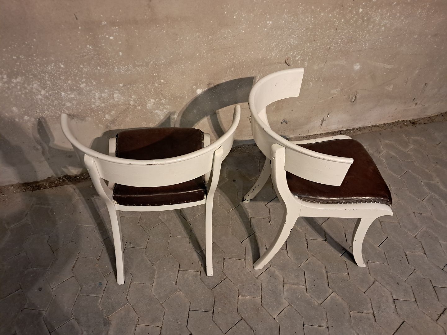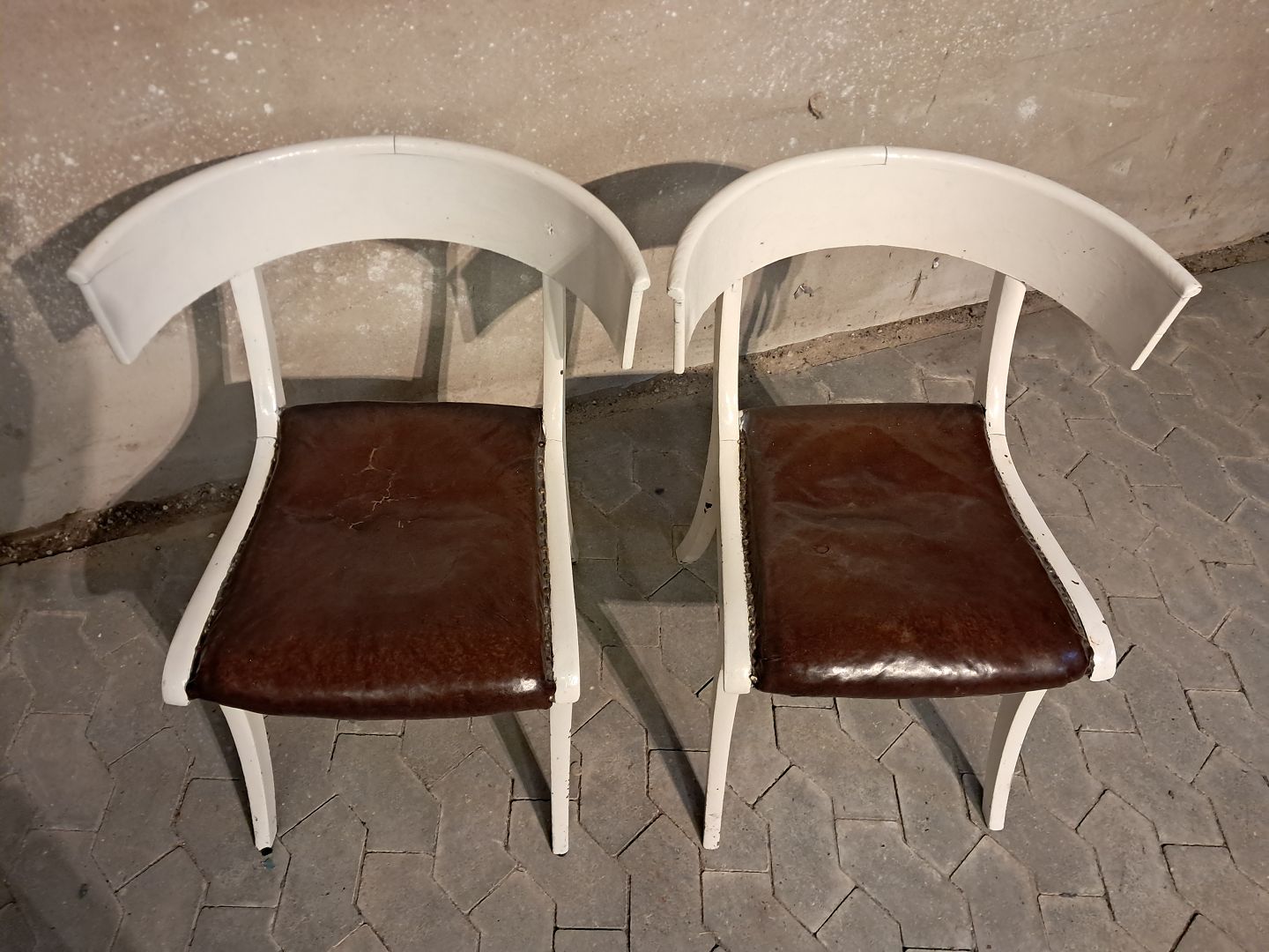 2 Malede stole med læderbetræk, fra 1910erne.De har brugsspor og den ene har defekt læder.(se foto)