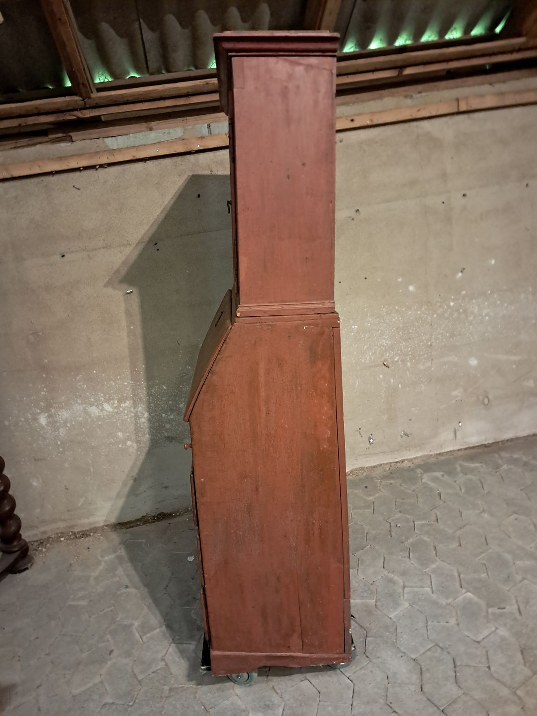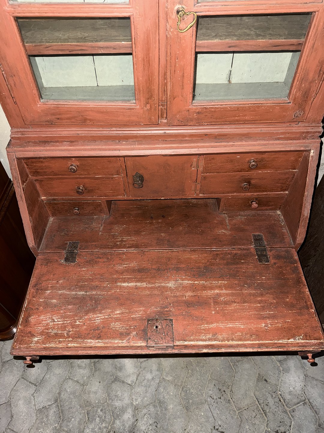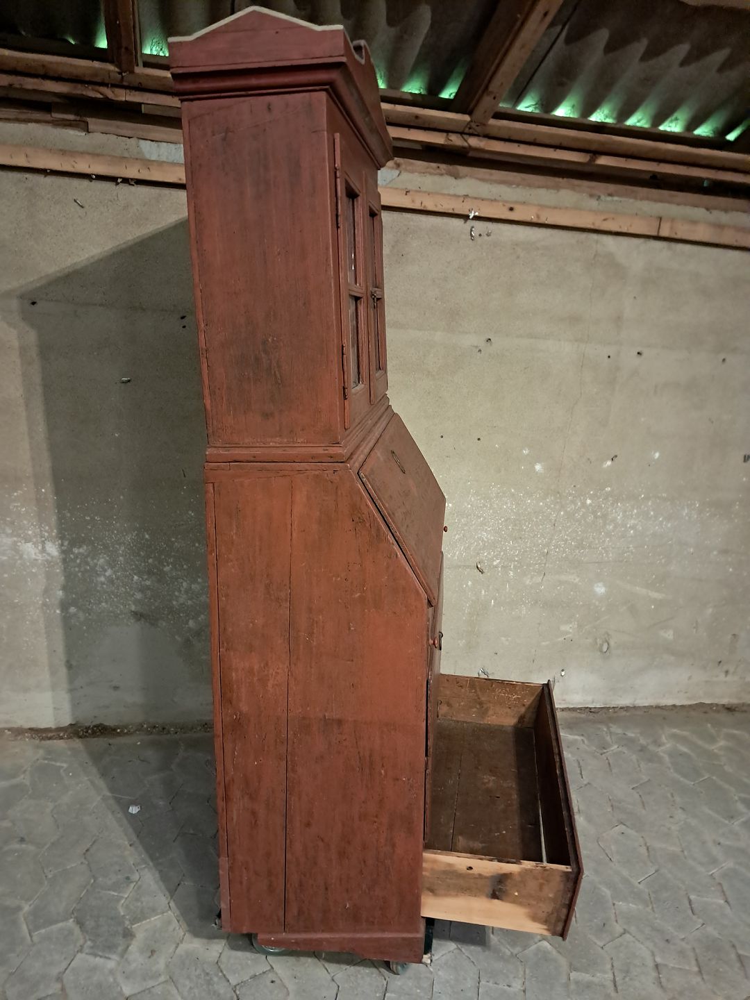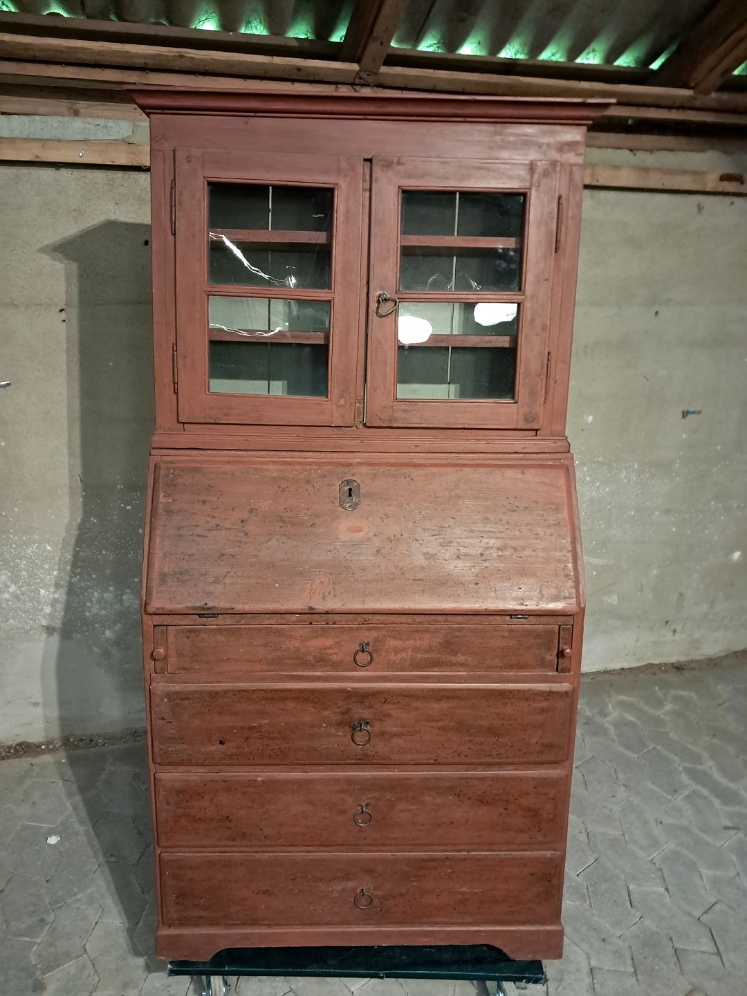 Malet chatol med overdel i massivt fyrretræ, fra 1880erne.Det har en revne i den ene glasrude og soklen har defekter.(se foto)