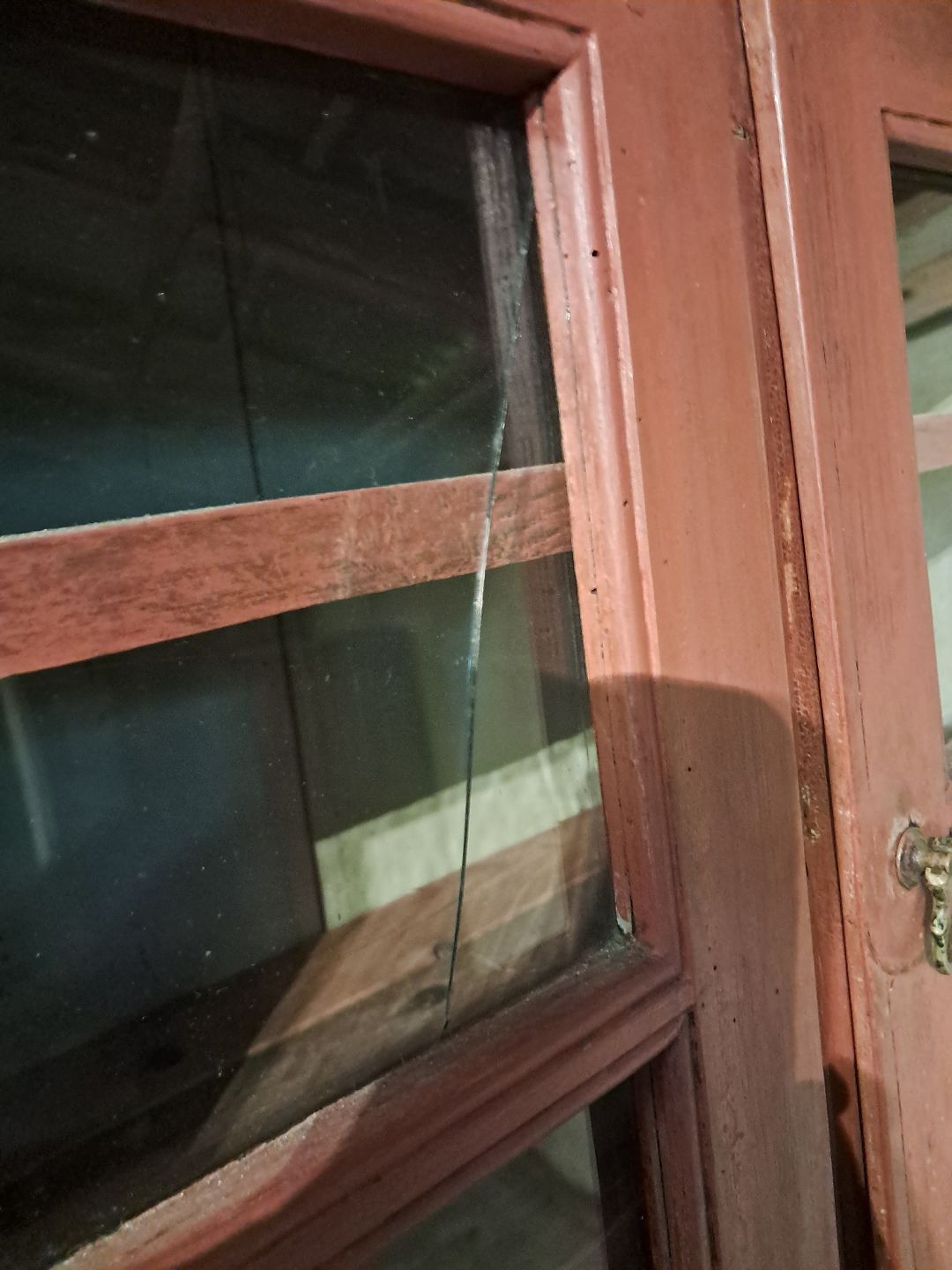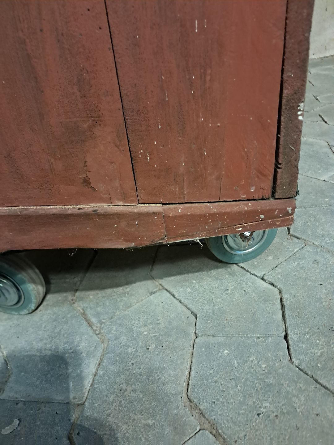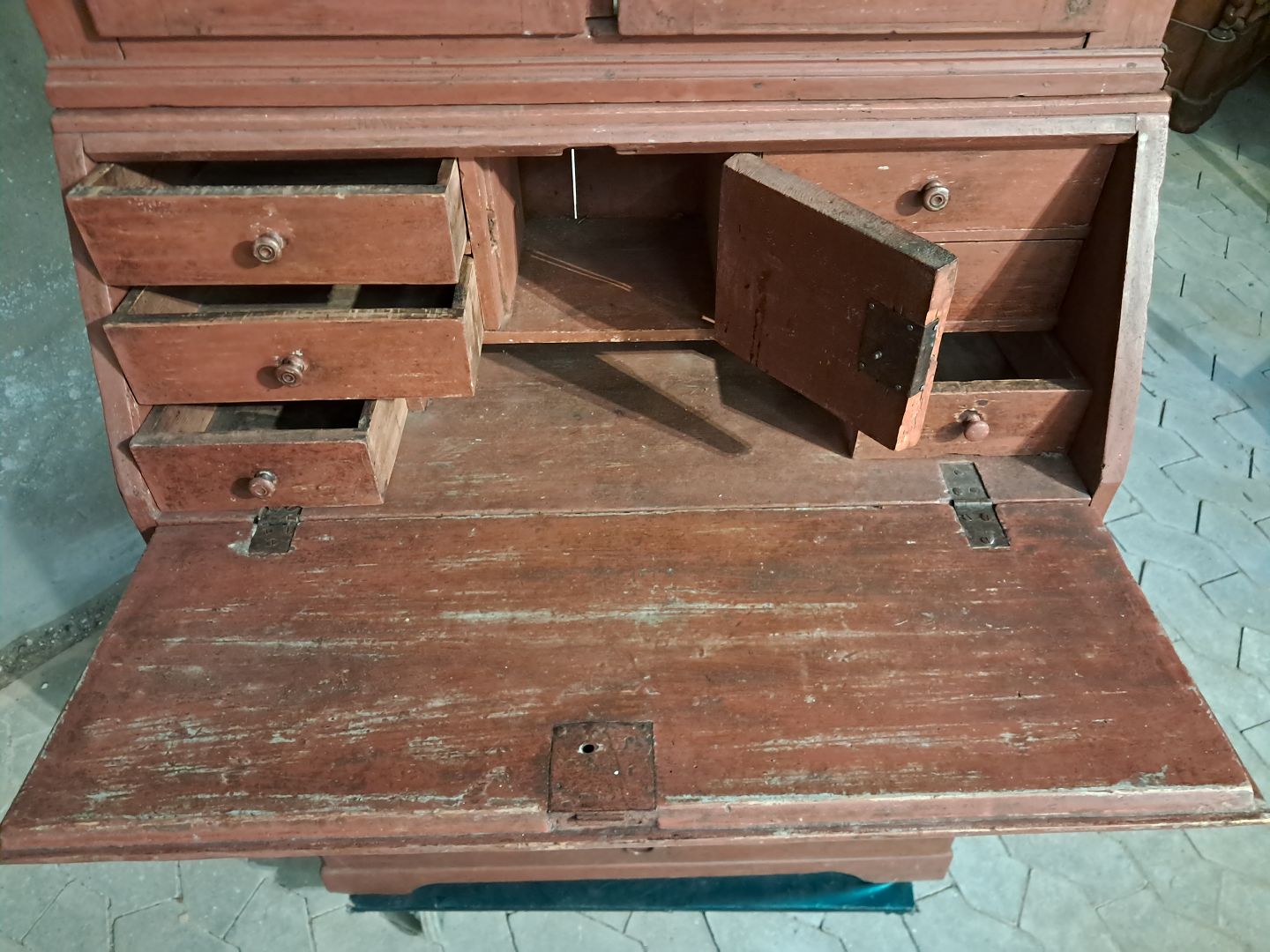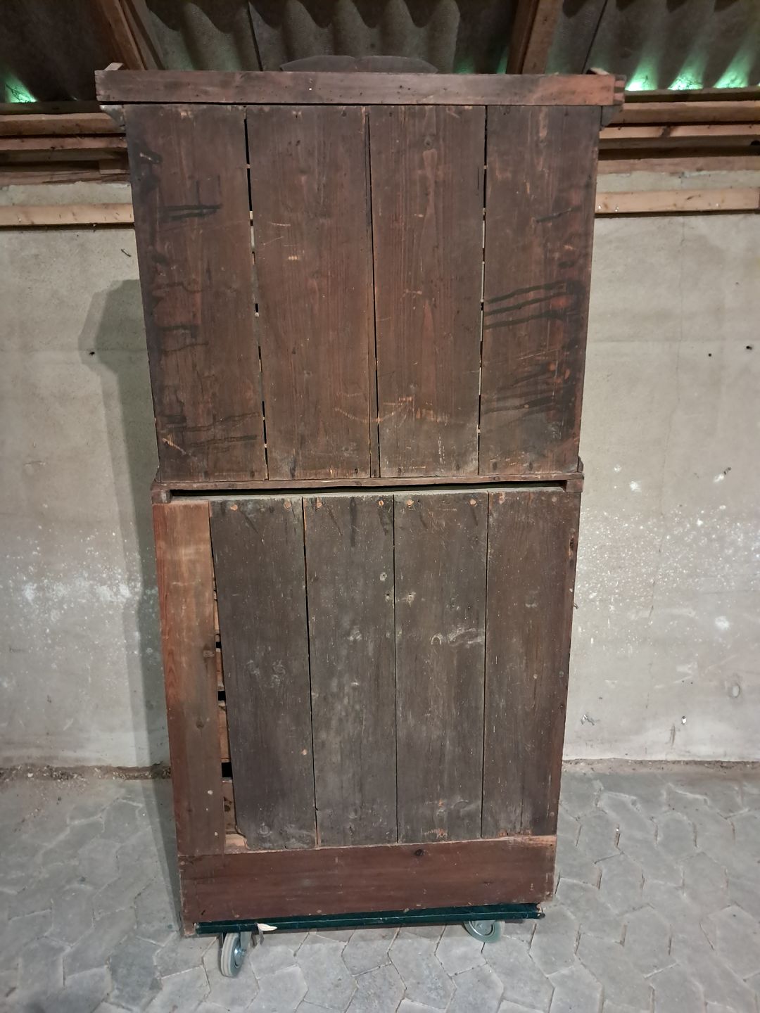 Malet chatol med overdel i massivt fyrretræ, fra 1880erne.Det har en revne i den ene glasrude og soklen har defekter.(se foto)