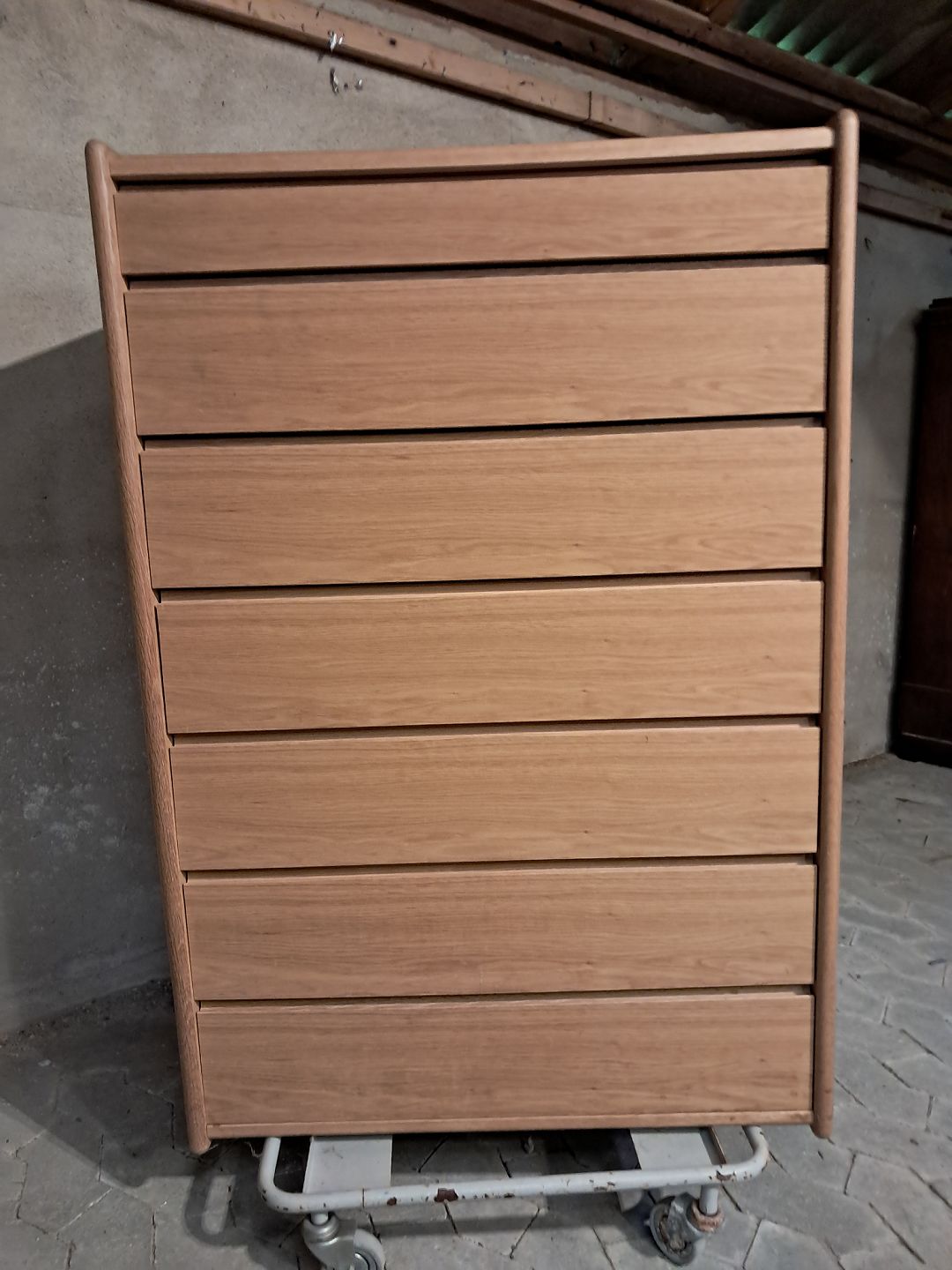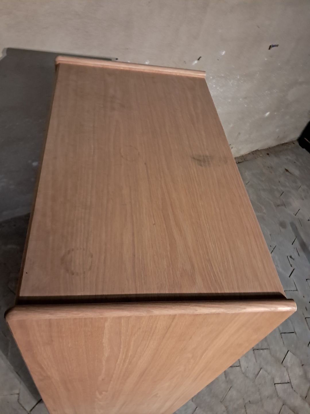 Kommode i fineret egetræ, fra 2010erne.Den har brugsspor.