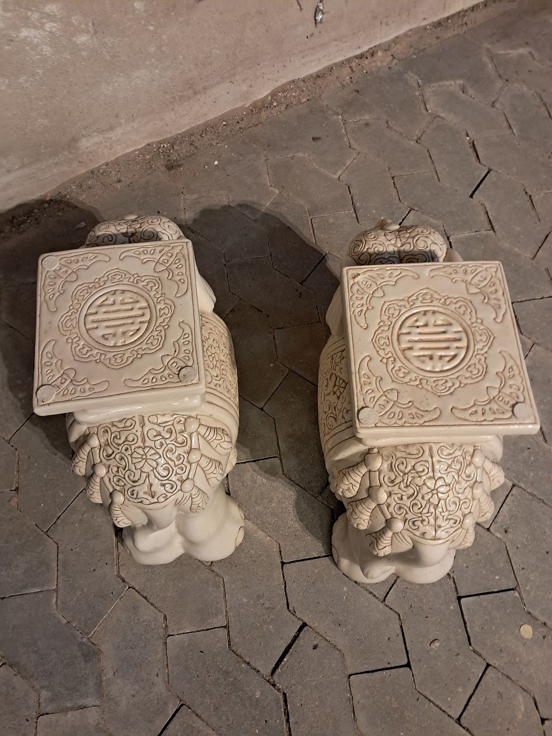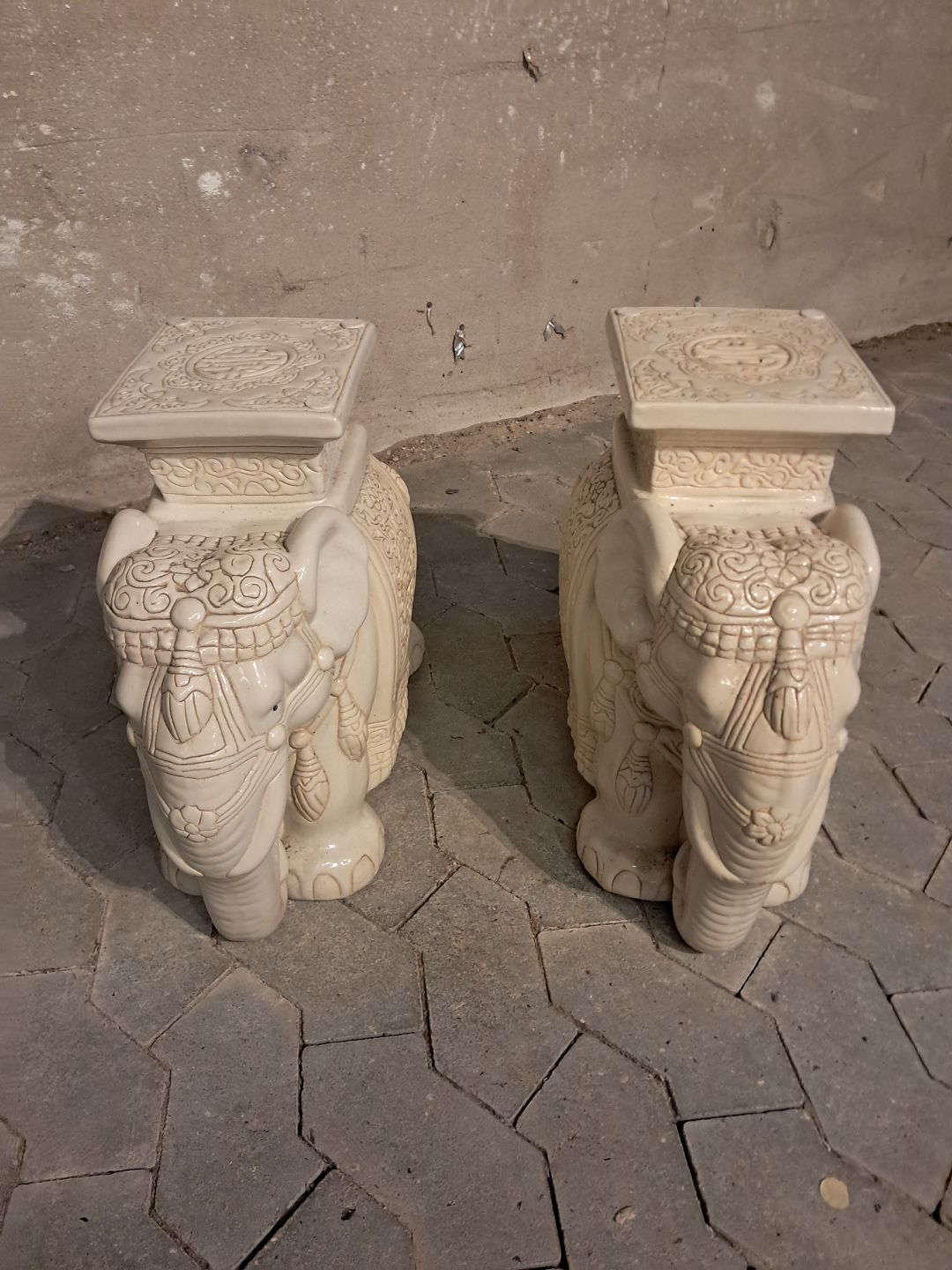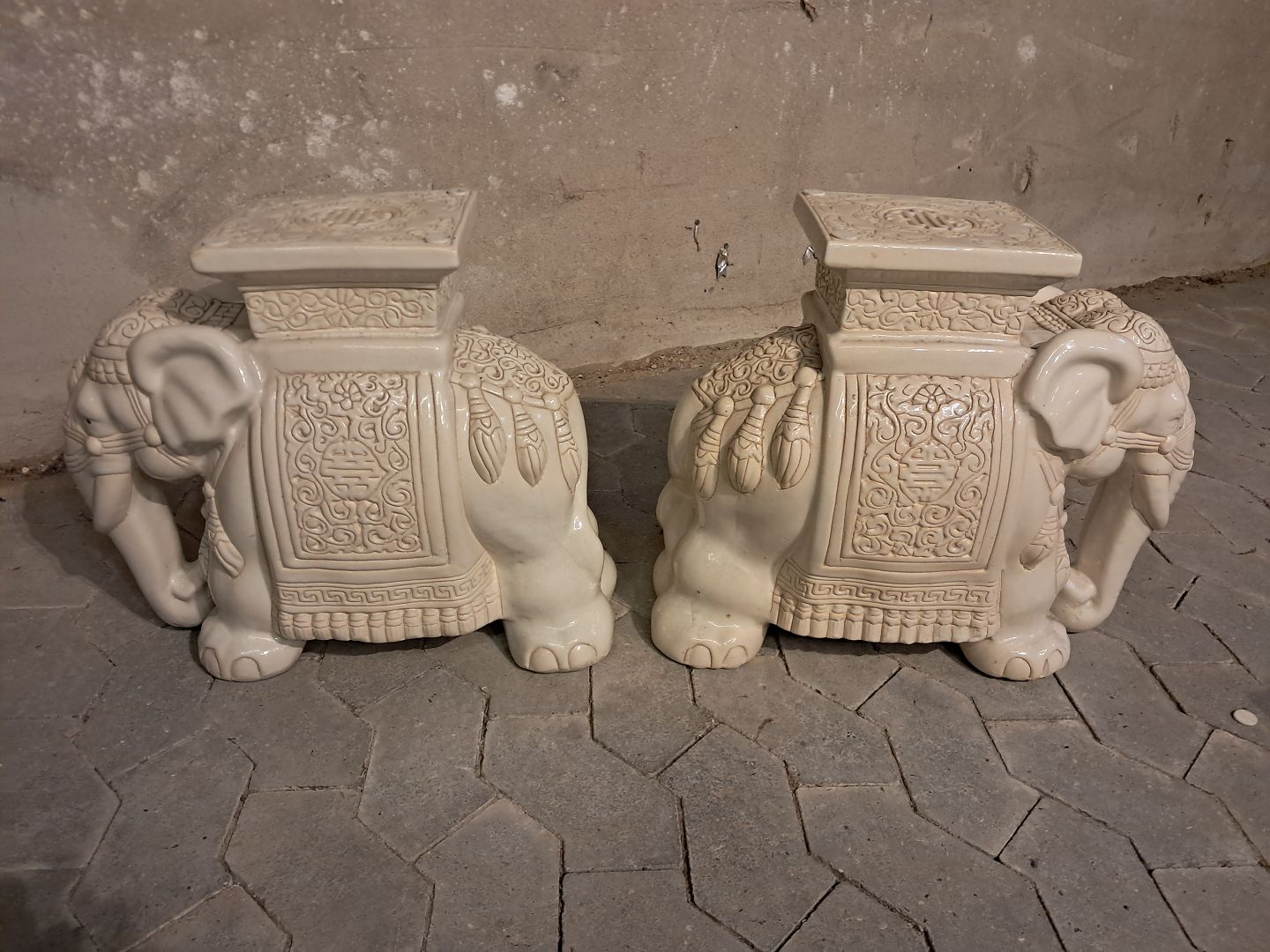 2 Elefanter i pocelæn, fra 1990erne.Højde 44cm Bredde 23cm Længde 49cm