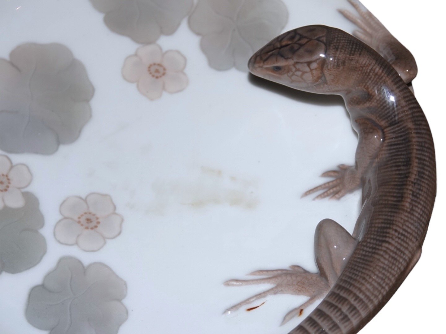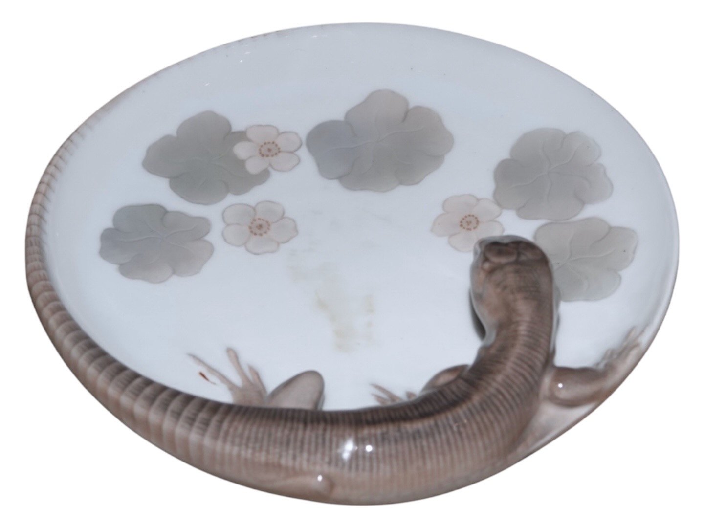 Royal Copenhagen Art Nouveau, skål med firben.Af fabriksmærket ses det, at denne er produceret mellem 1923 og 1928.