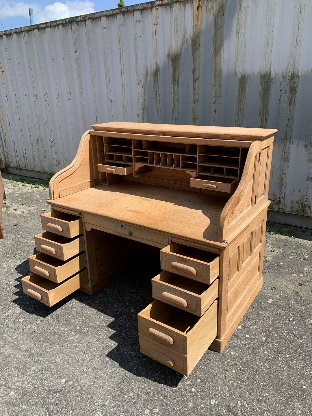Amrikansk skrivebord i massivt egetræ, fra 1920erne.Det har patina.
