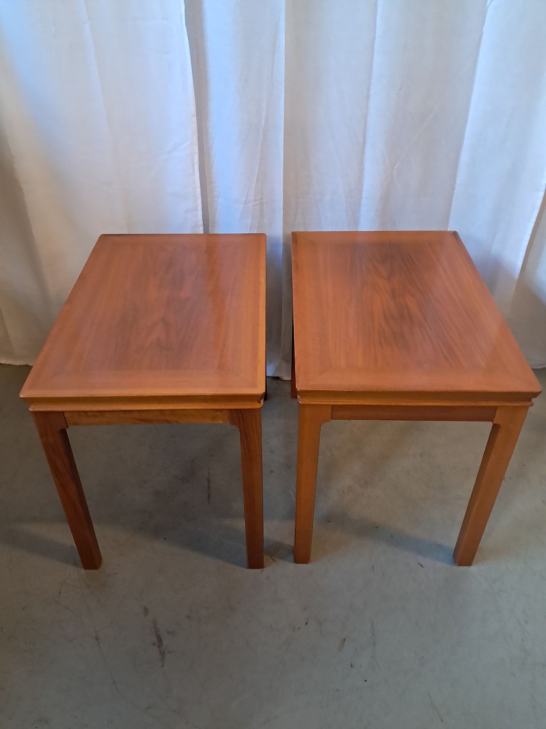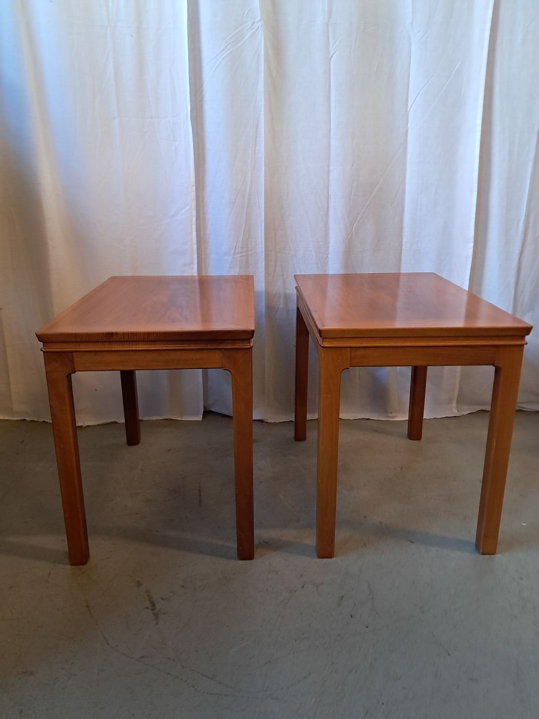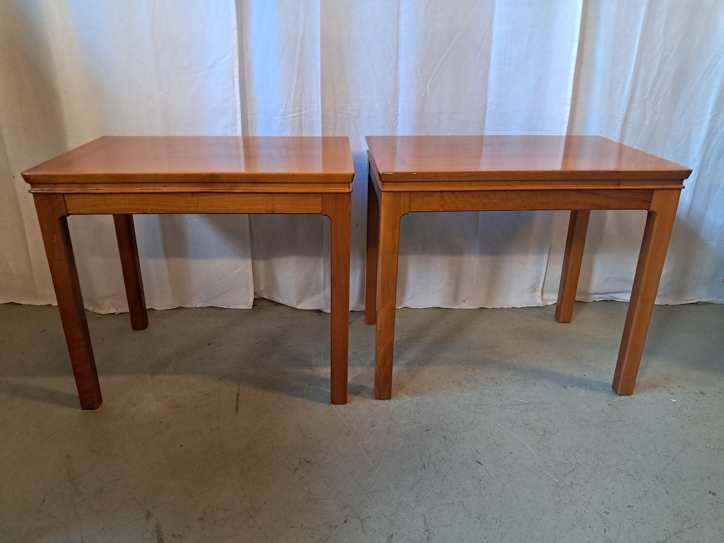 2 Lampeborde i fineret mahogni, fra 1990erne.De har brugsspor.