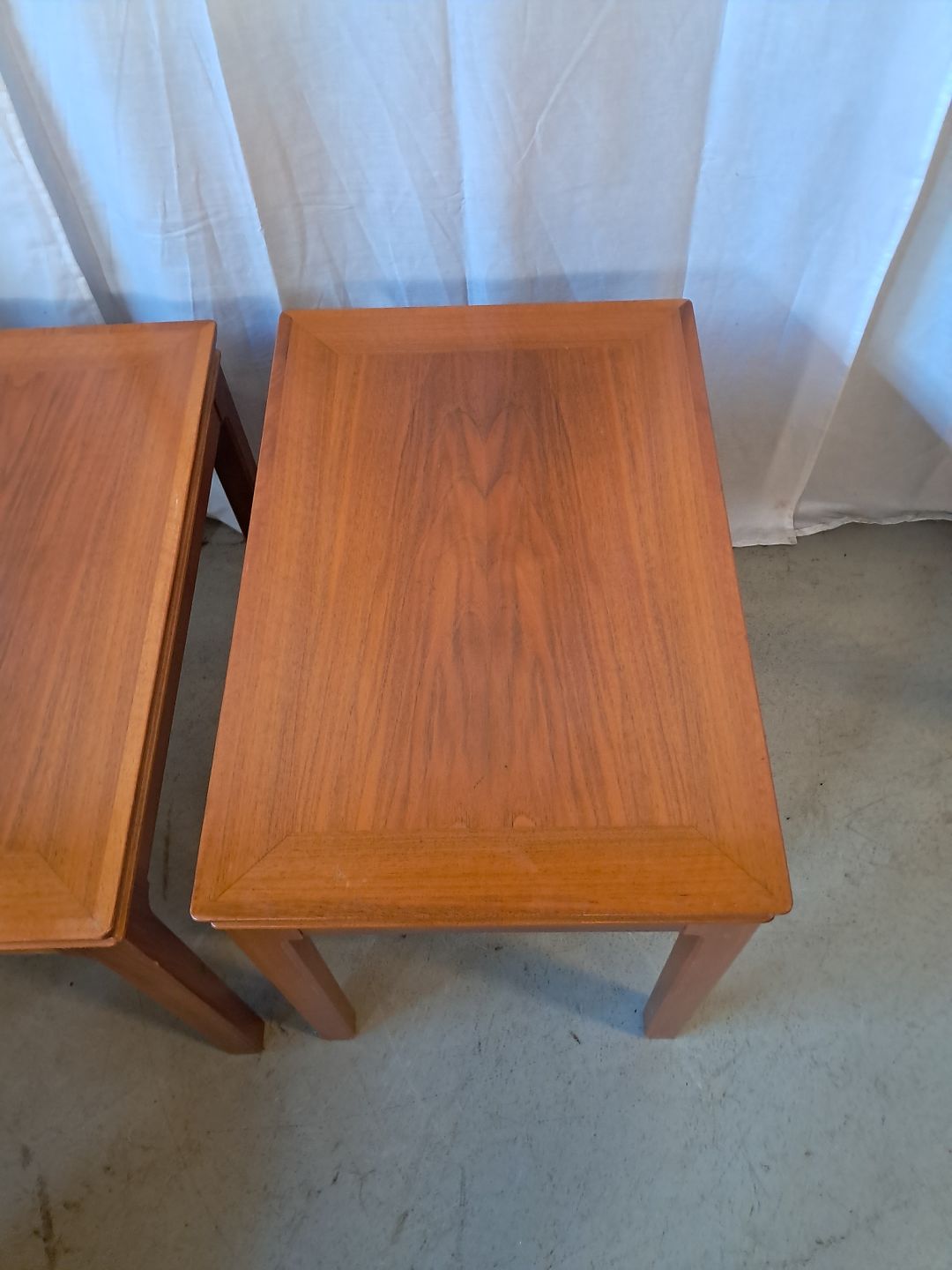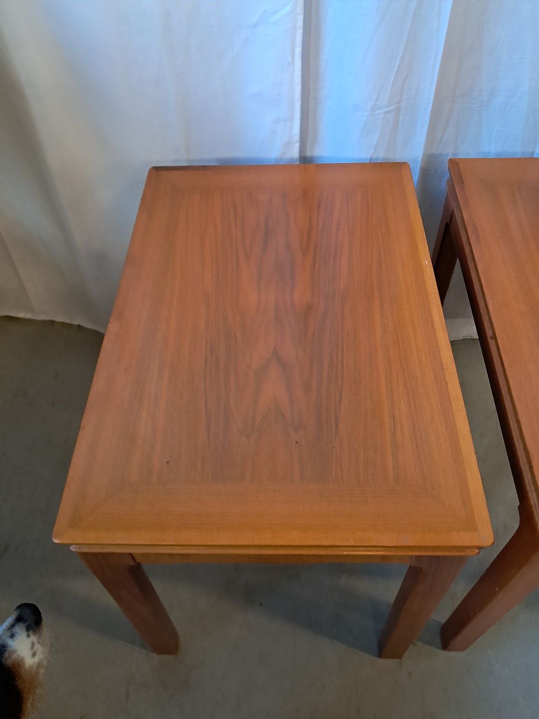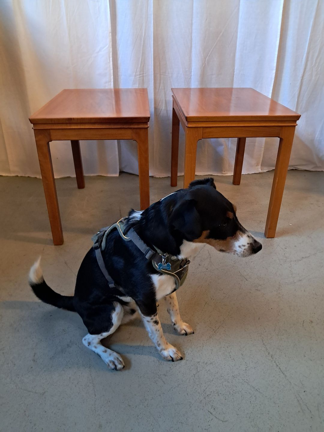 2 Lampeborde i fineret mahogni, fra 1990erne.De har brugsspor.