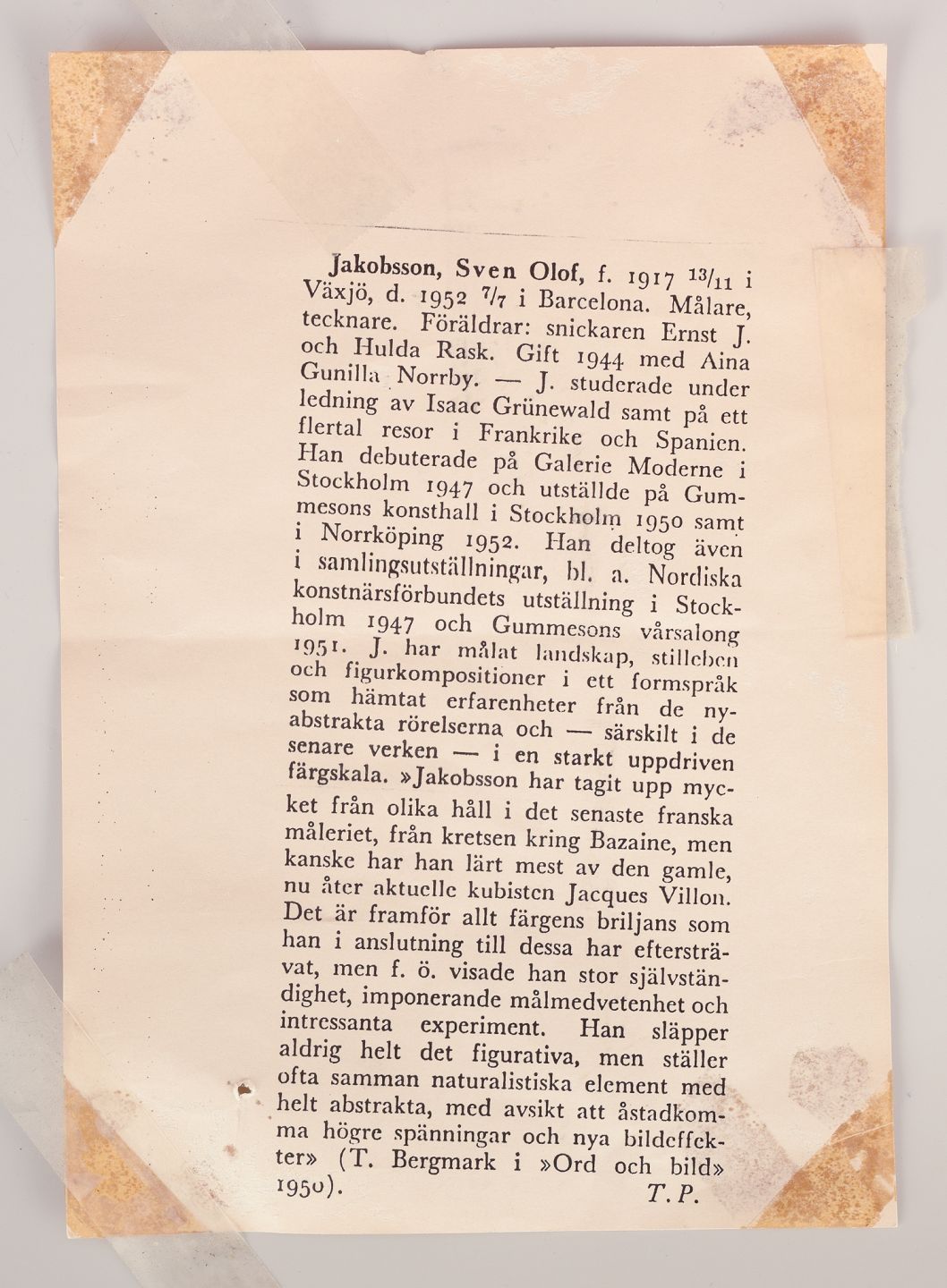 Sven Olof Jakobsson (1917-1952), svensk kunstmaler.Olie på lærred.