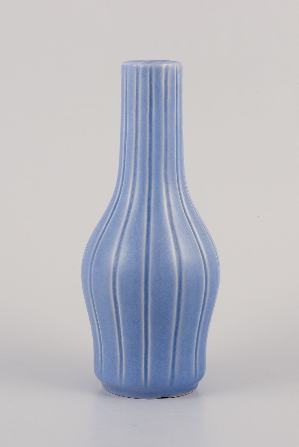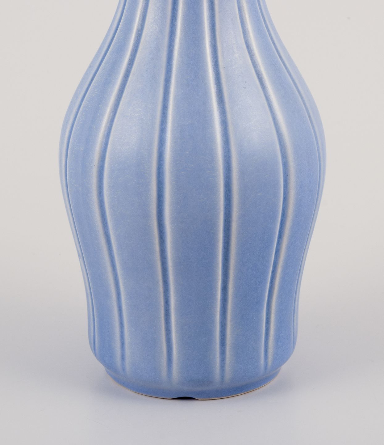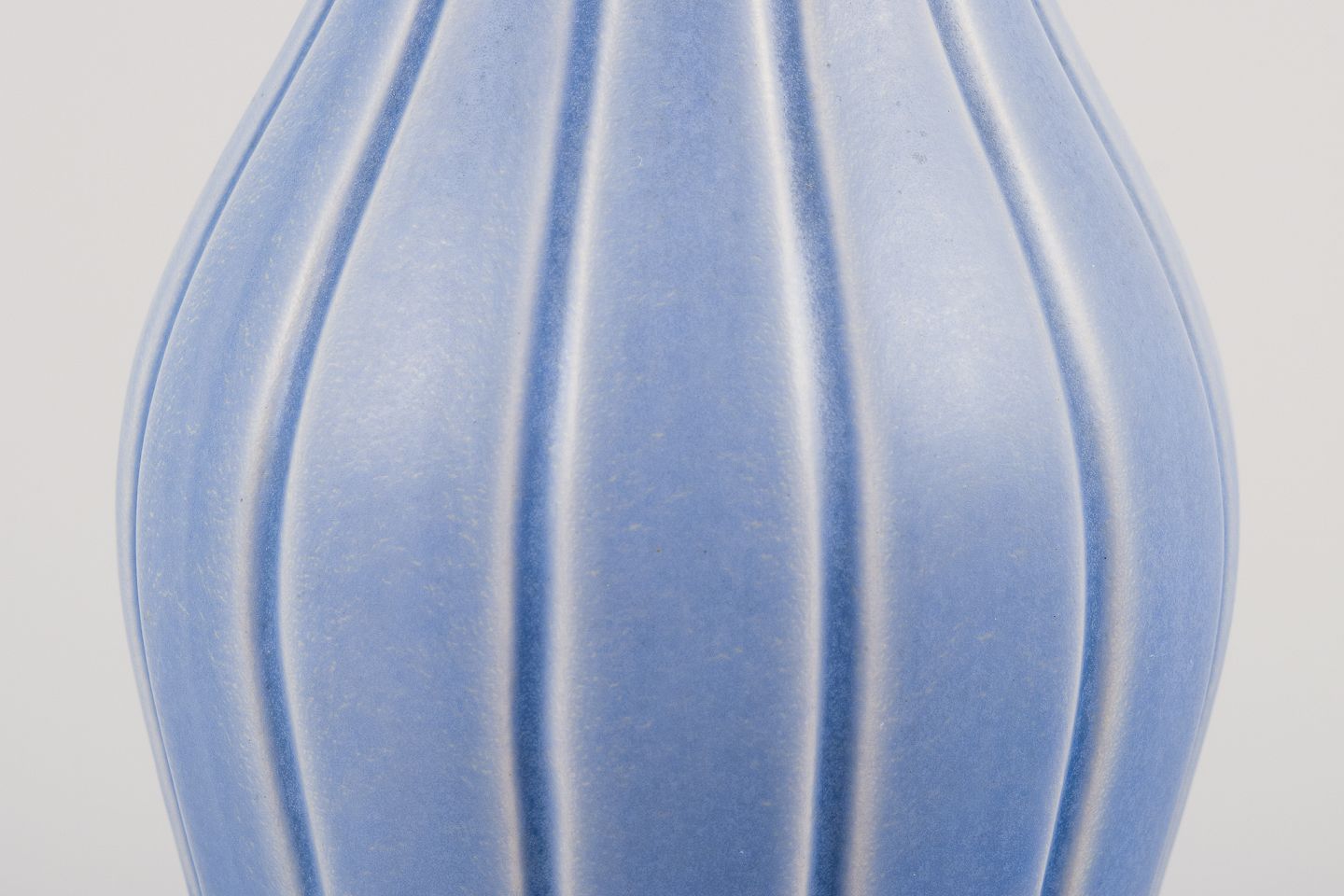 Ewald Dahlskog for Bobergs Fajansfabrik, Sverige. Stor vase i fajance.Hånddekoreret i lyseblå glasur.