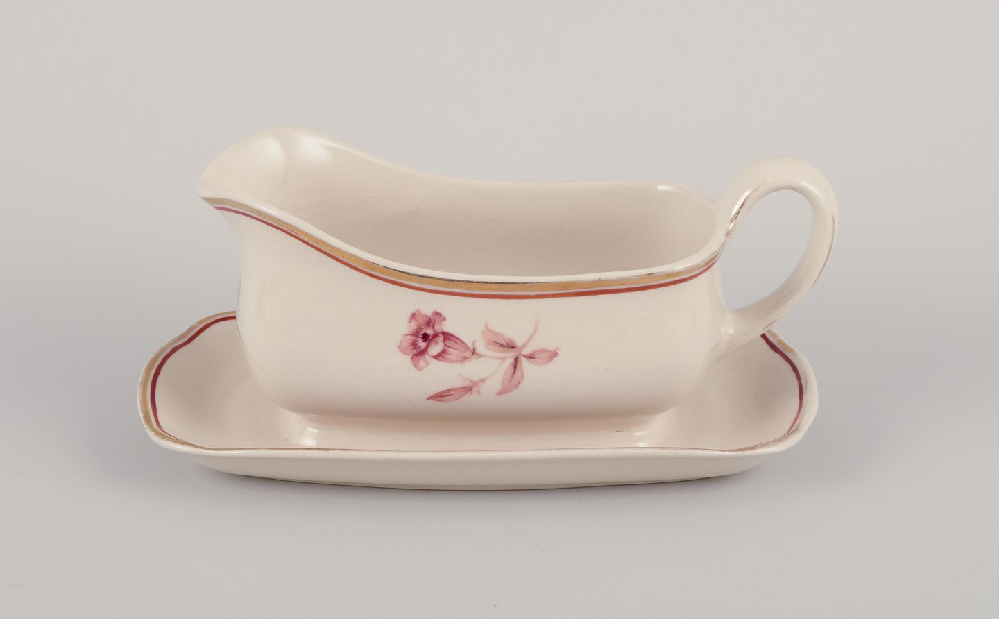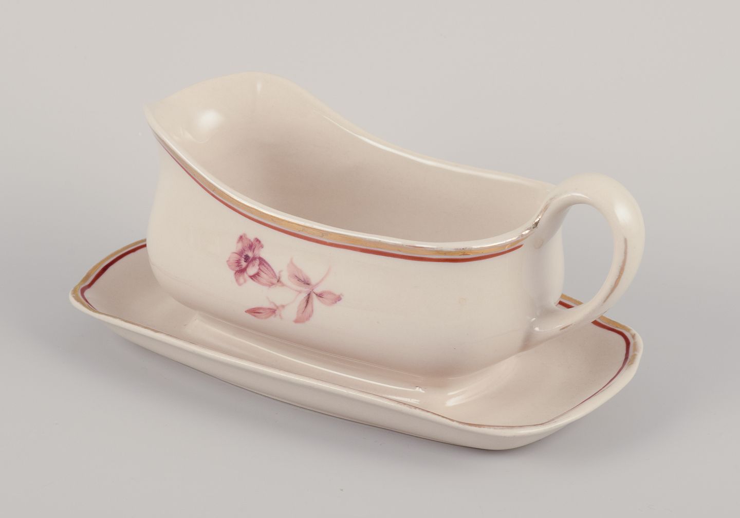 Arabia, Finland.Seks dele ”Myrna” fajance. Bestående af fire små tallerkner, en sovsekande på fod samt en skål.