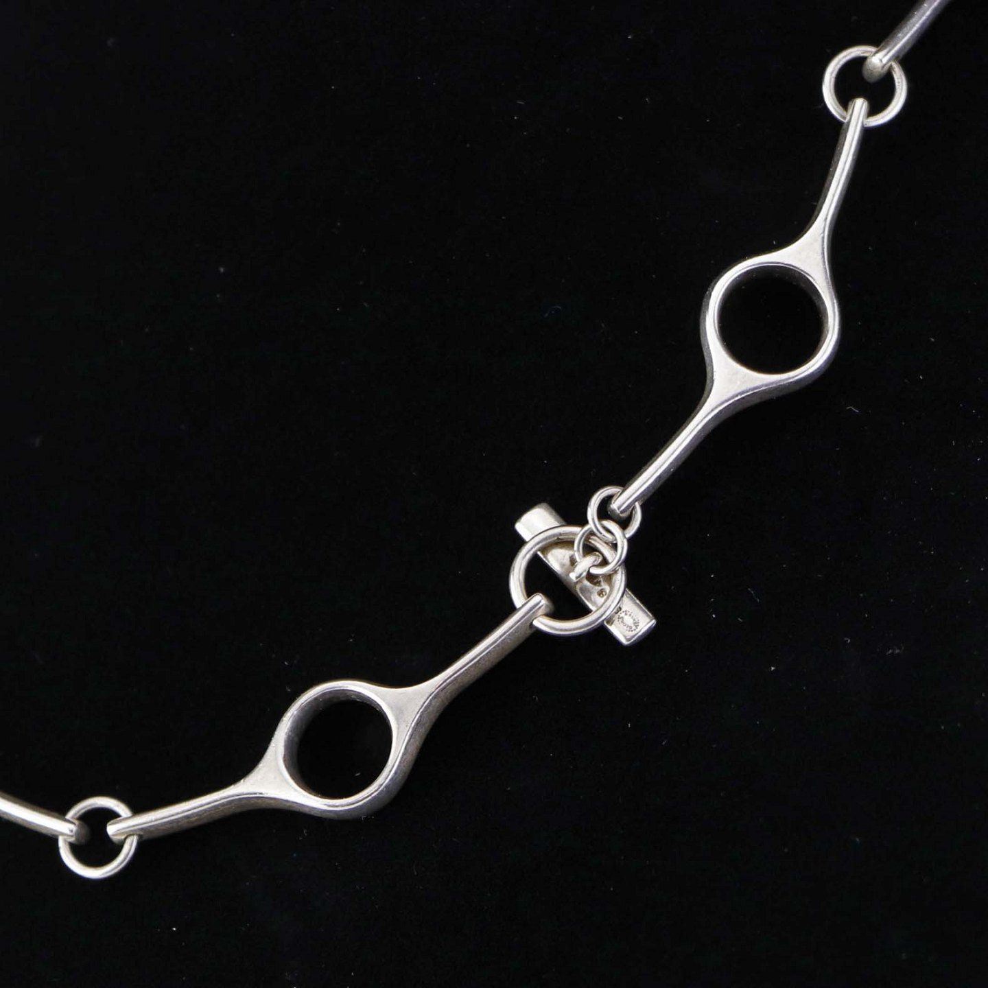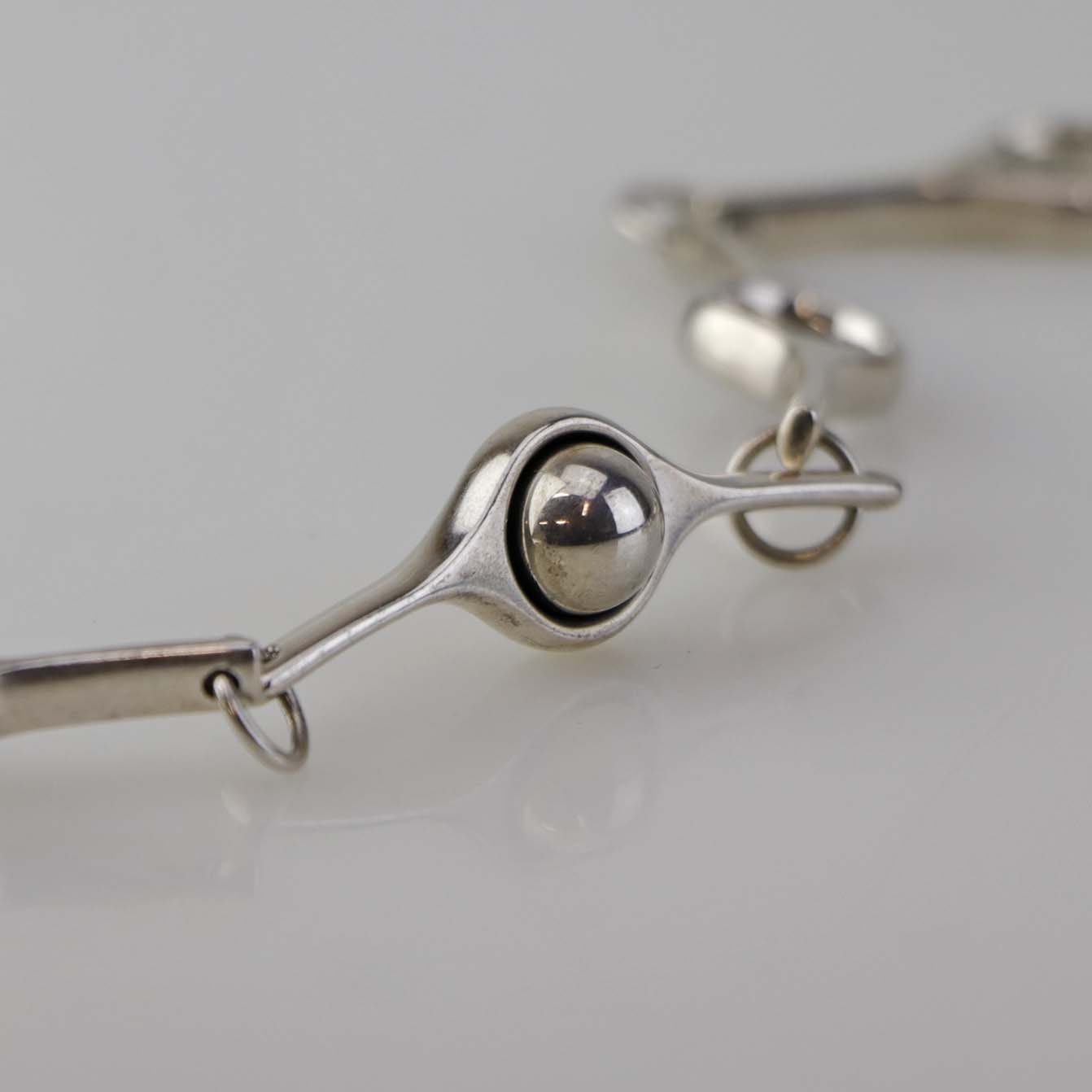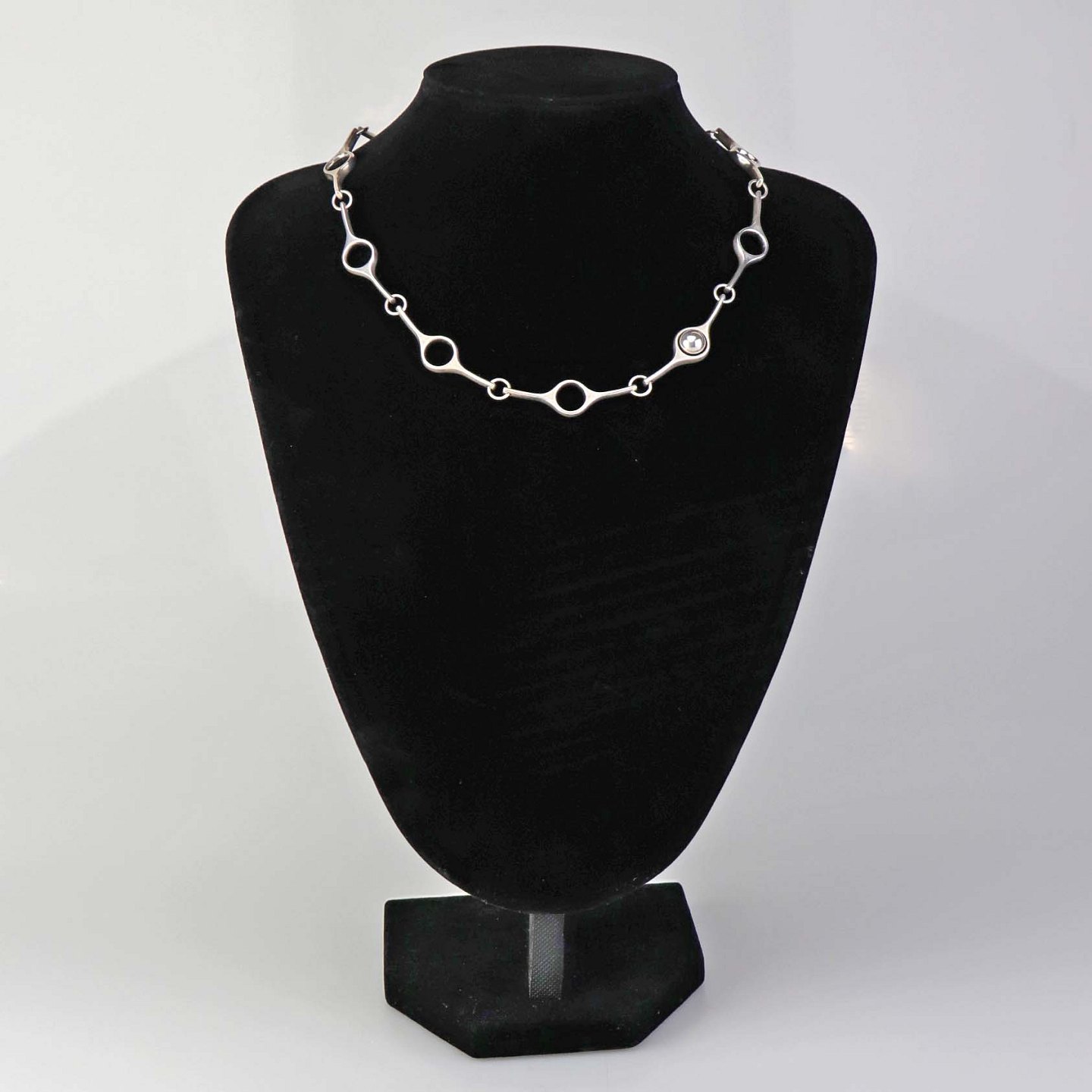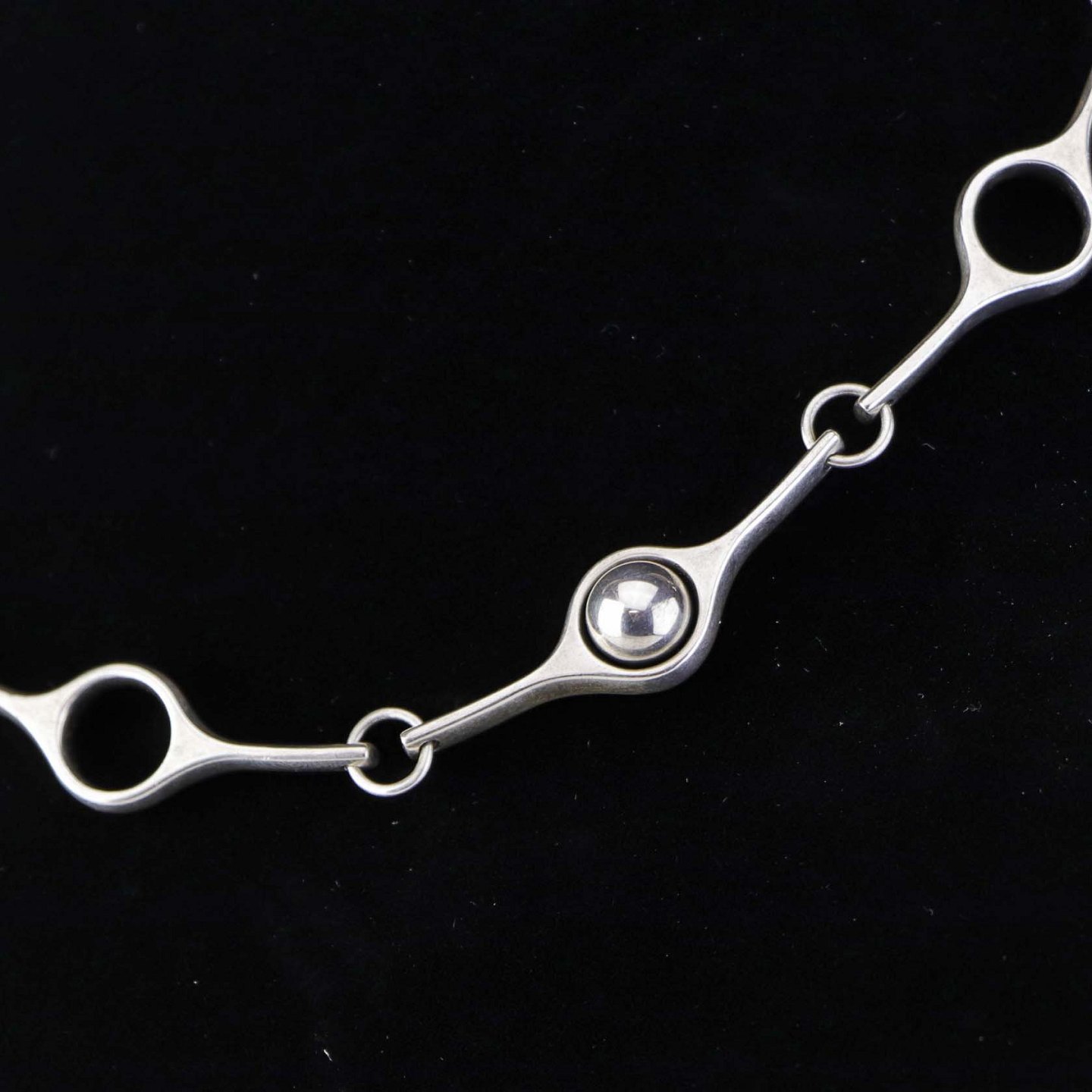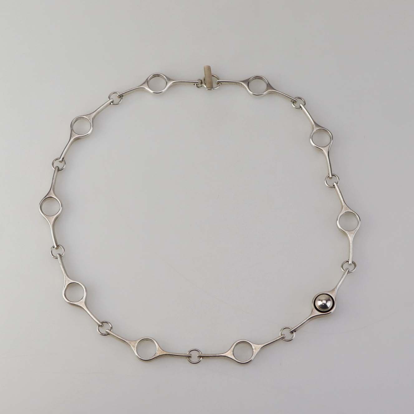 Halskæde i sterling sølv med sammensatte ellipseformede lænker og dekoration af en sølvkugle. Model Sphere.Formgiver Regitze Overgaard
