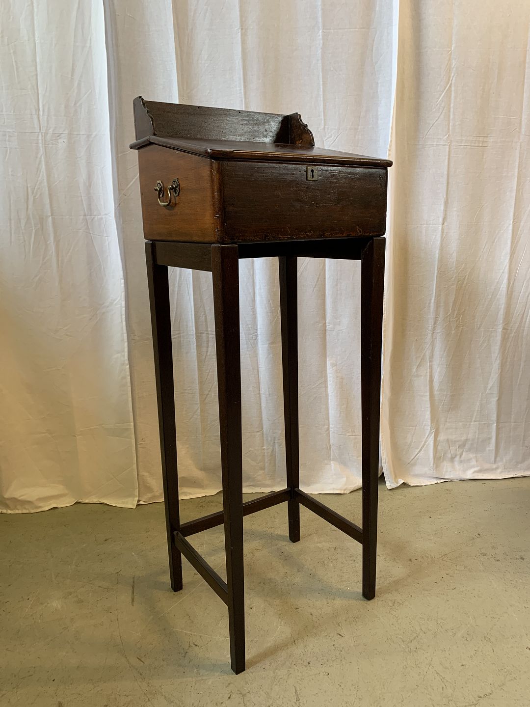 Skrivepult i massivt mahogni, fra 1890erne.Den har brugsspor og mangler låsen.